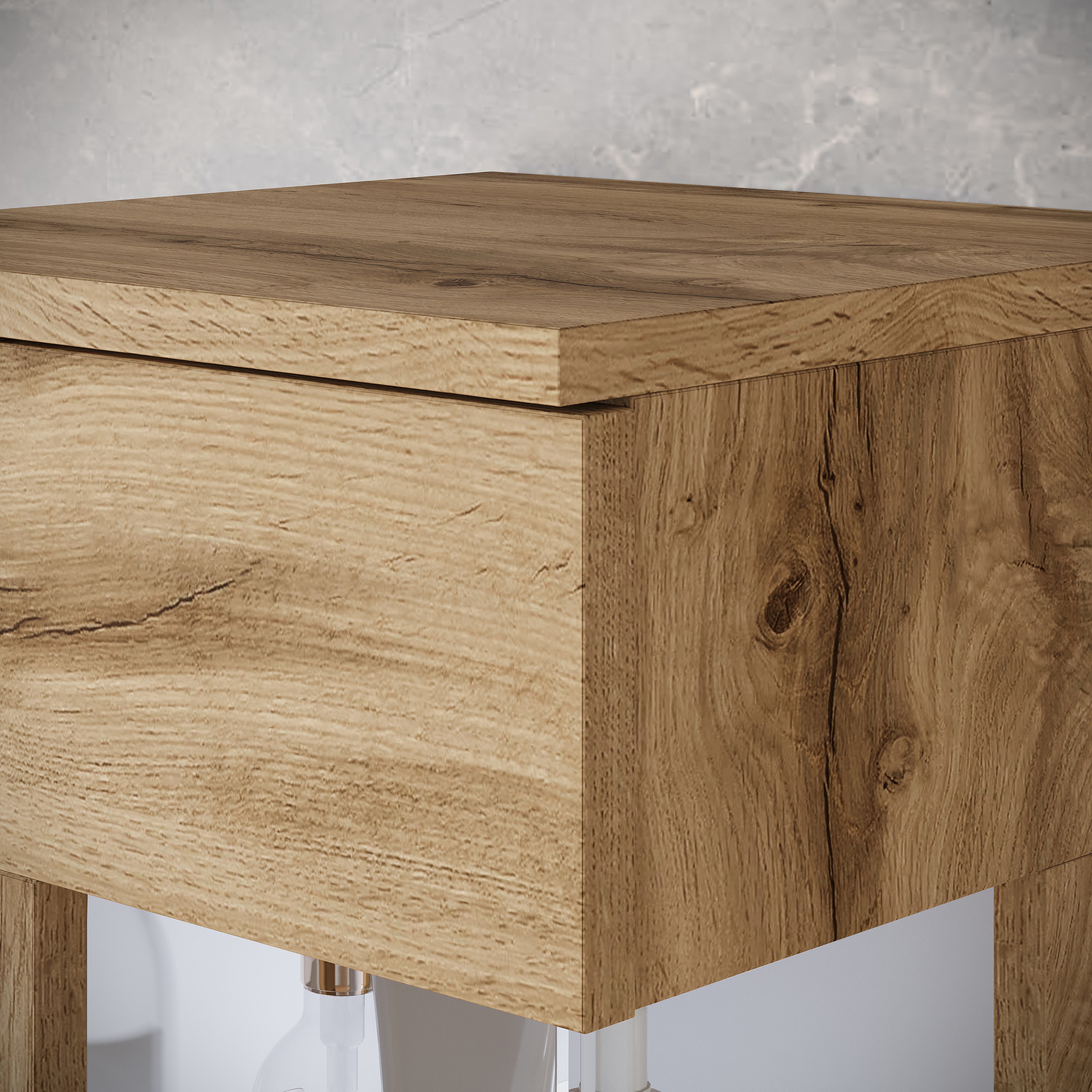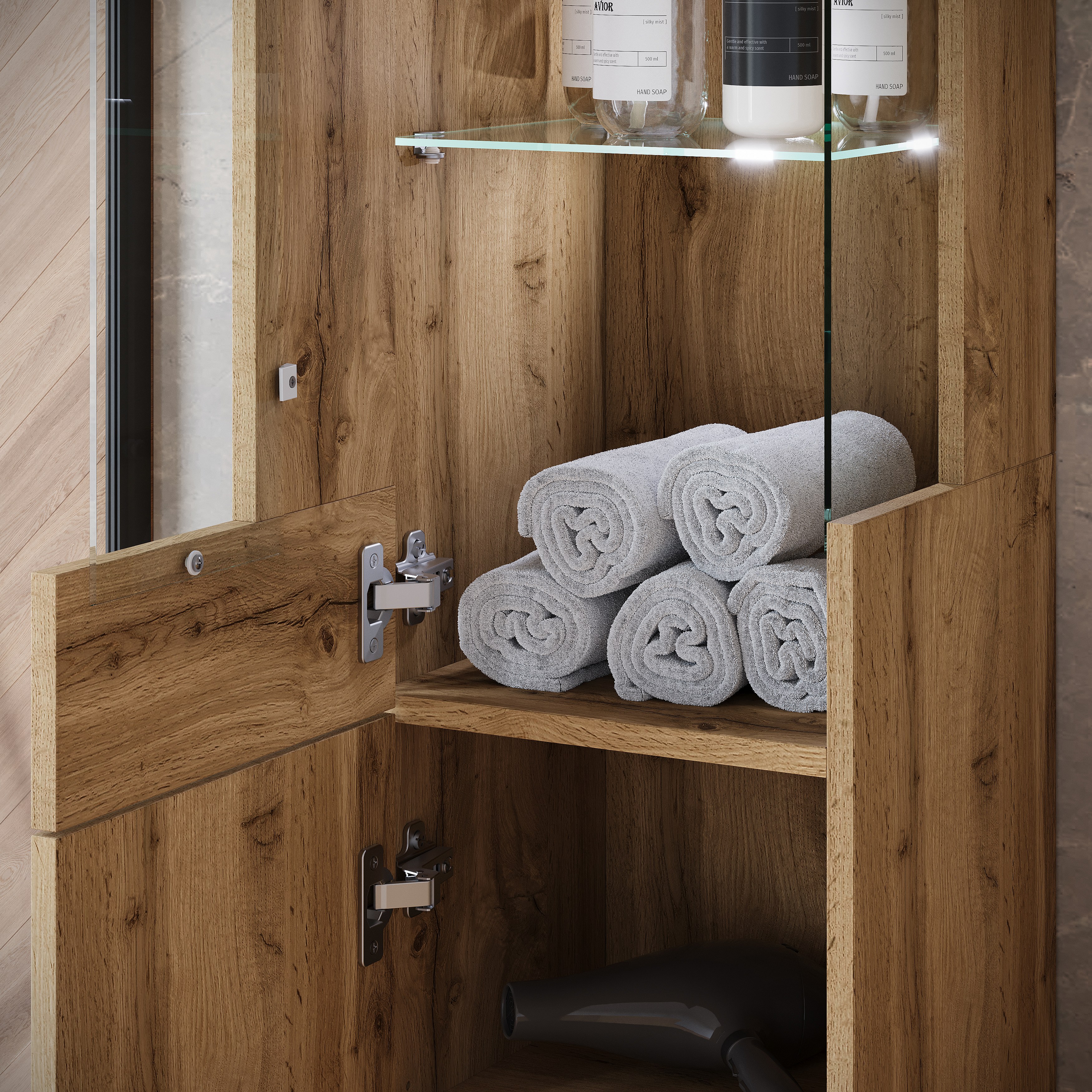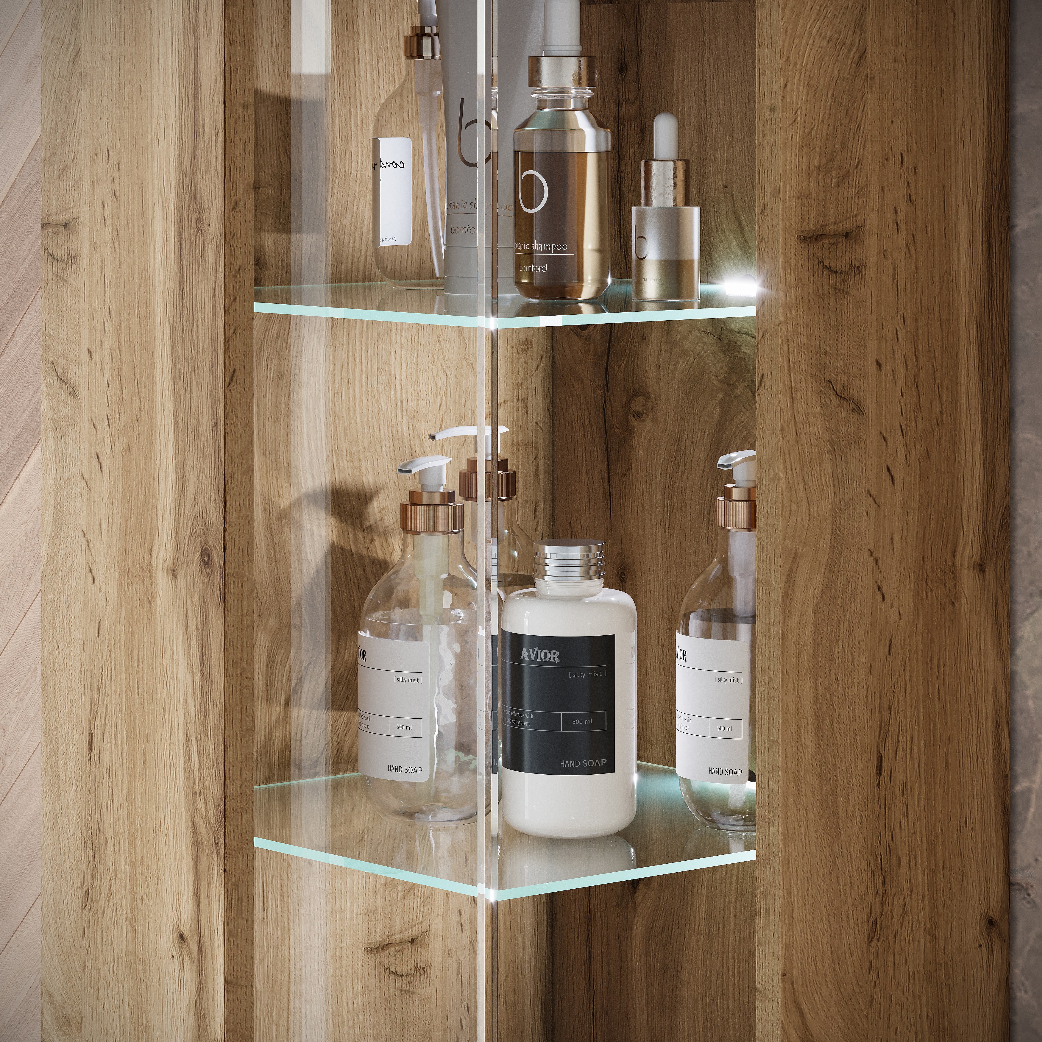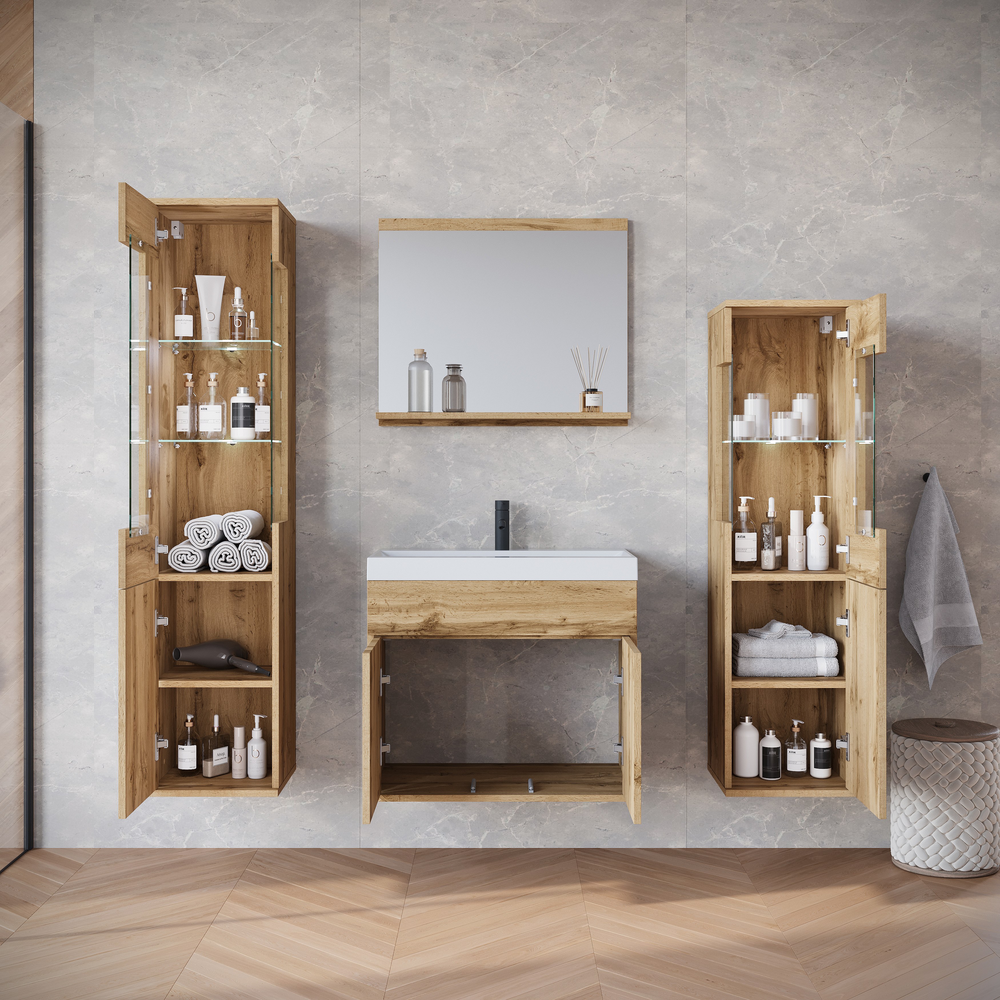 Ensemble suspendu avec lavabo, miroir et éléments en verre, chêne wotan