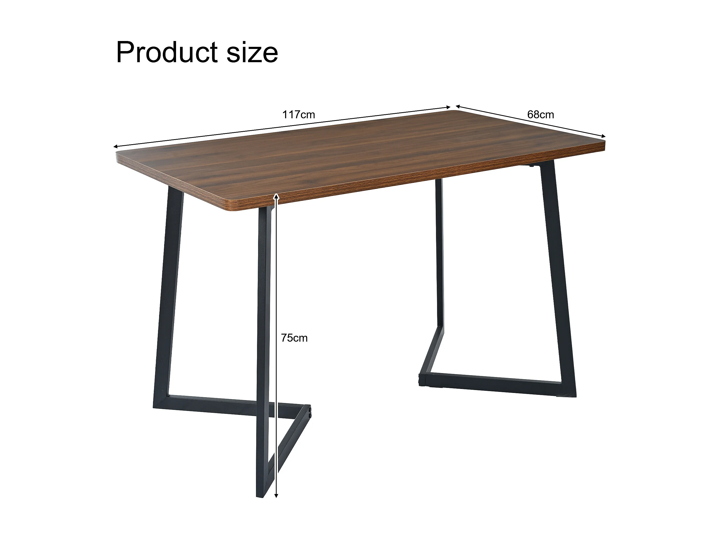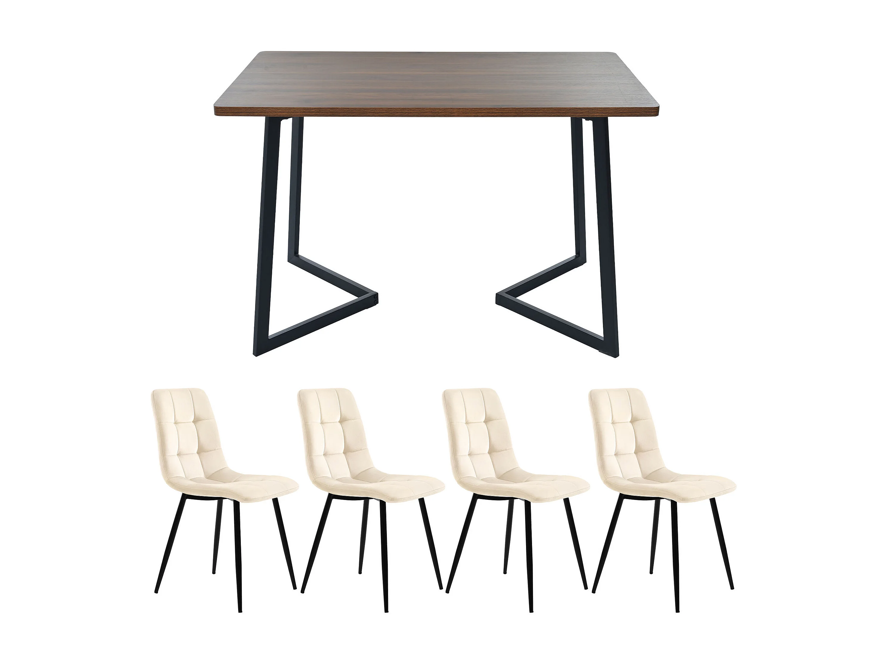 Ensemble table à manger 117x68x75 cm avec 4 chaises, pieds métal noirs, plateau MDF, coloris noyer