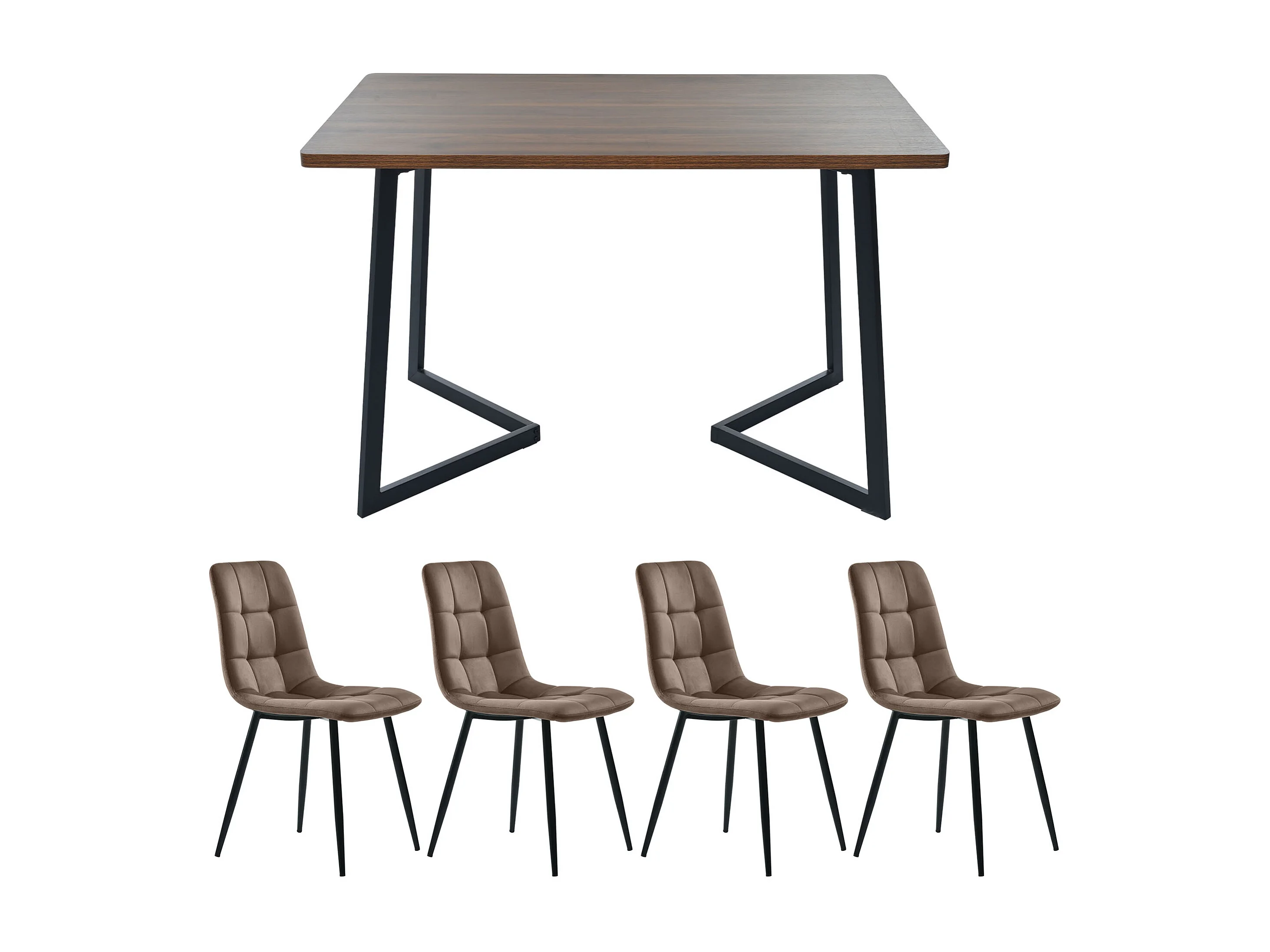 Ensemble table et 4 chaises 117x68x75 cm, gain de place, montage requis, MDF, coloris noyer