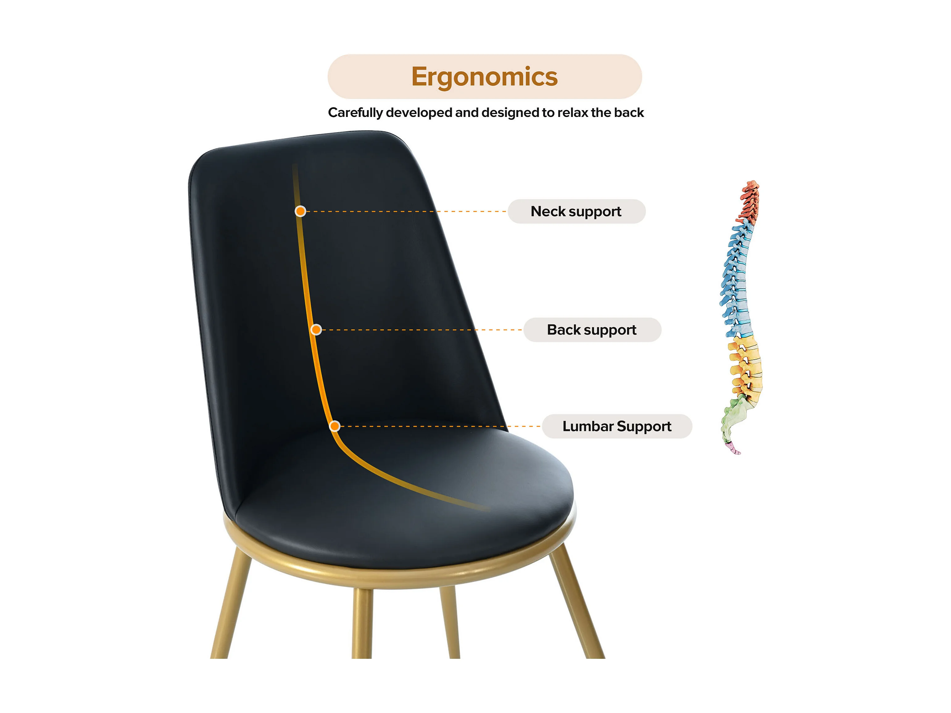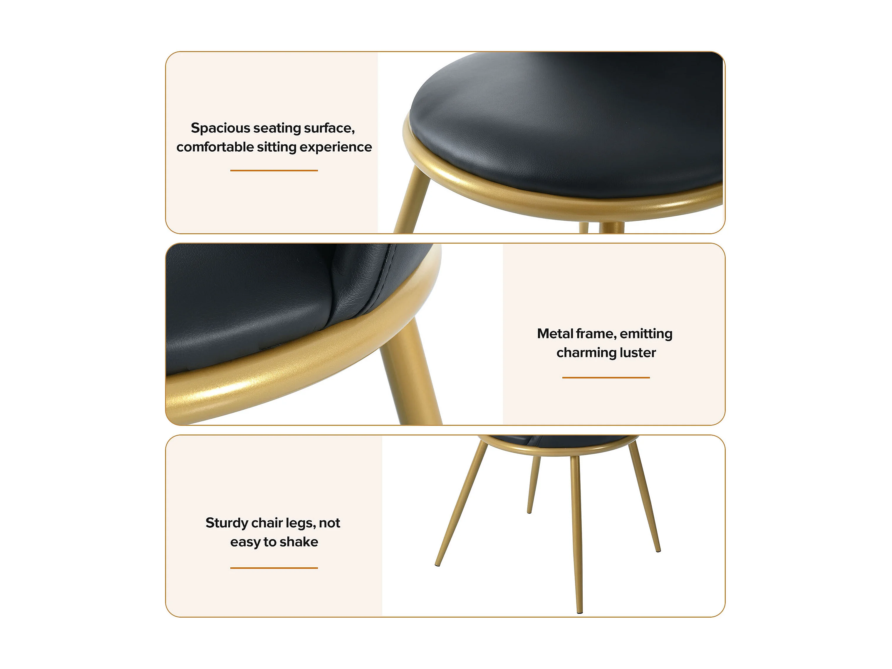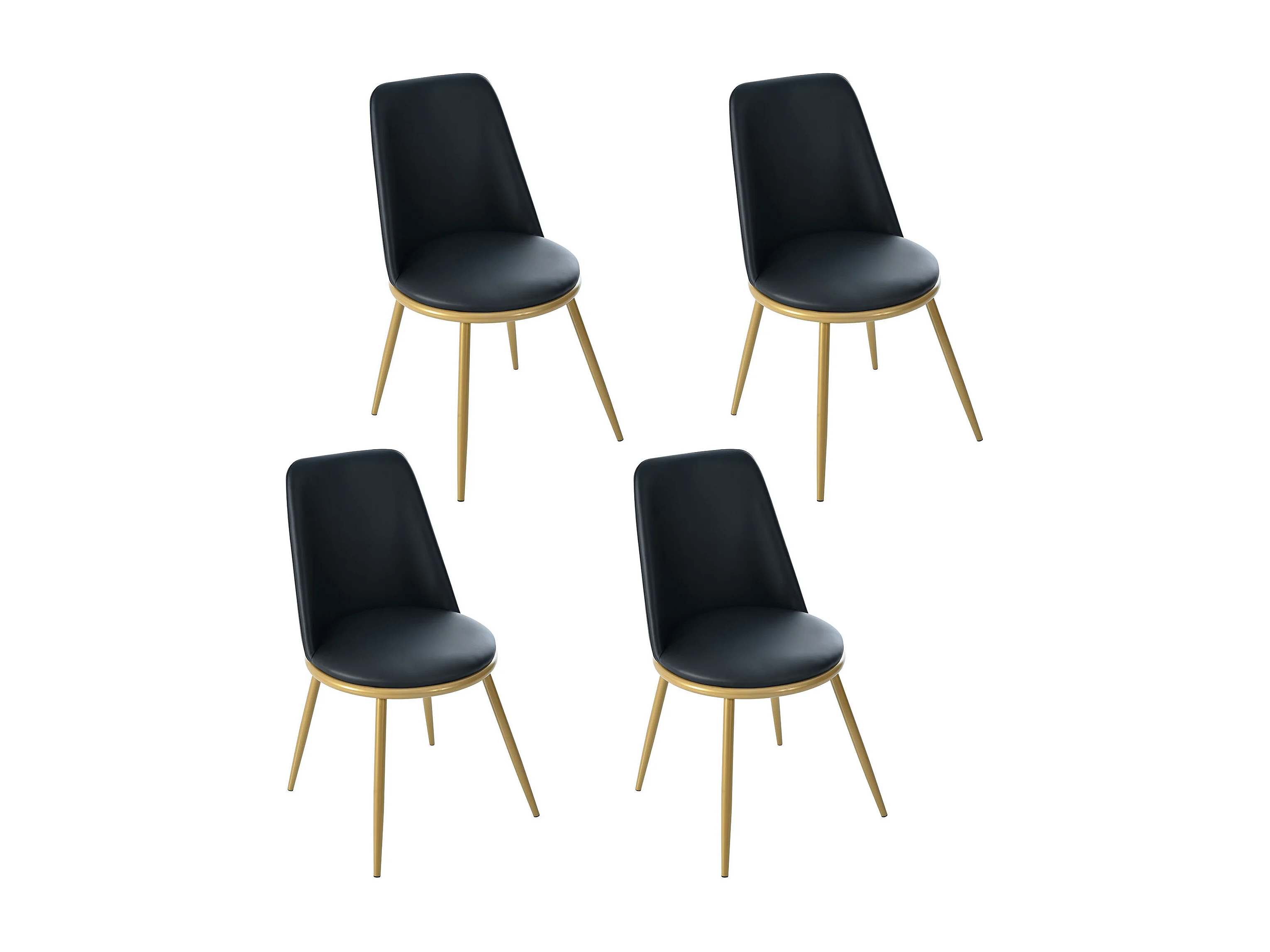 Ensemble table + 4 chaises - 117 x 68 x 75 cm - MDF + pièds en métal doré - Noir + blanc
