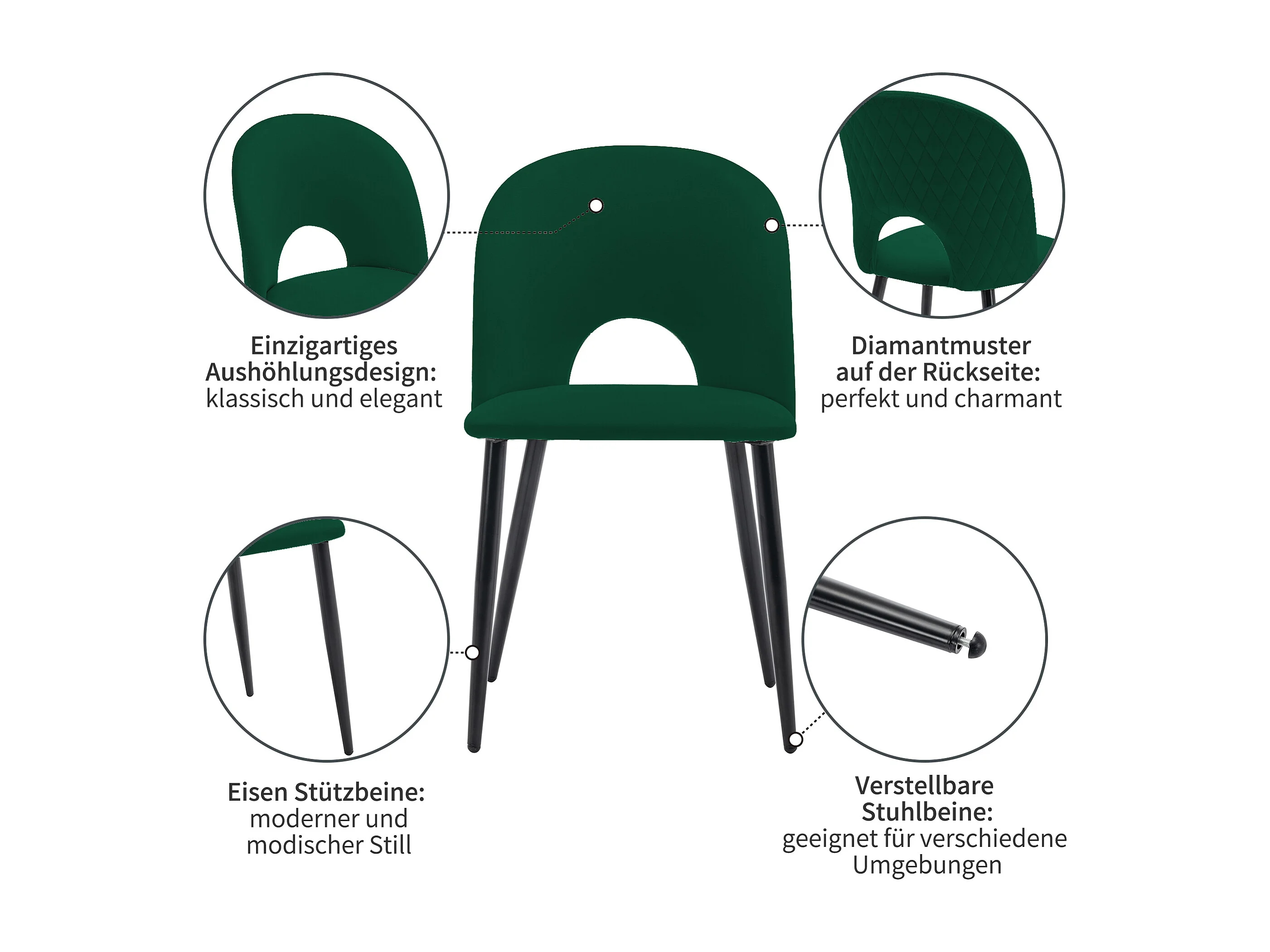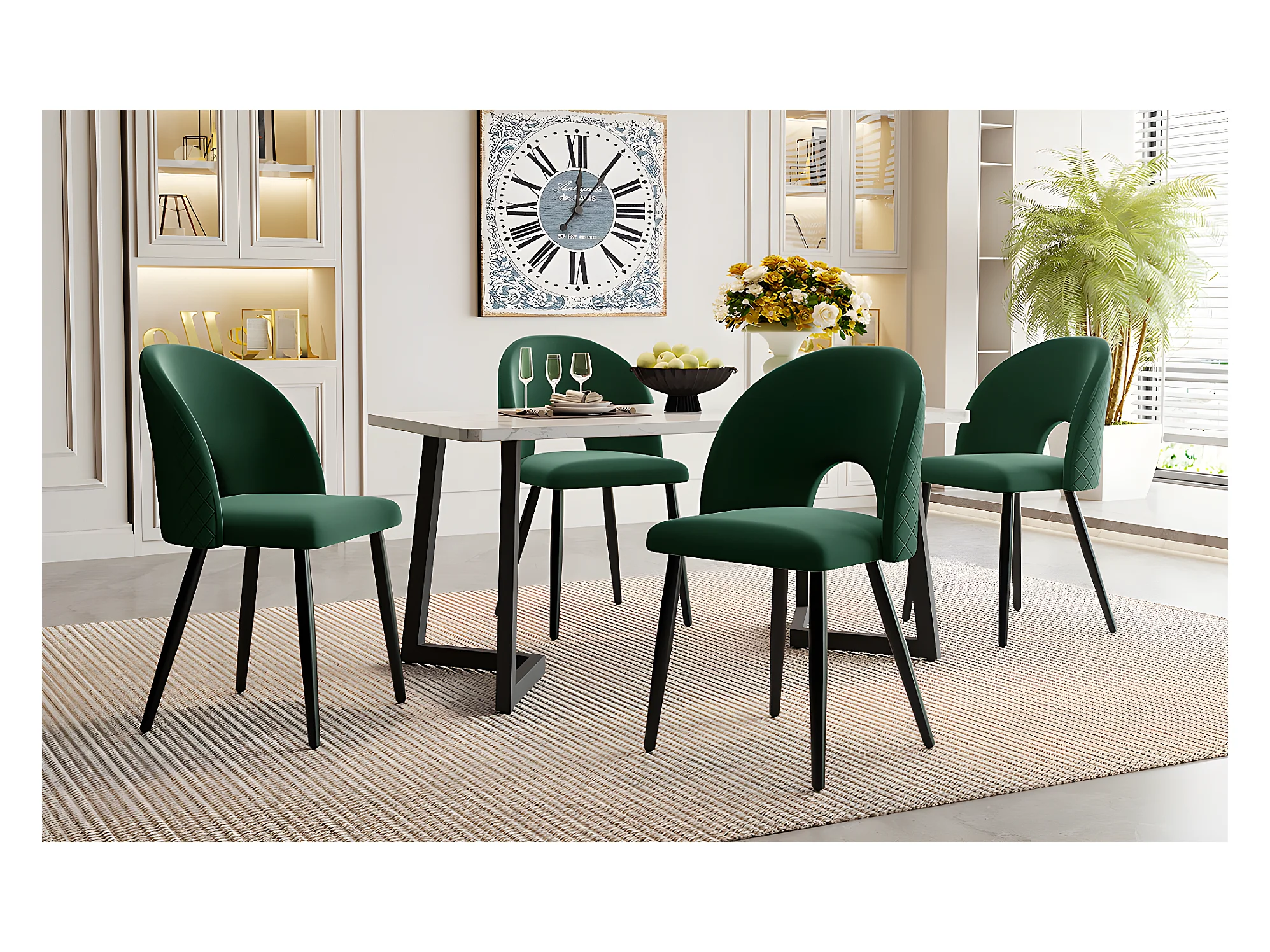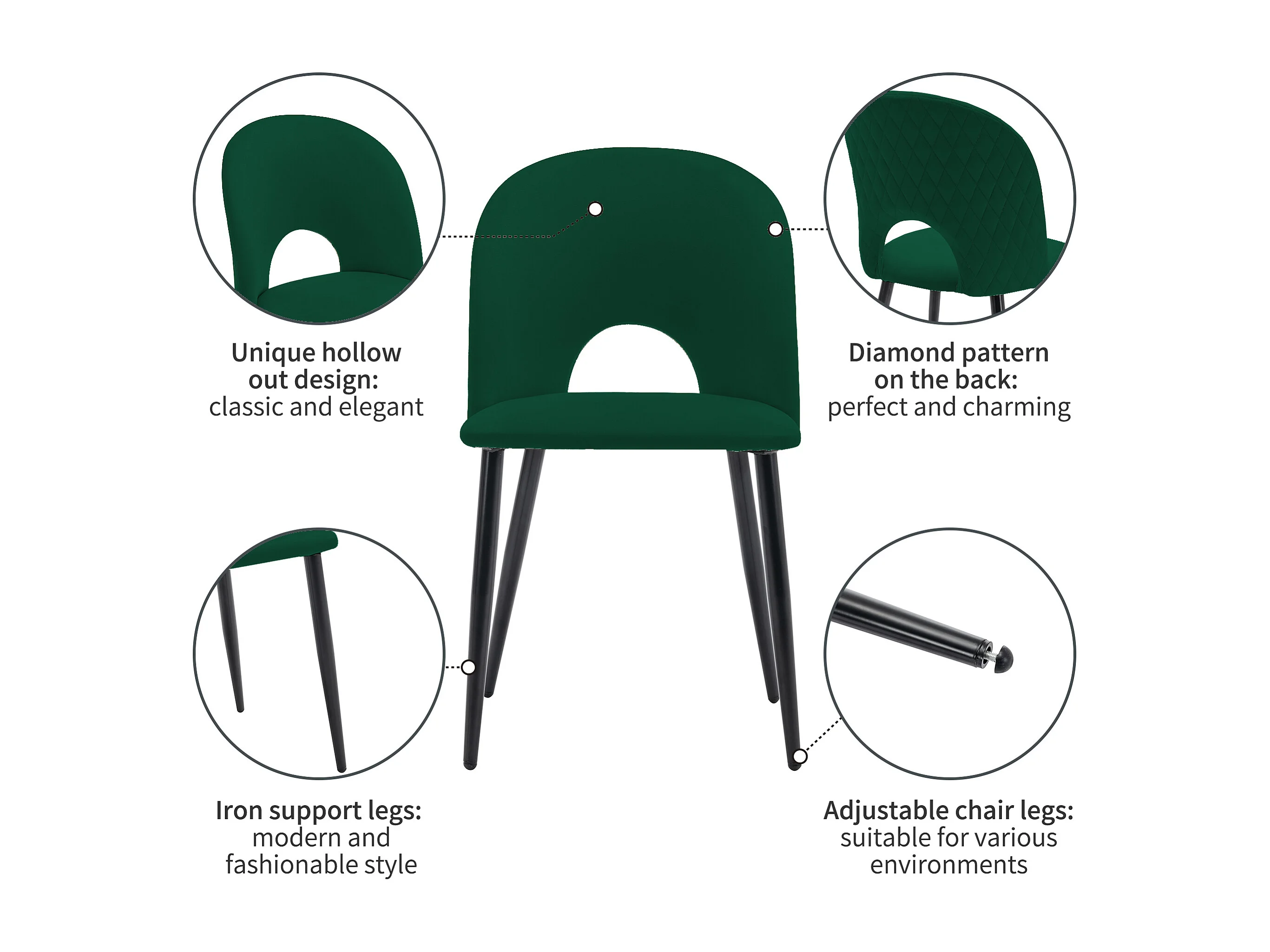 Ensemble table + 4 chaises en velours - MDF + métal - Vert