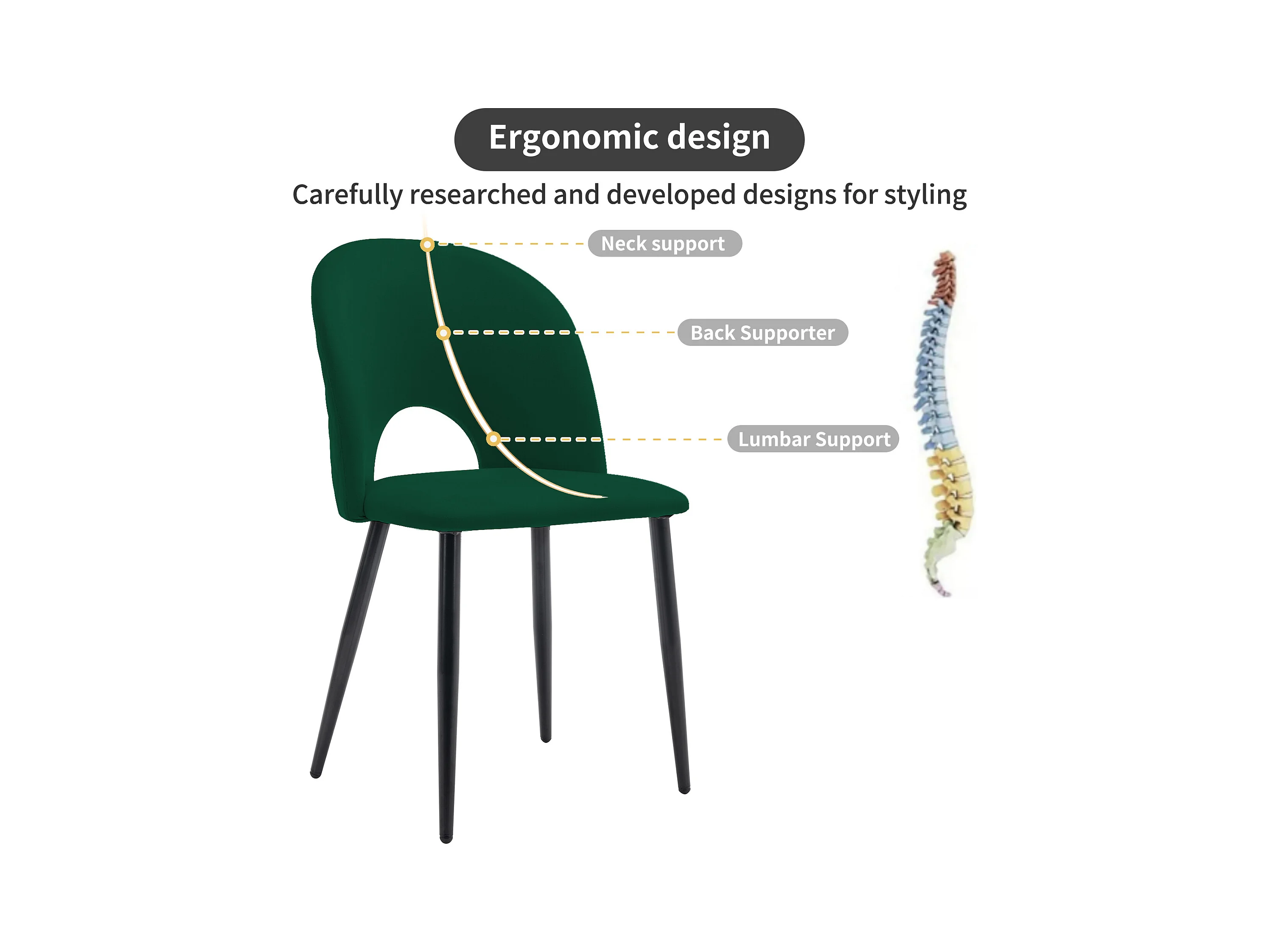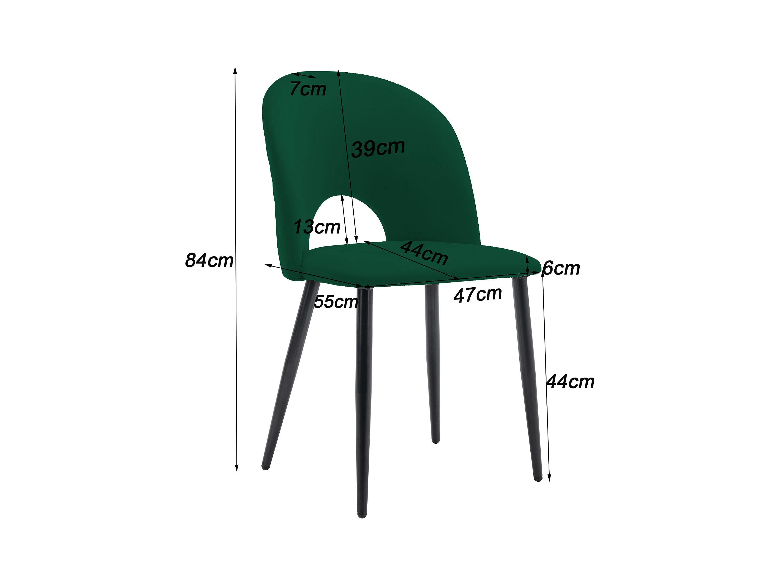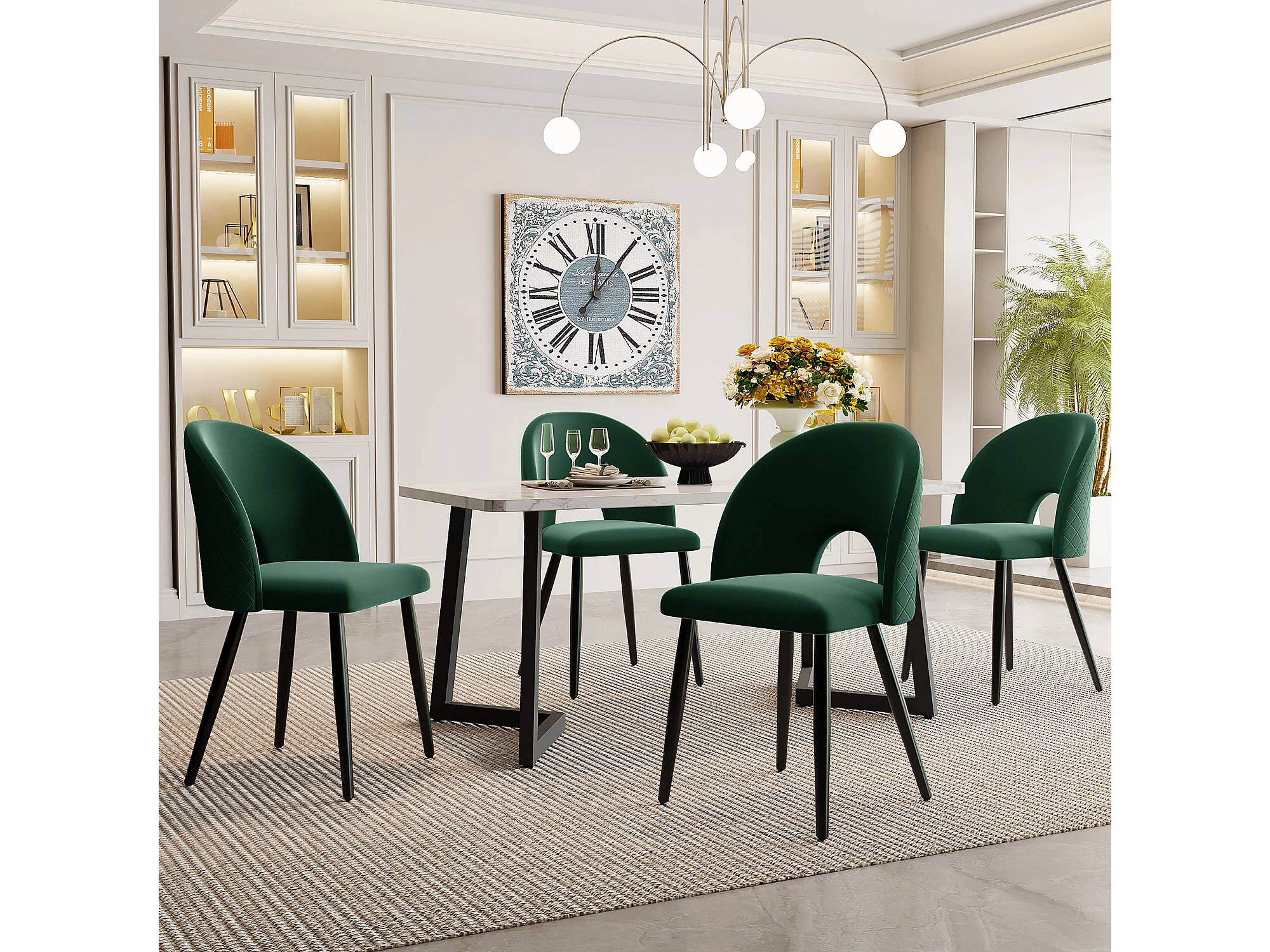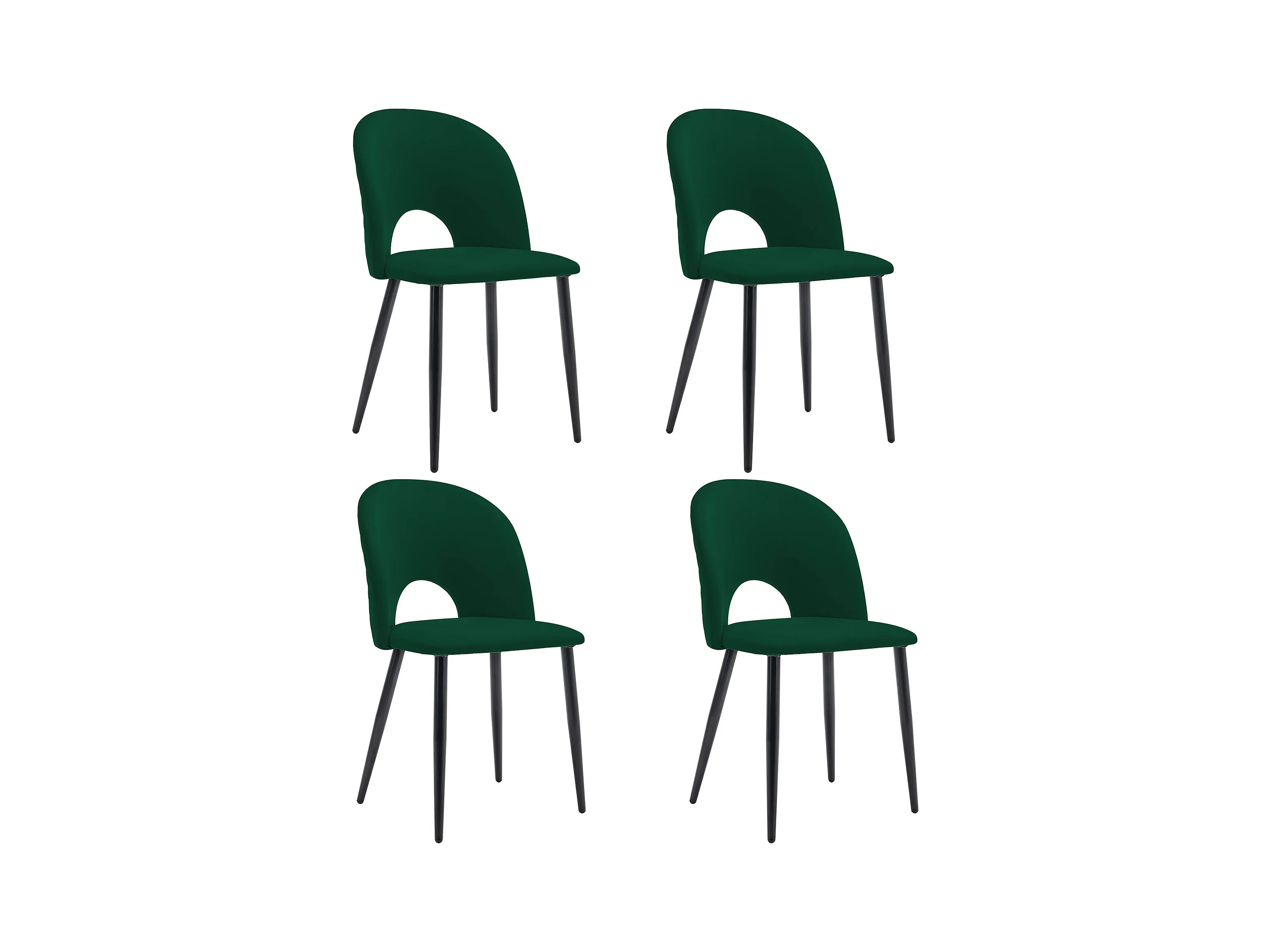 Ensemble table + 4 chaises en velours - MDF + métal - Vert