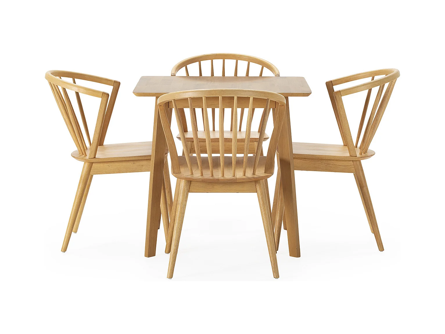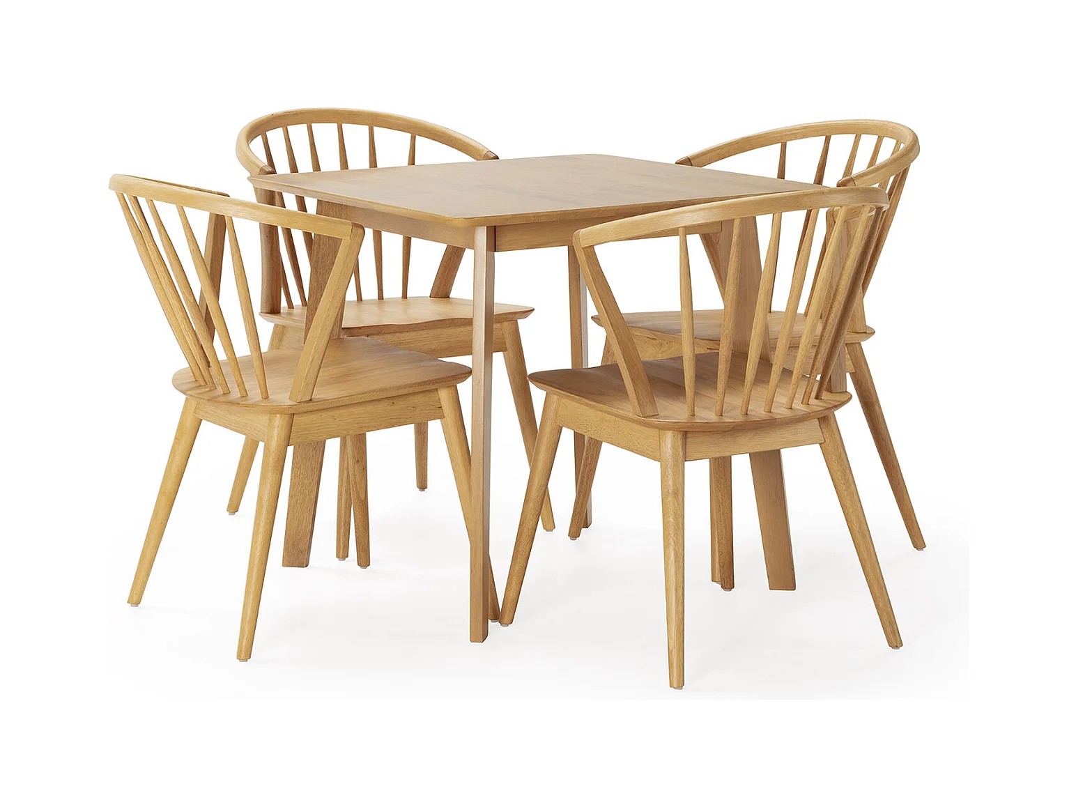 Ensemble table 80x80 cm et 4 chaises de salle à manger Nala Chêne