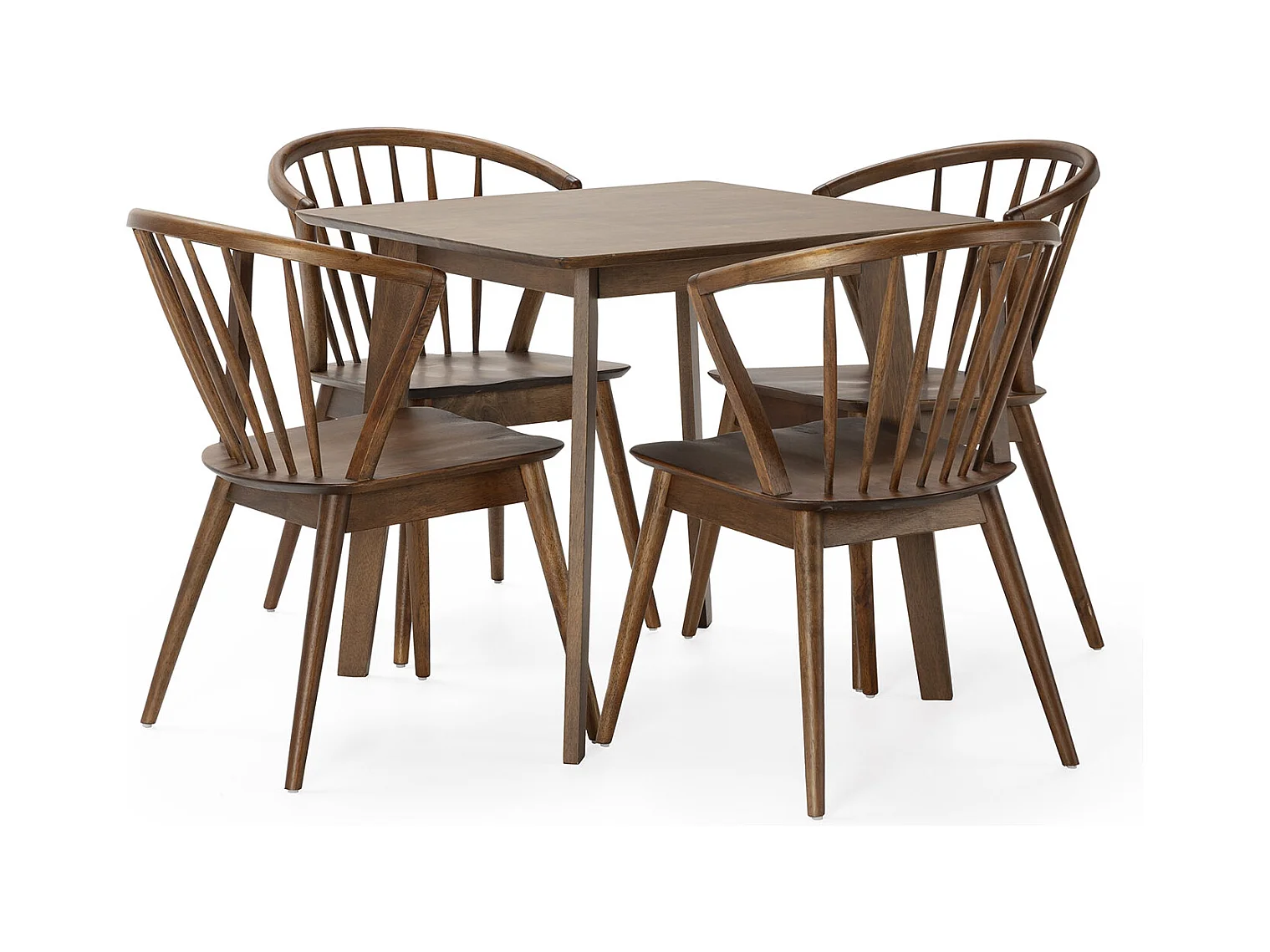 Ensemble table 80x80 cm et 4 chaises de salle à manger Nala Noyer