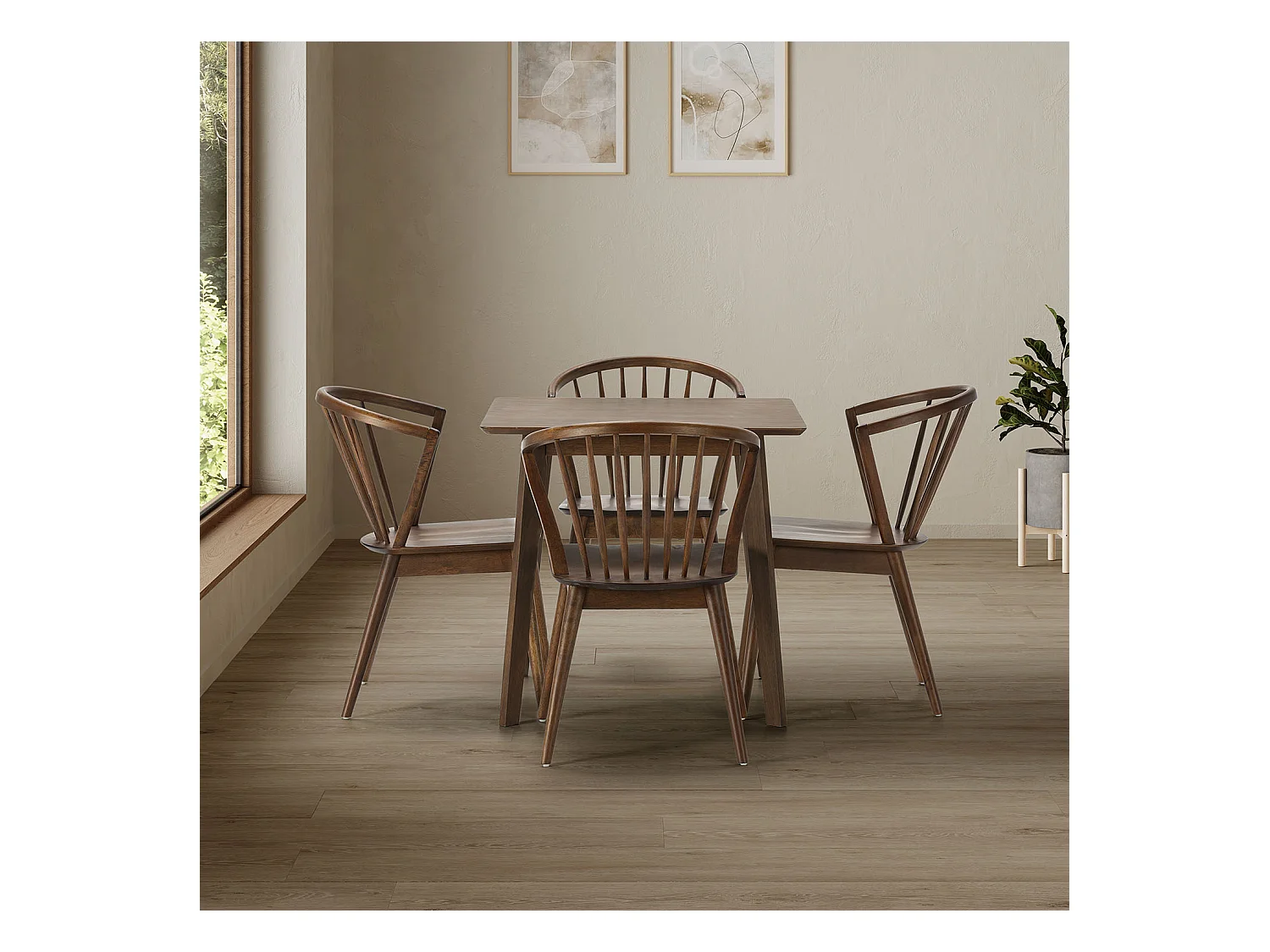 Ensemble table 80x80 cm et 4 chaises de salle à manger Rustic Noyer