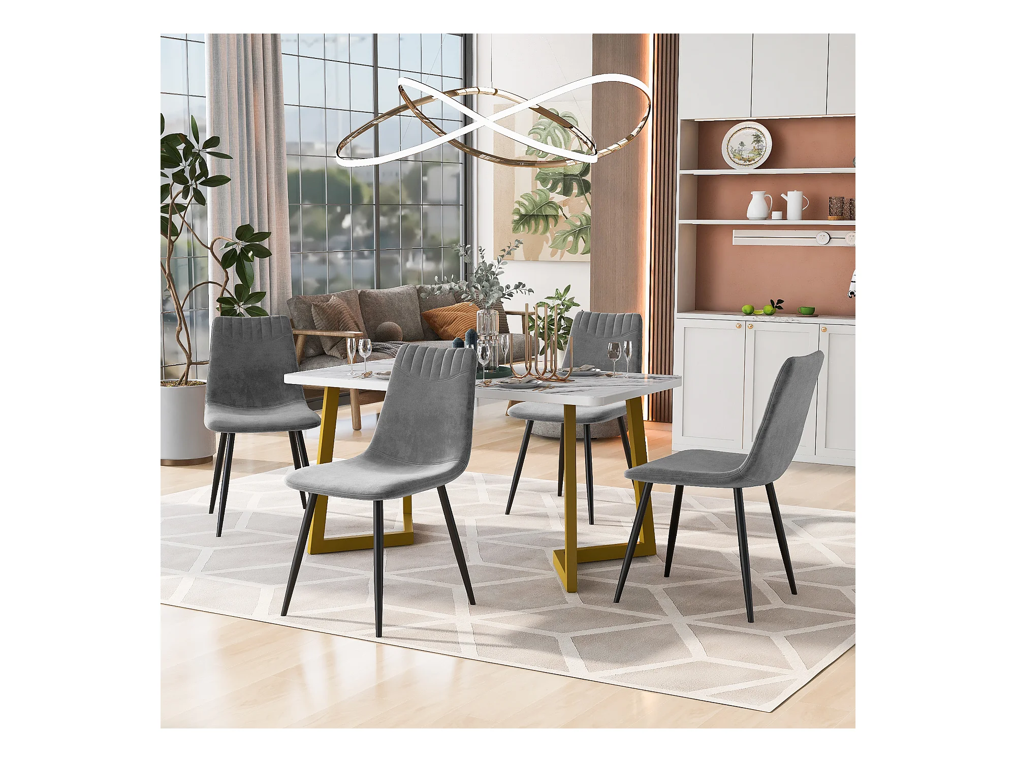 Ensemble table à manger 117 x 68 cm avec 4 chaises rembourrées en velours - pièds en métal doré - Blanc + gris