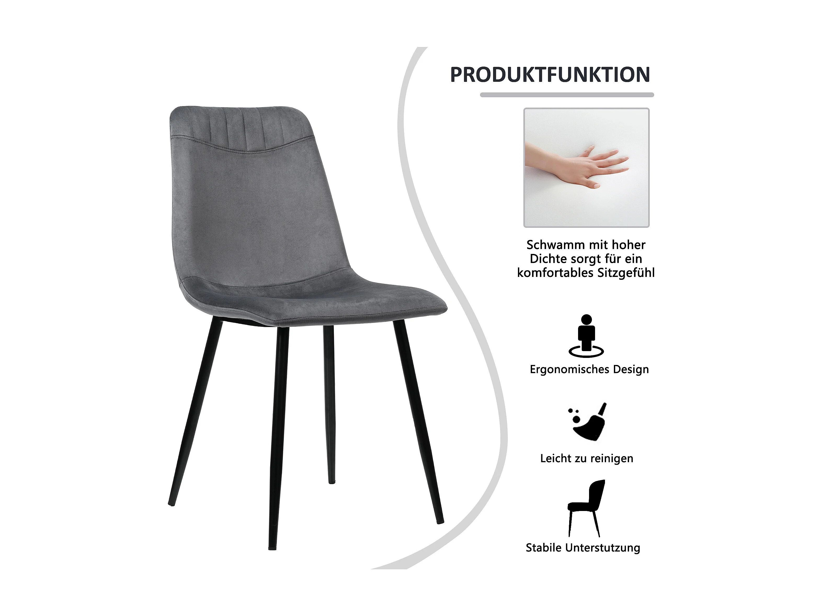 Lot de 6 chaises en velours - pieds en bois massif - gris