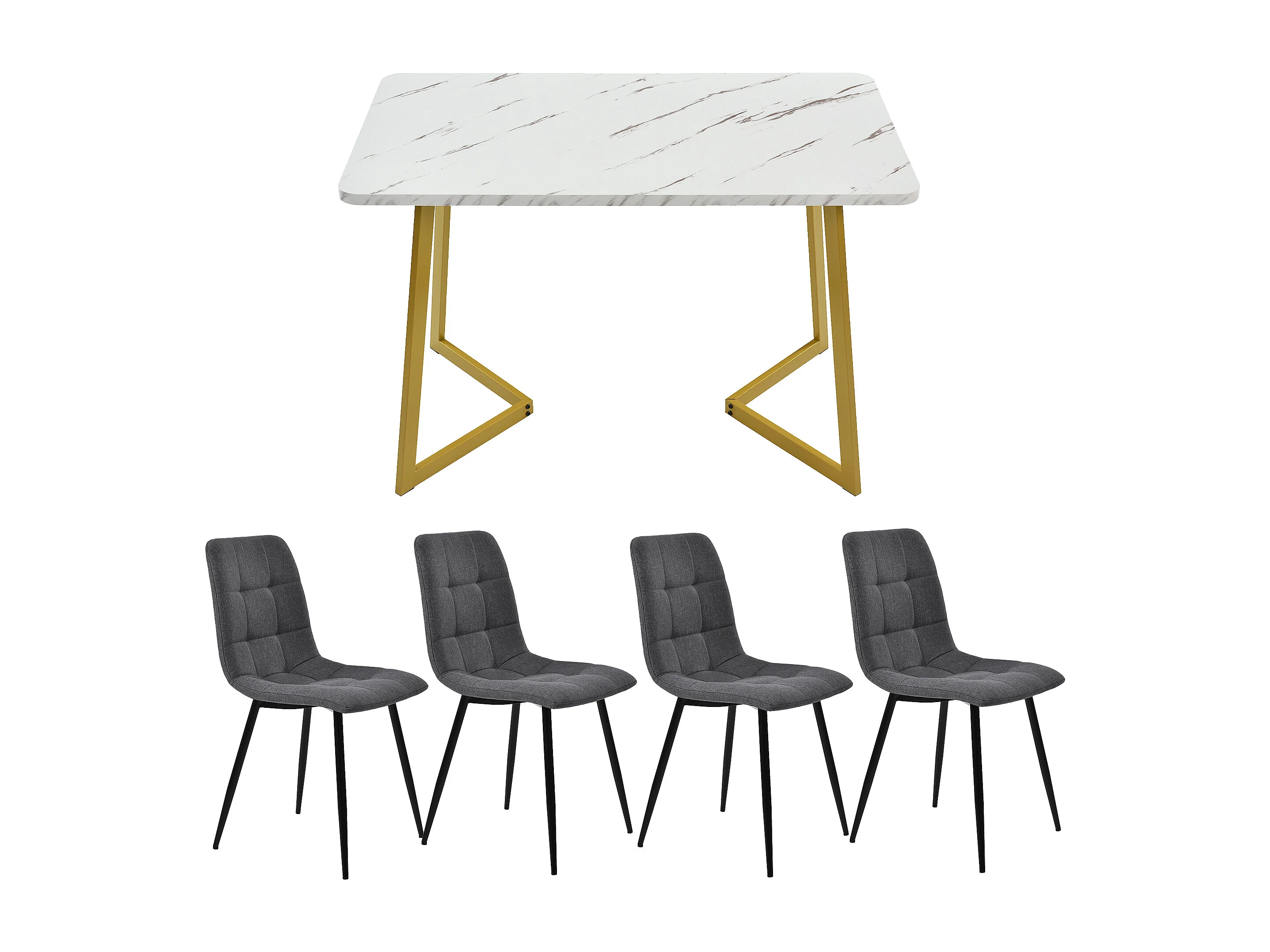 Ensemble table à manger rectangulaire avec 4 chaises, design moderne, chaises ergonomiques rembourrées, MDF gris