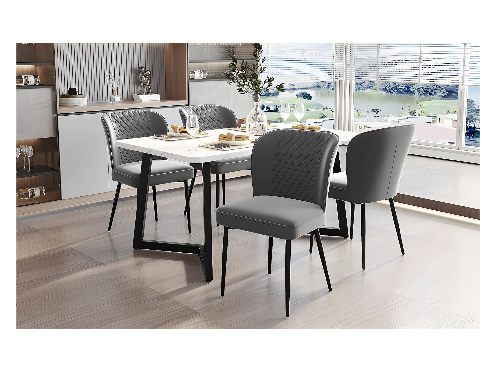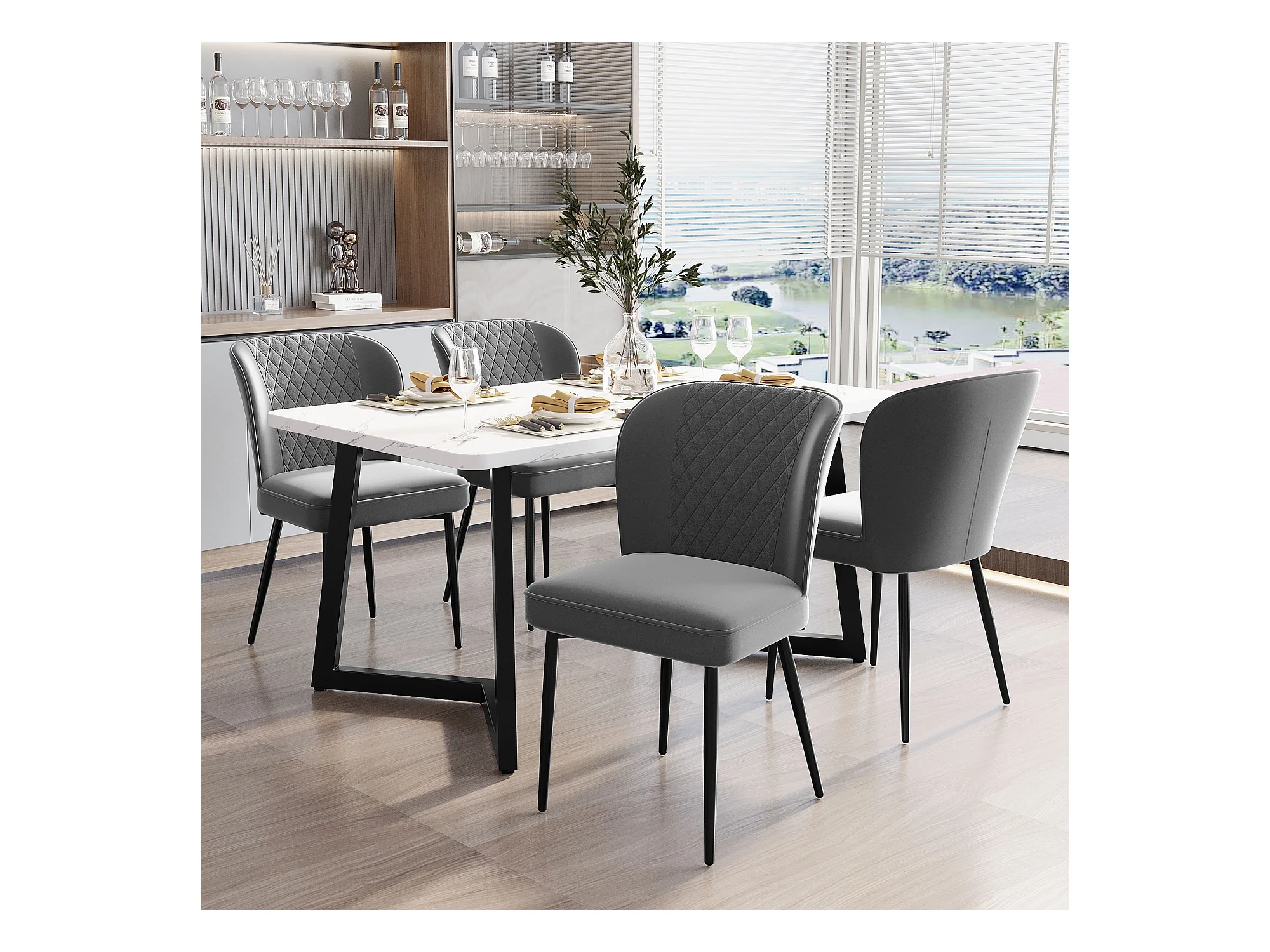 Ensemble table à manger 117x68x75cm avec 4 chaises en velours - Bois MDF et métal - Gris