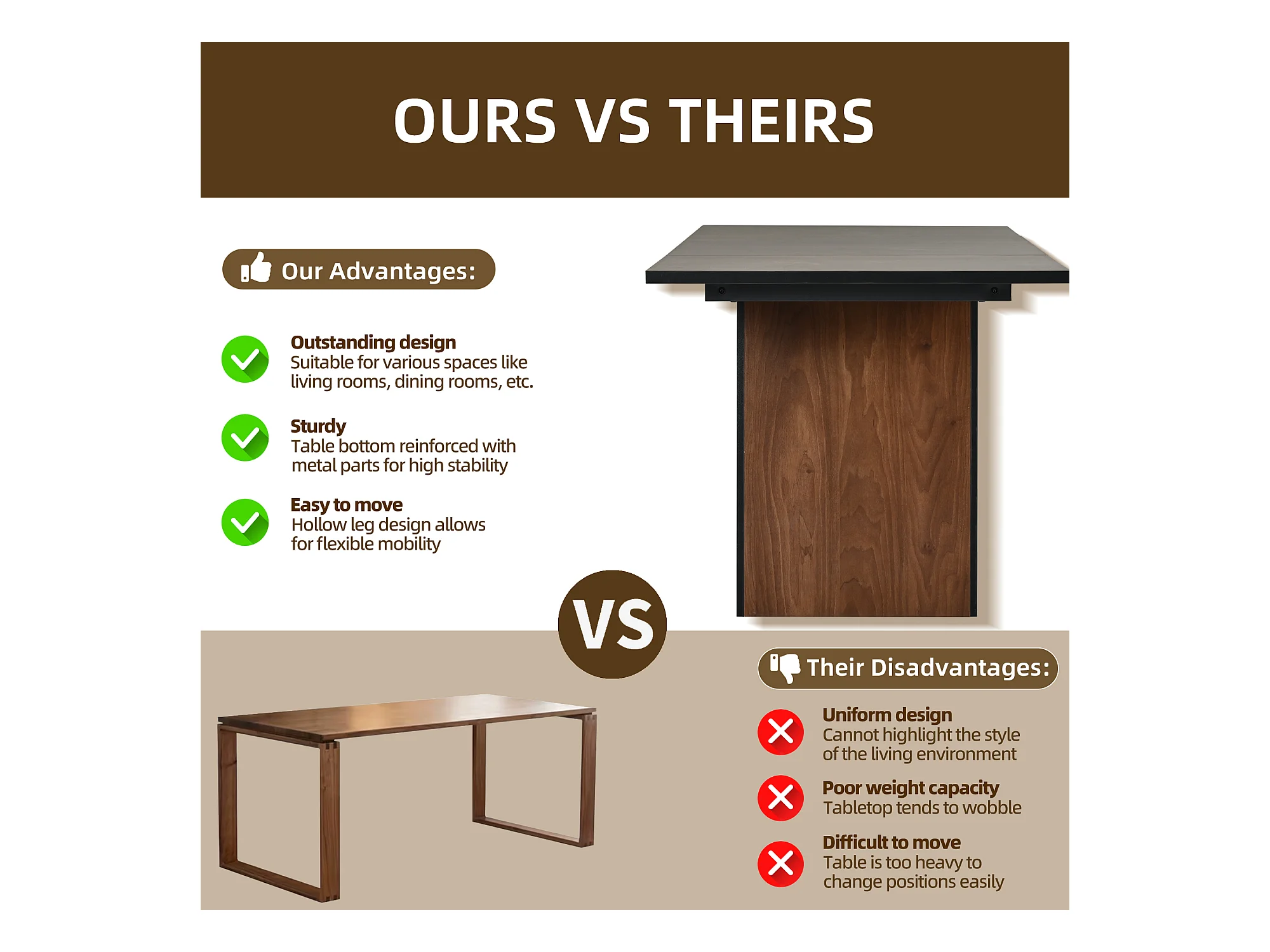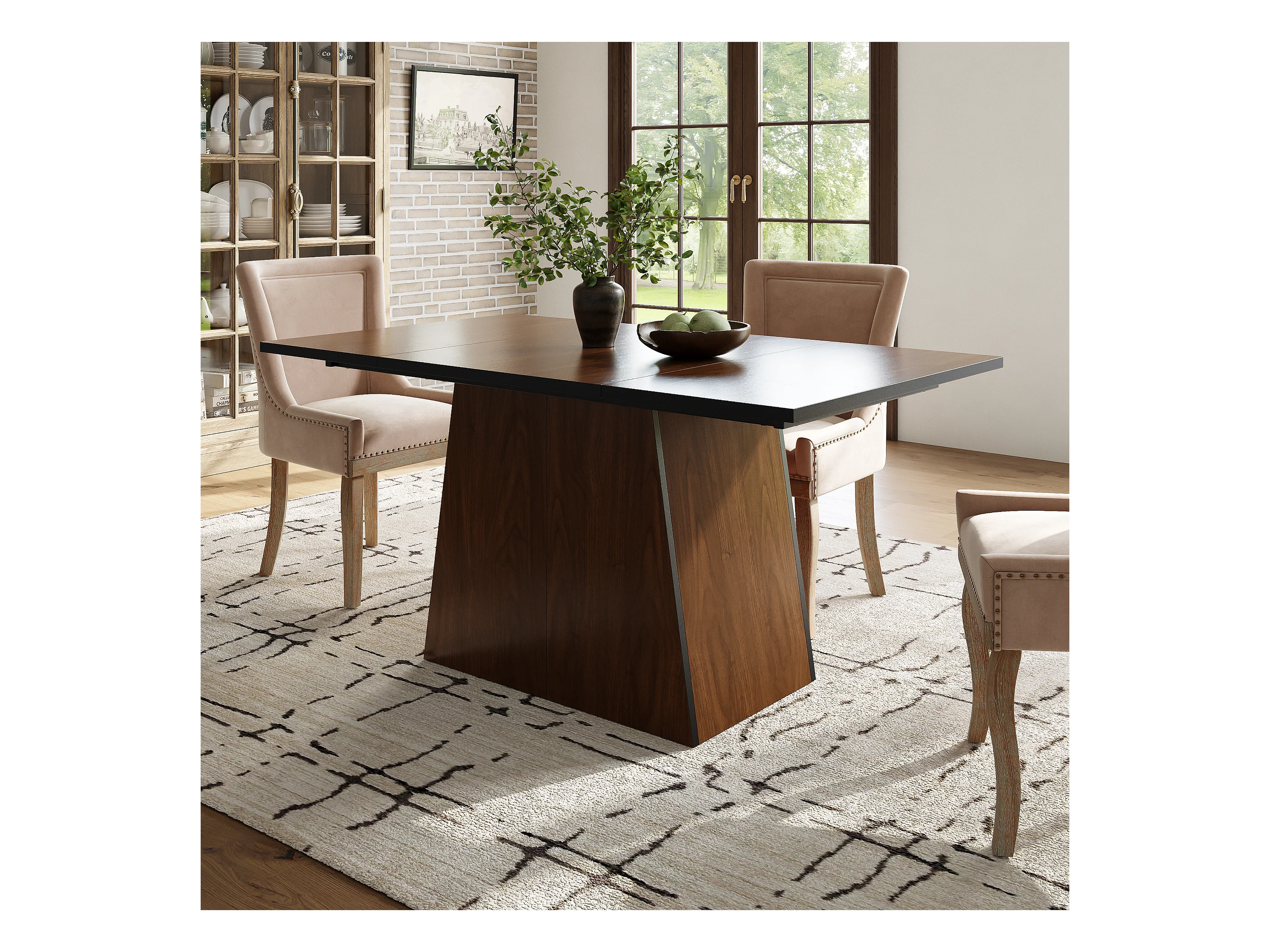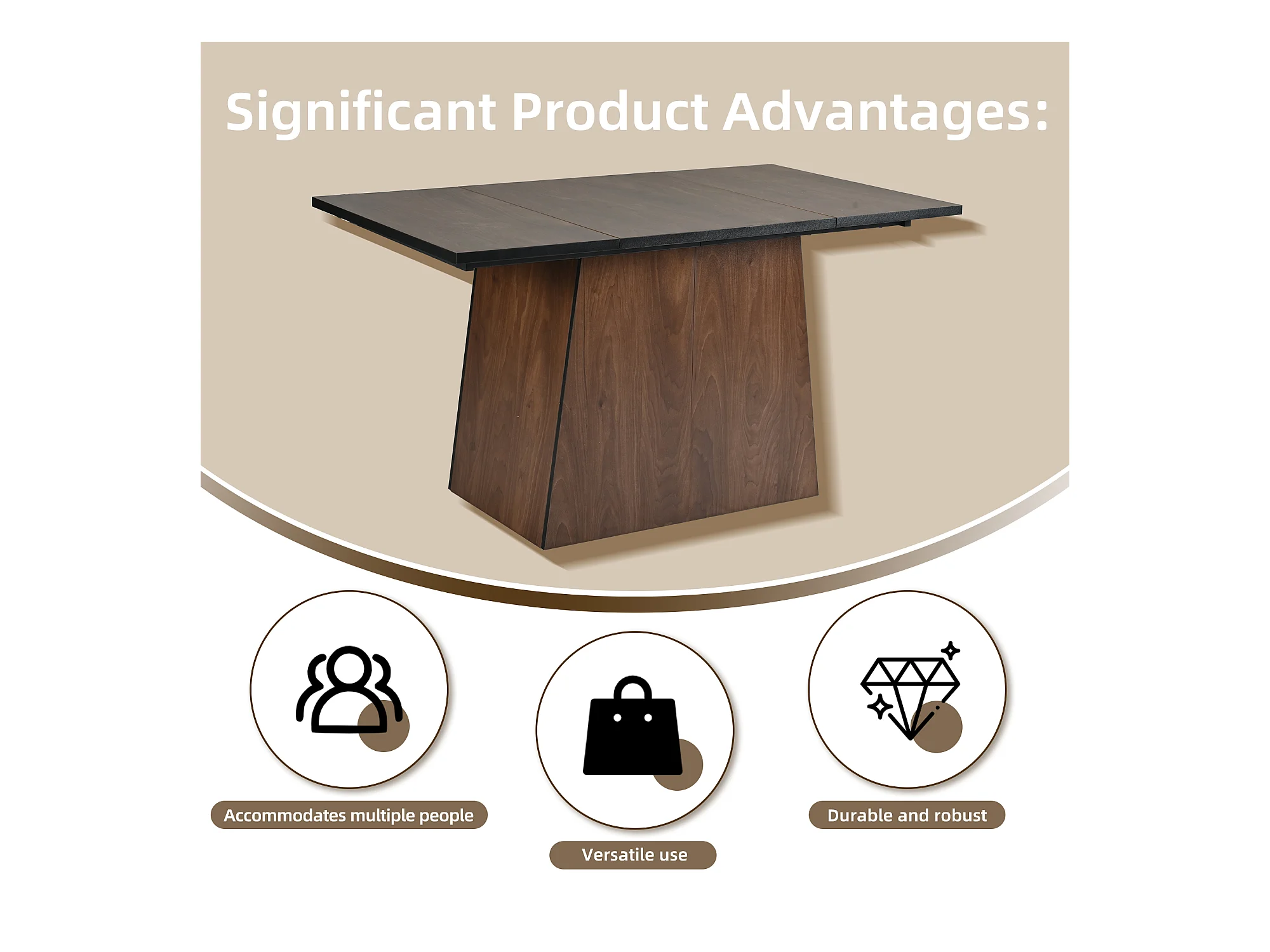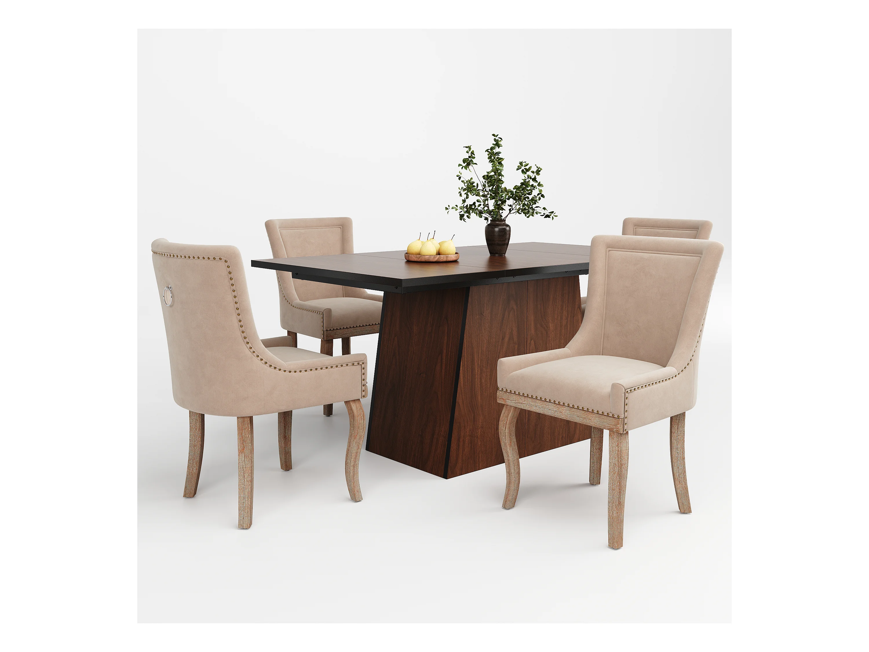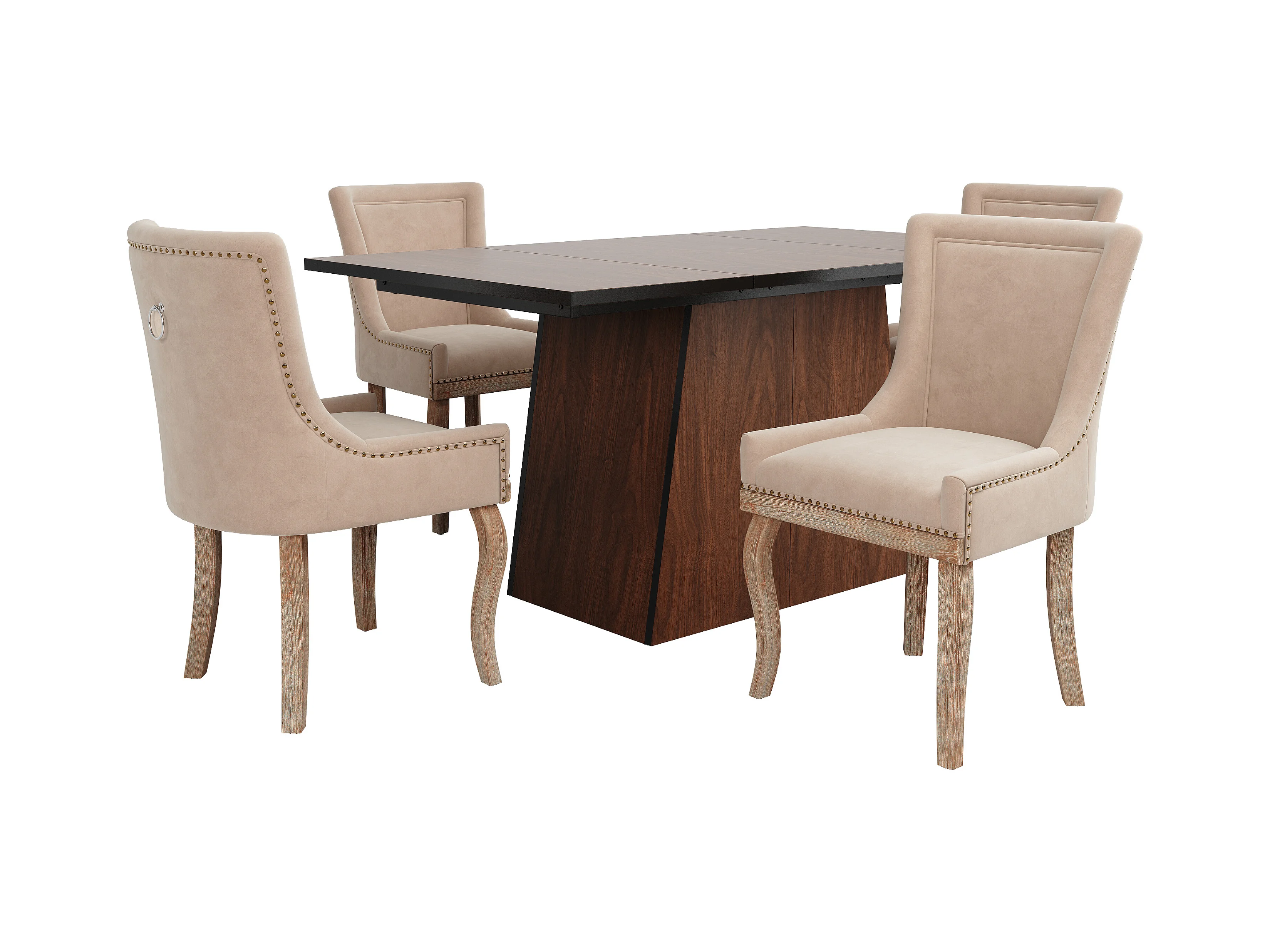 Ensemble table à manger 138.5 x 80 x 75 cm + 4 chaises en velours - Bois MDF - Beige + marron foncé