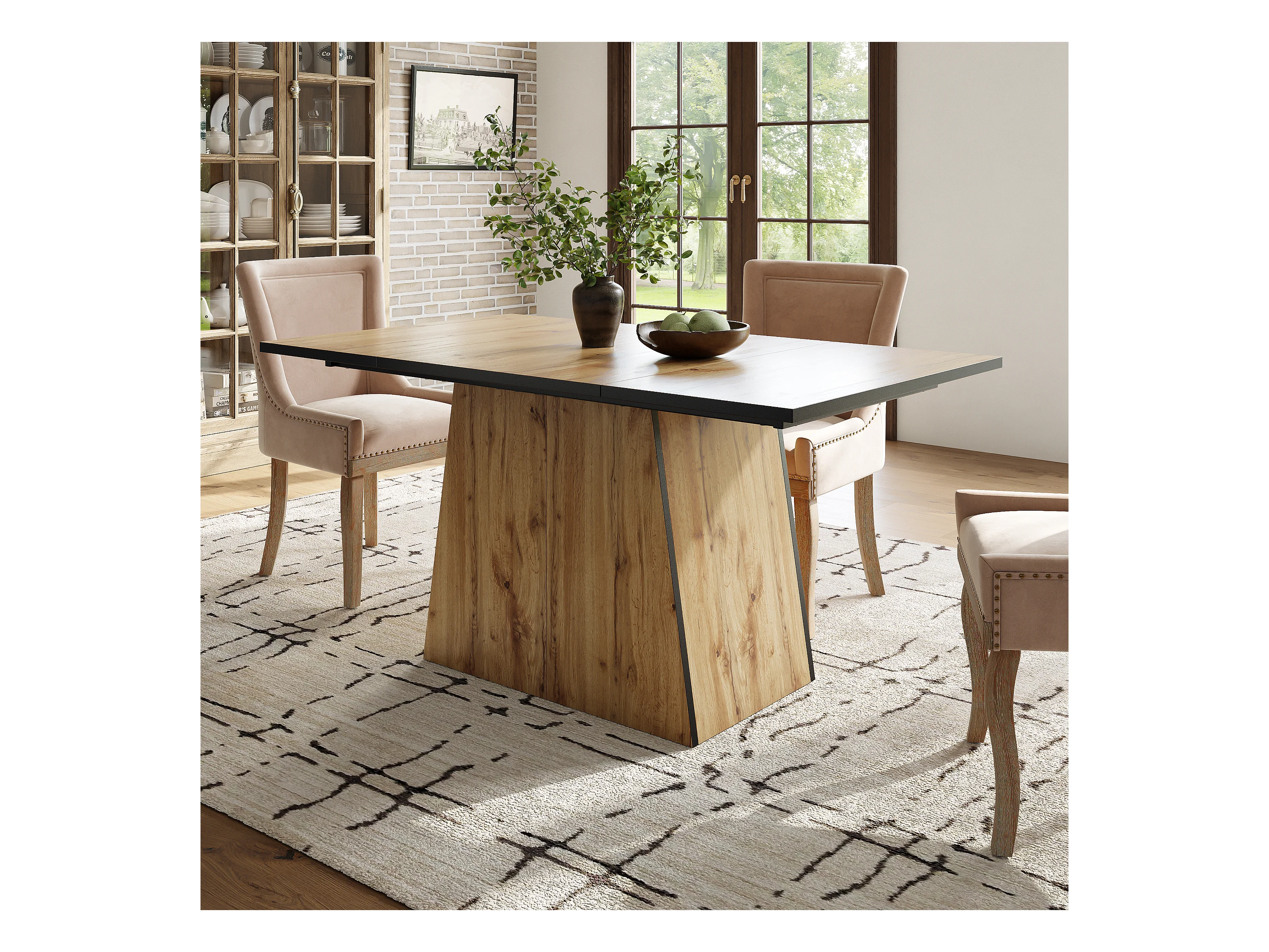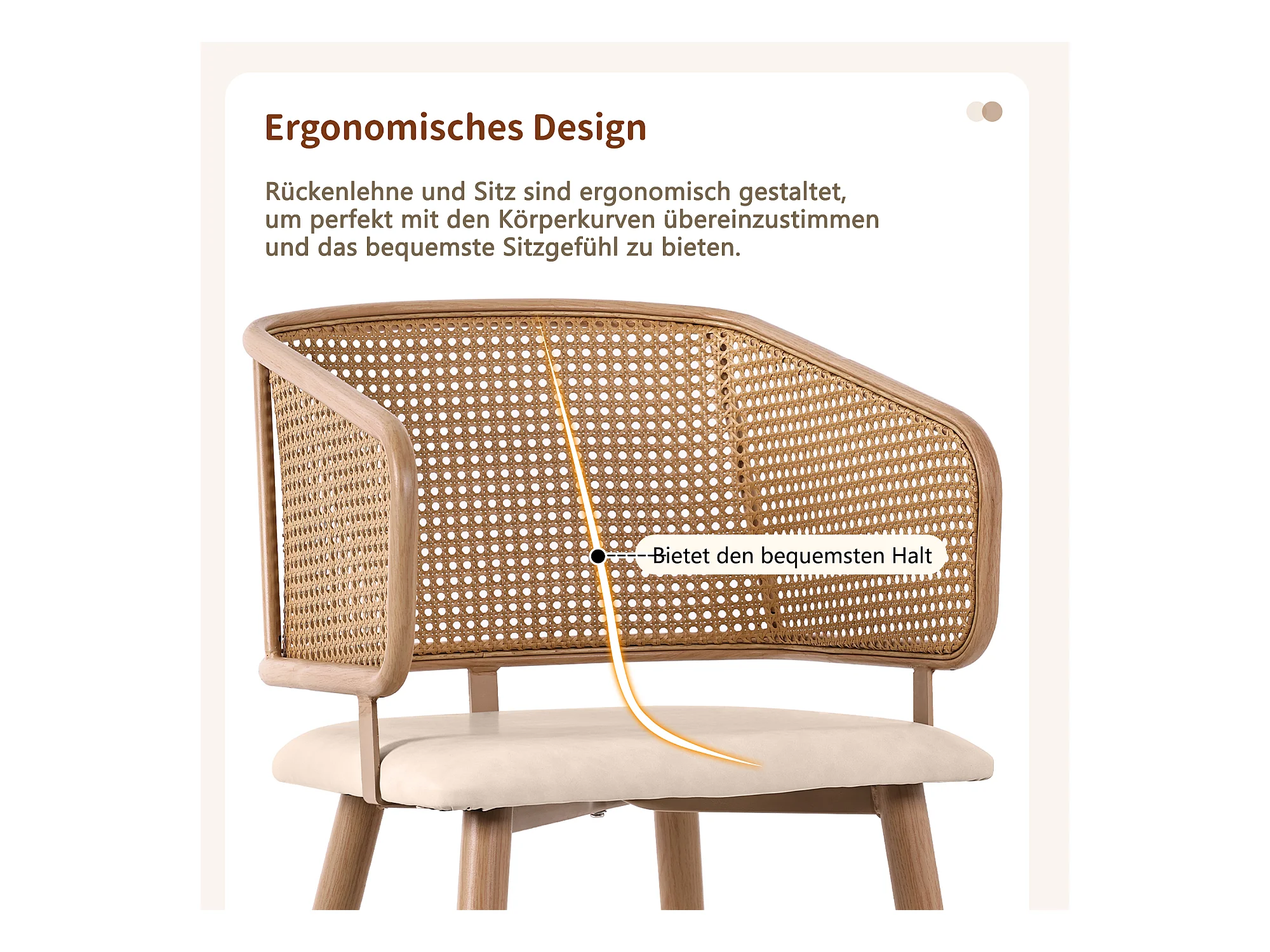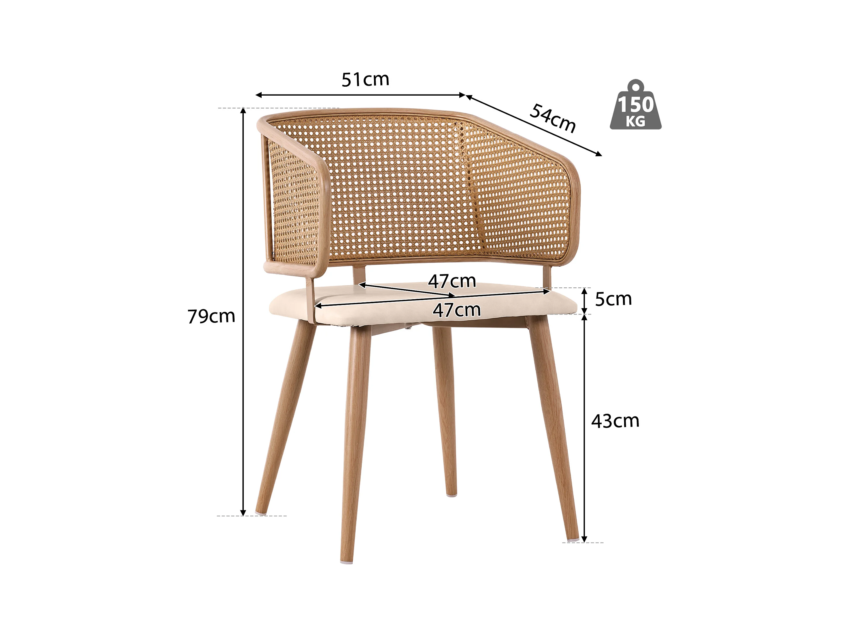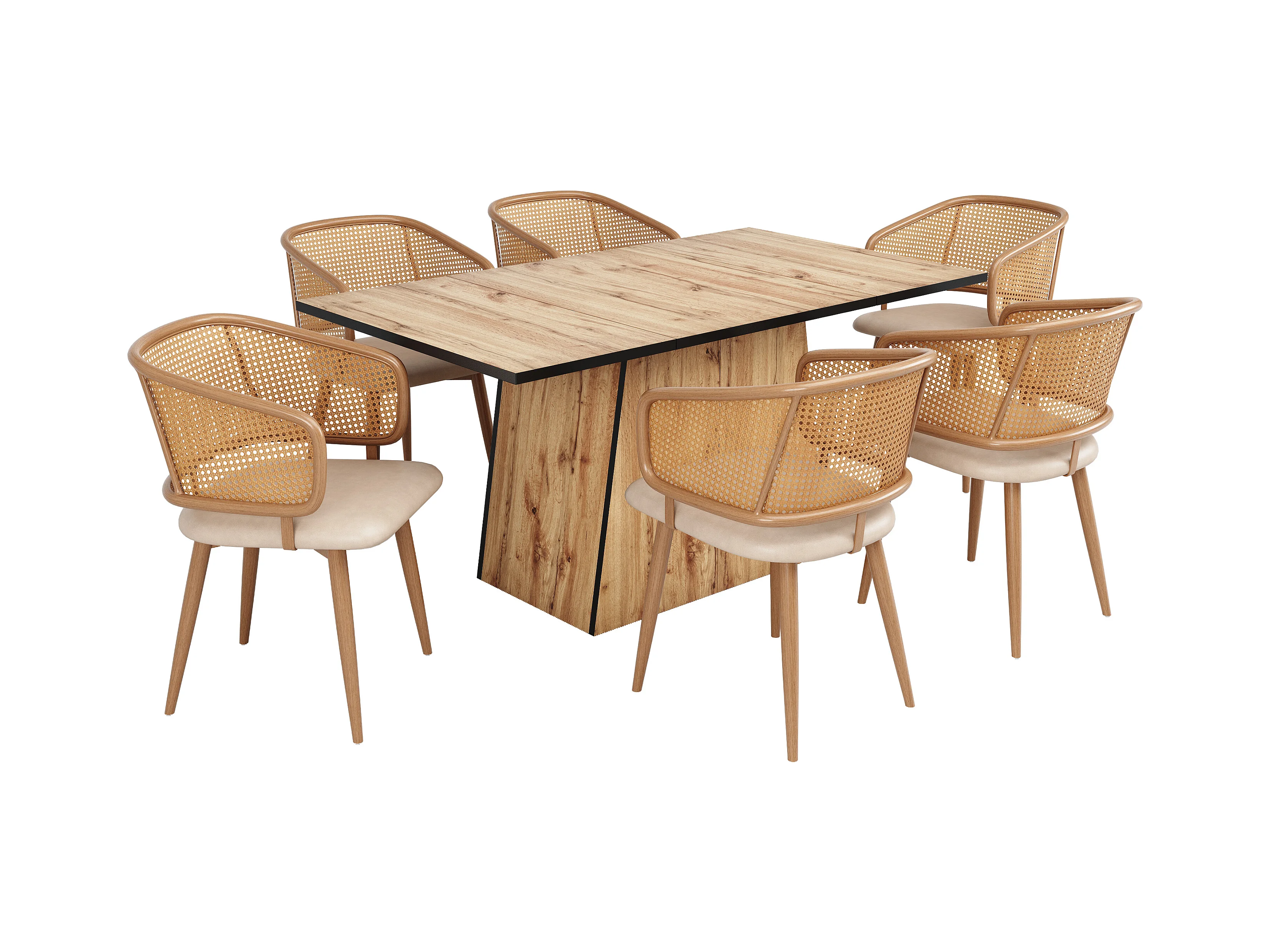 Ensemble table à manger + 6 chaises en rotin - 138.5 x 80 x 75 cm - Bois MDF et coussins en cuir pu - Beige + marron