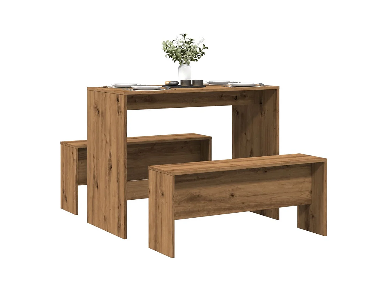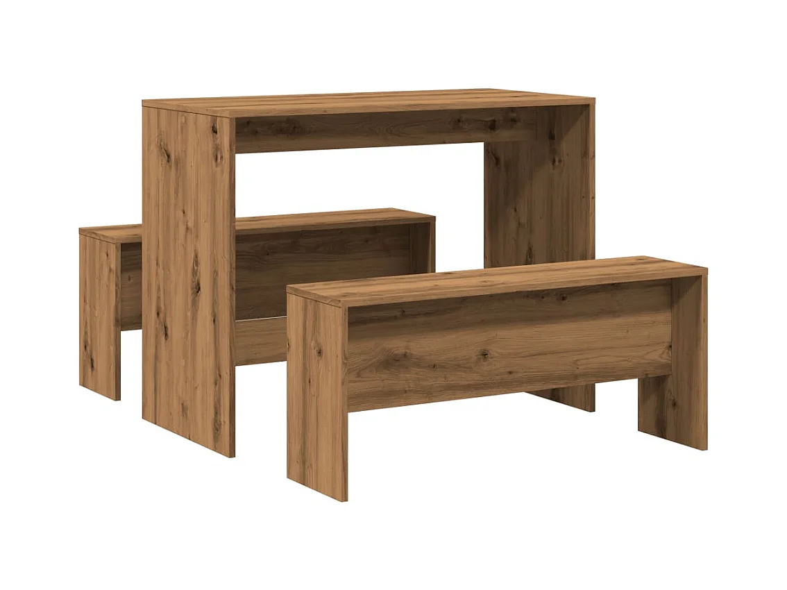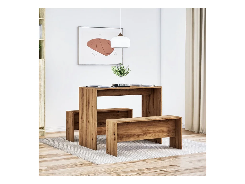 Table à manger et bancs 3 pcs Bois d'ingénierie Chêne