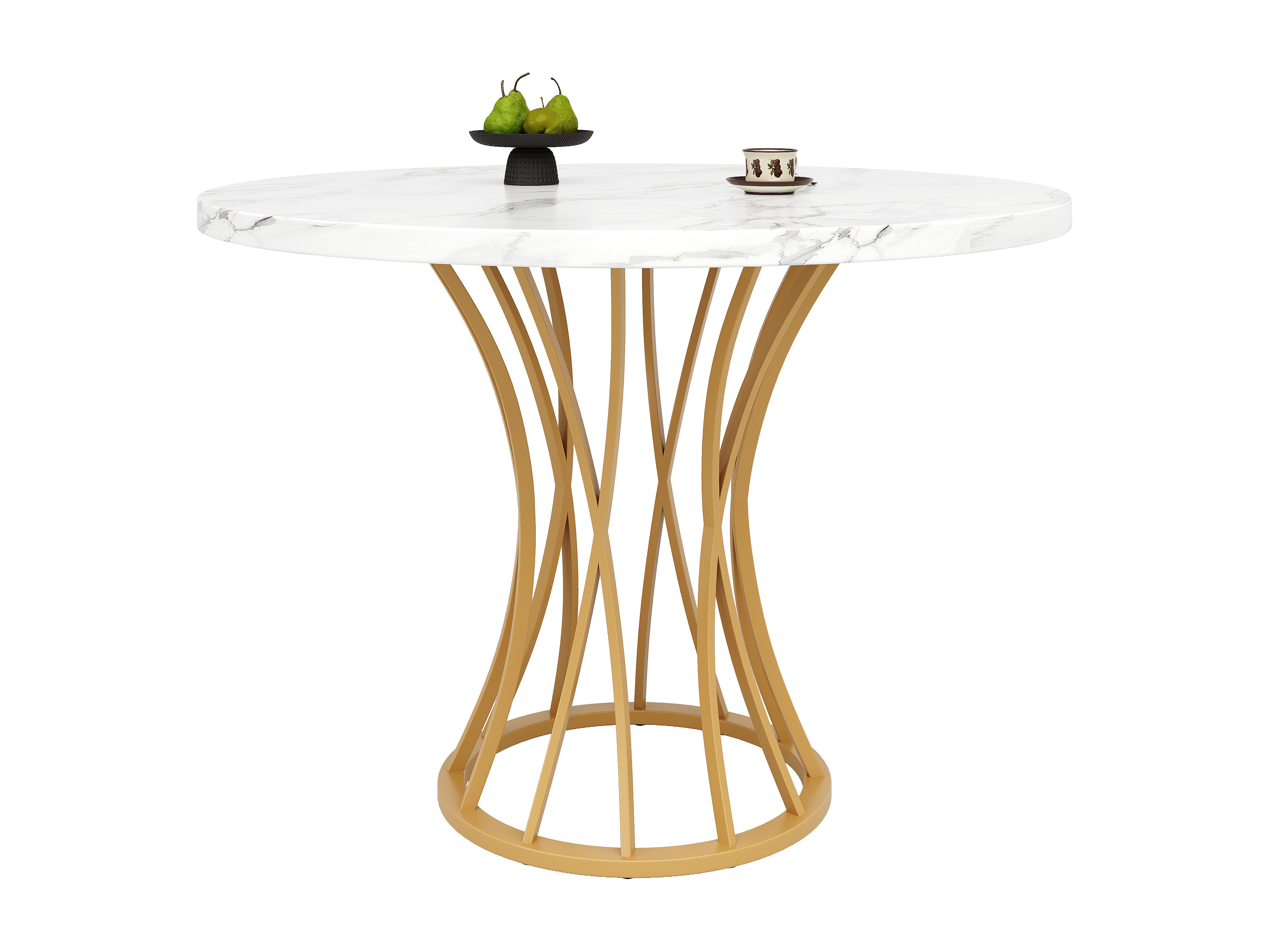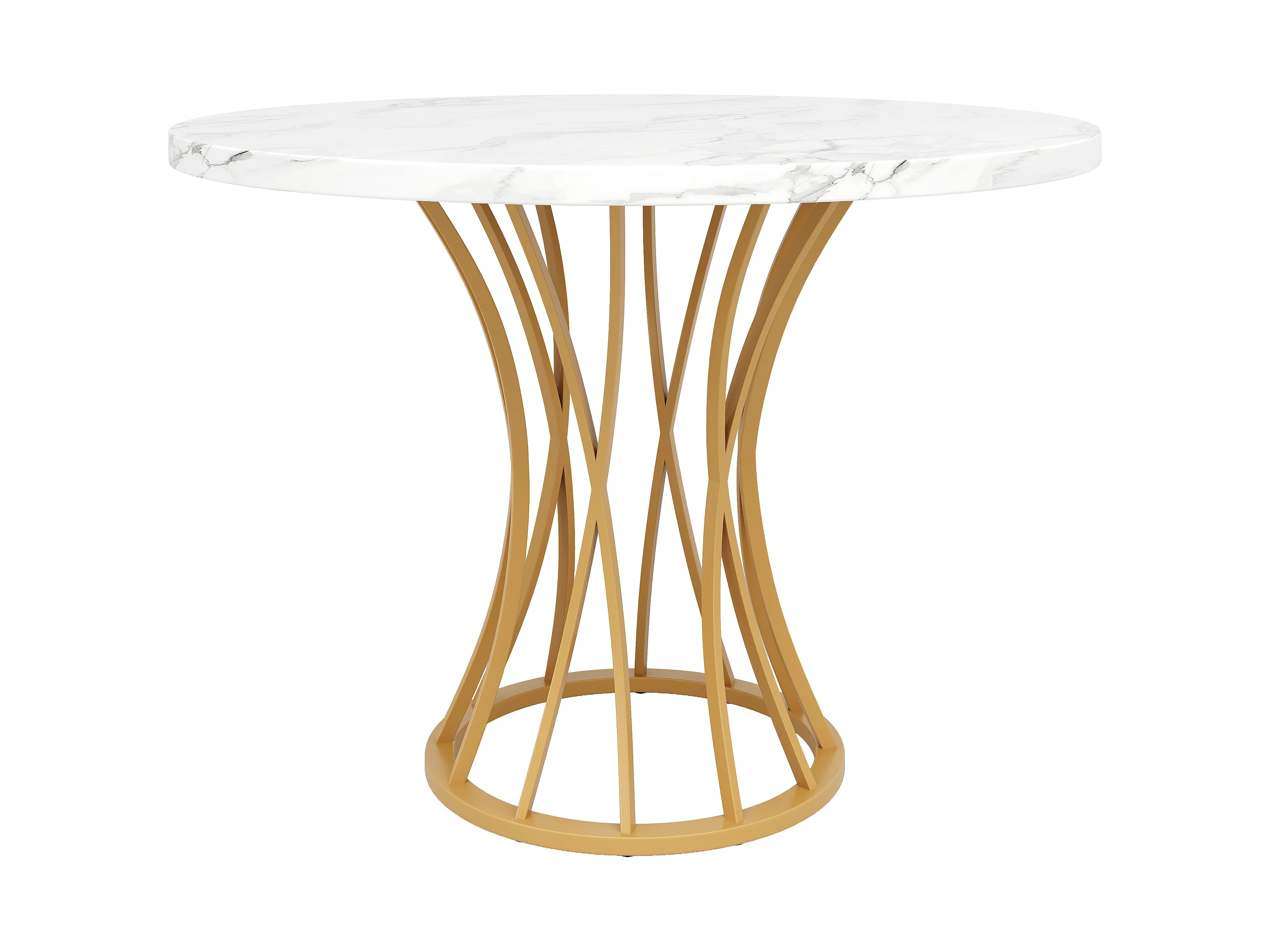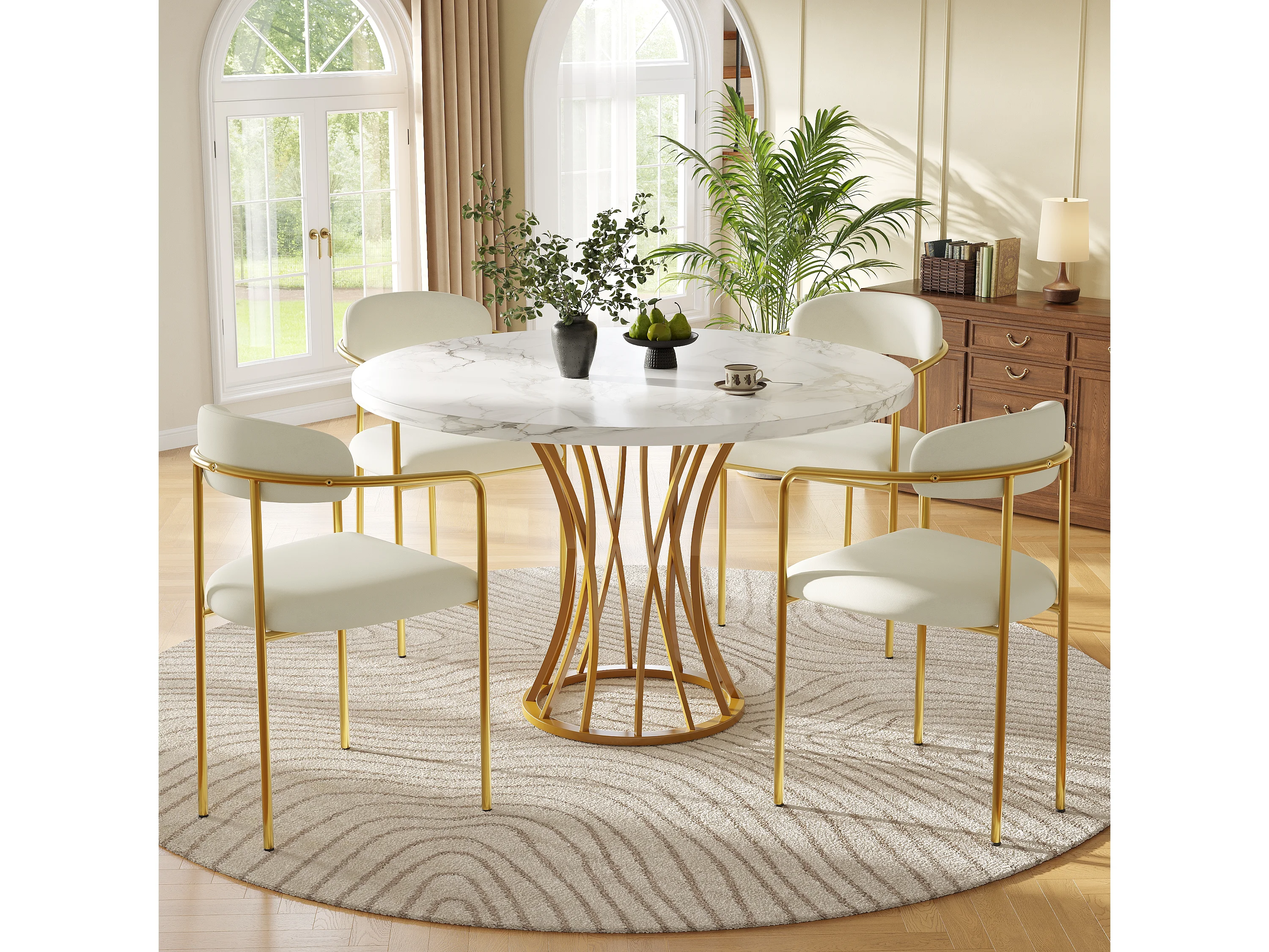 Ensemble table à manger ronde + 4 chaises en velours - D 80 x H 76 cm - MDF et pièds en métal doré - Effet marbre - Beige