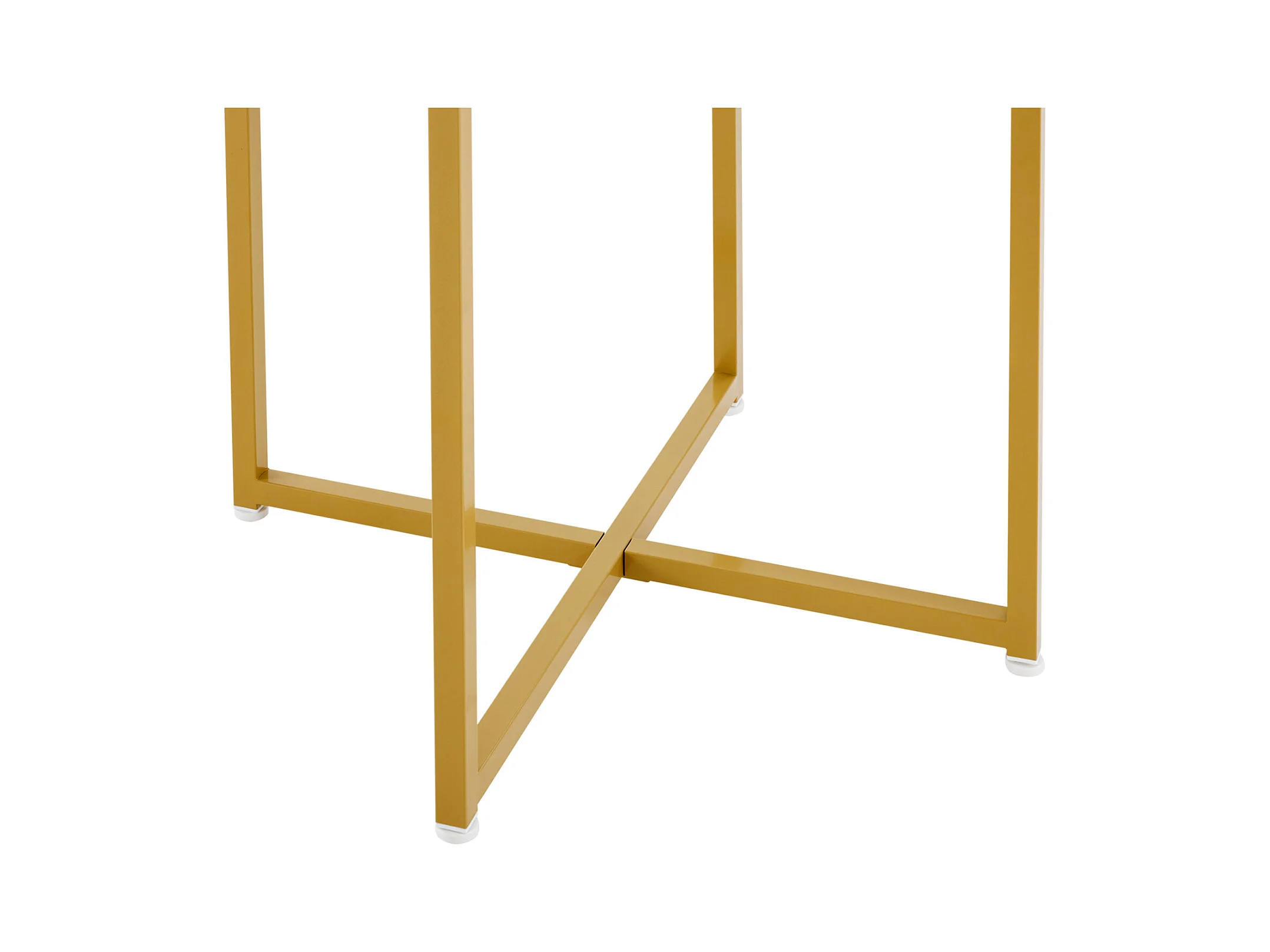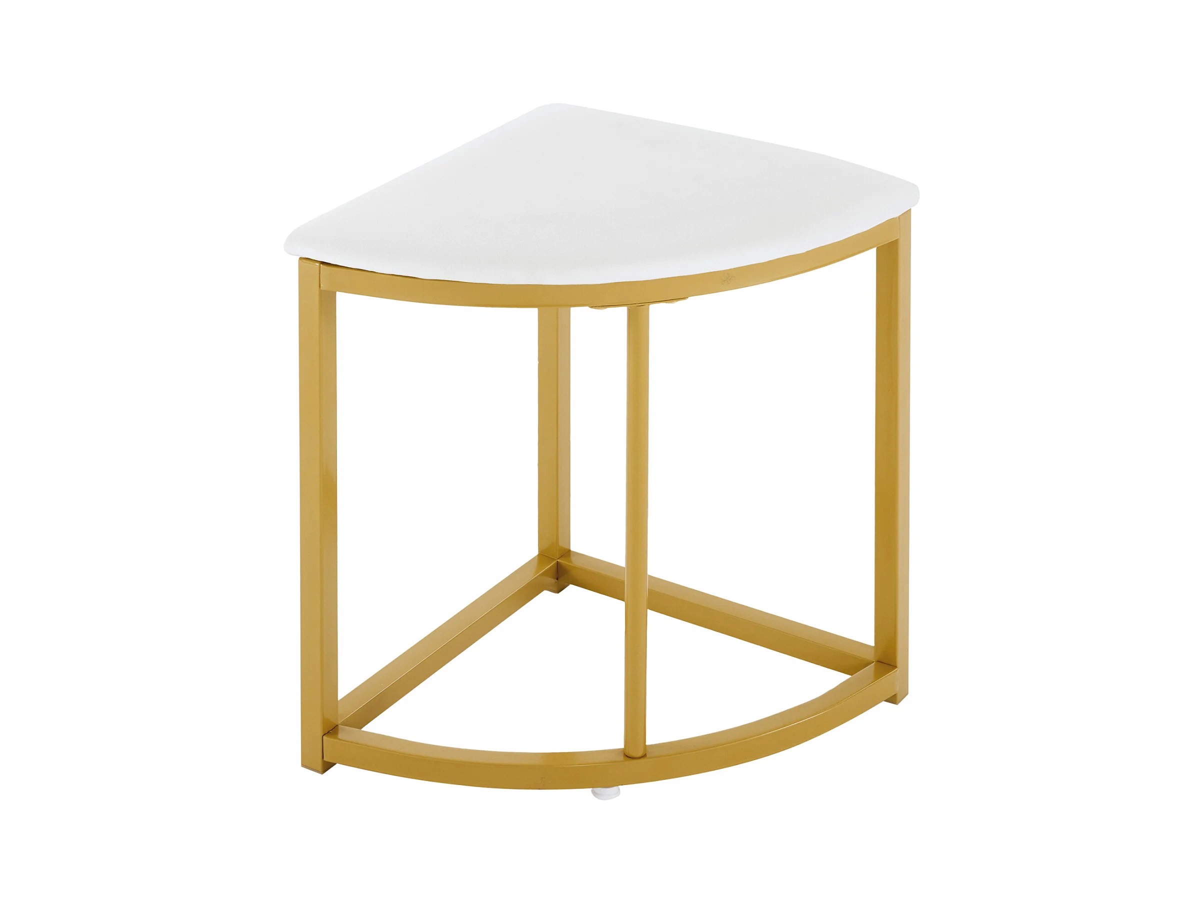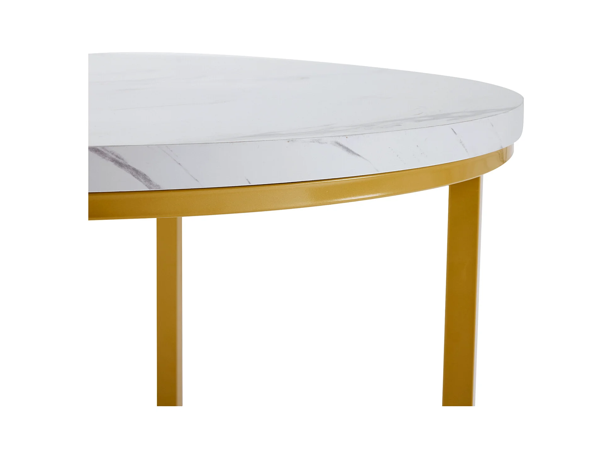 Ensemble table avec 4 chaises, plateau ronde en MDF, cadre en fer plaqué or, chaise en velours, D80x75cm+D33x46cm, blanc