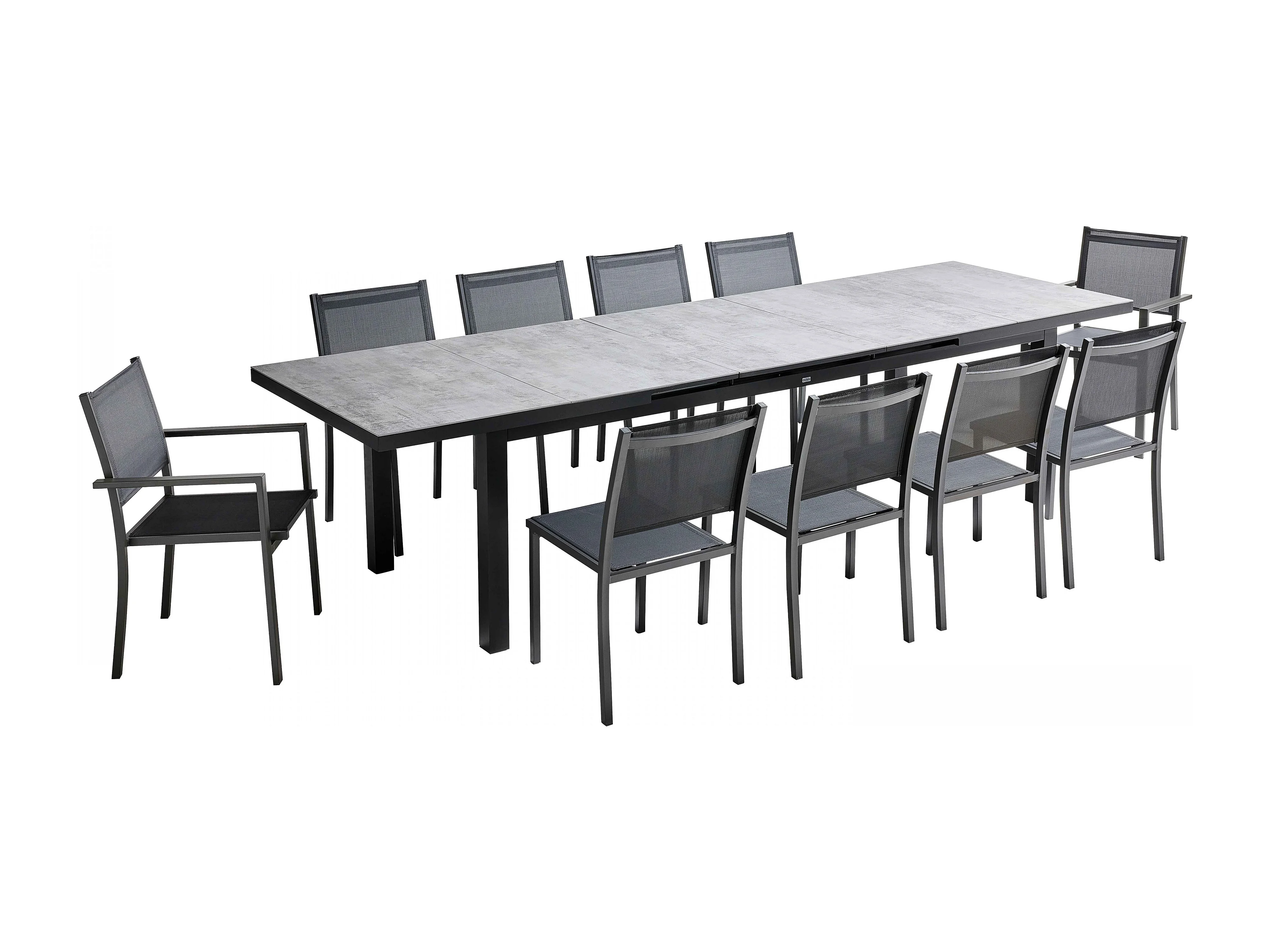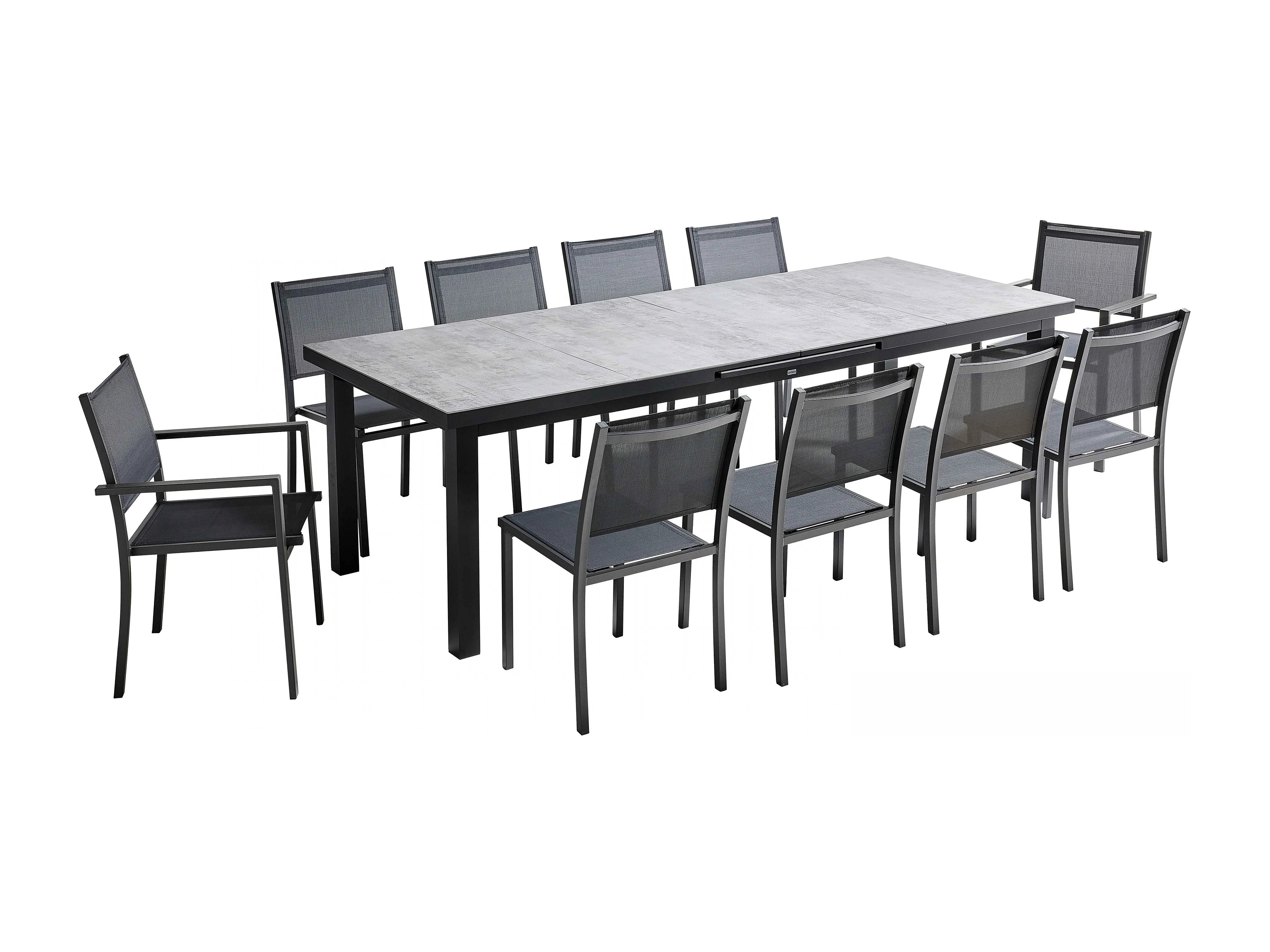 Ensemble table de jardin avec 8 chaises et 2 fauteuils béton