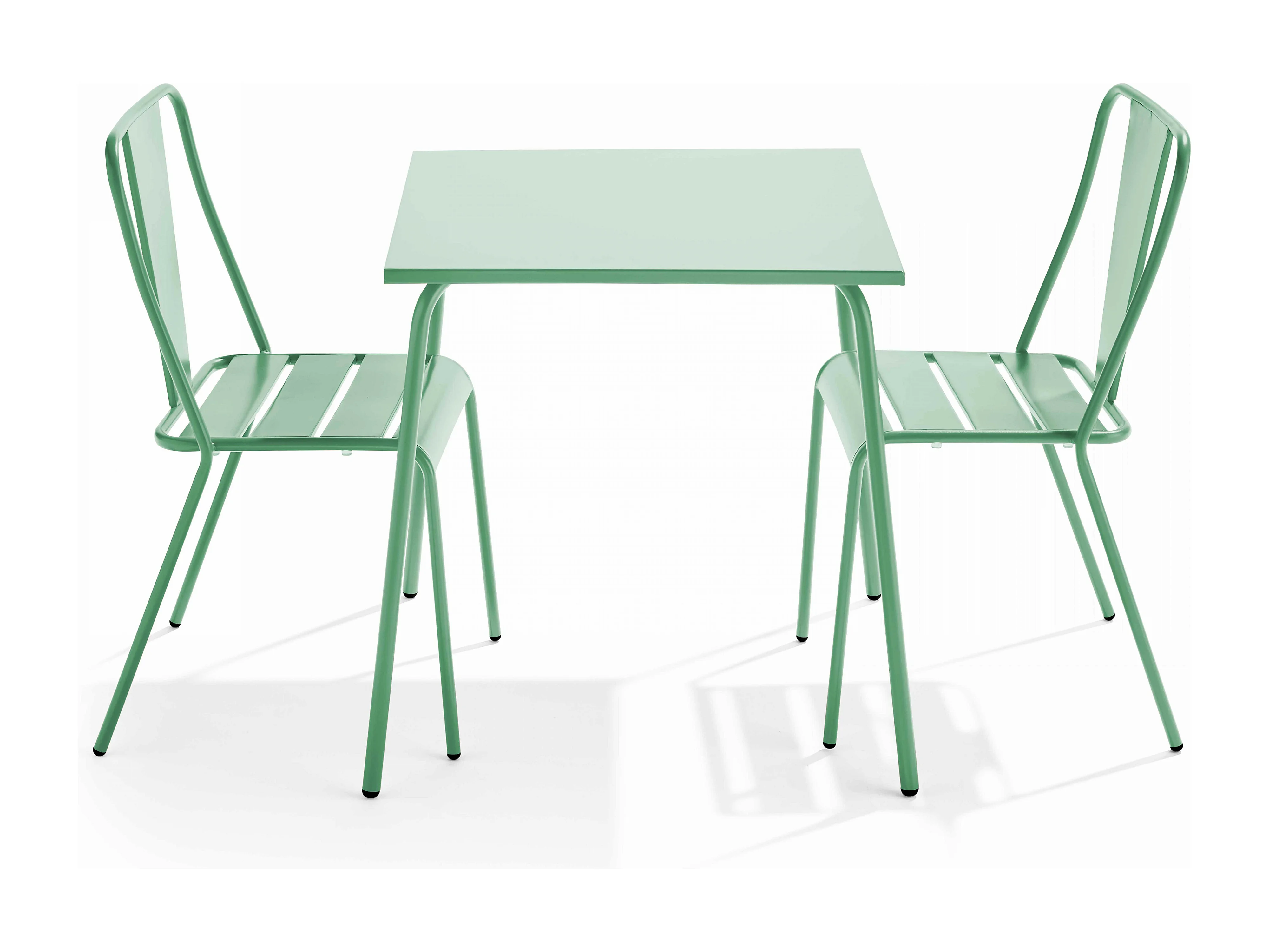 Ensemble table de jardin carrée et 2 chaises bistrot vert sauge - Palavas
