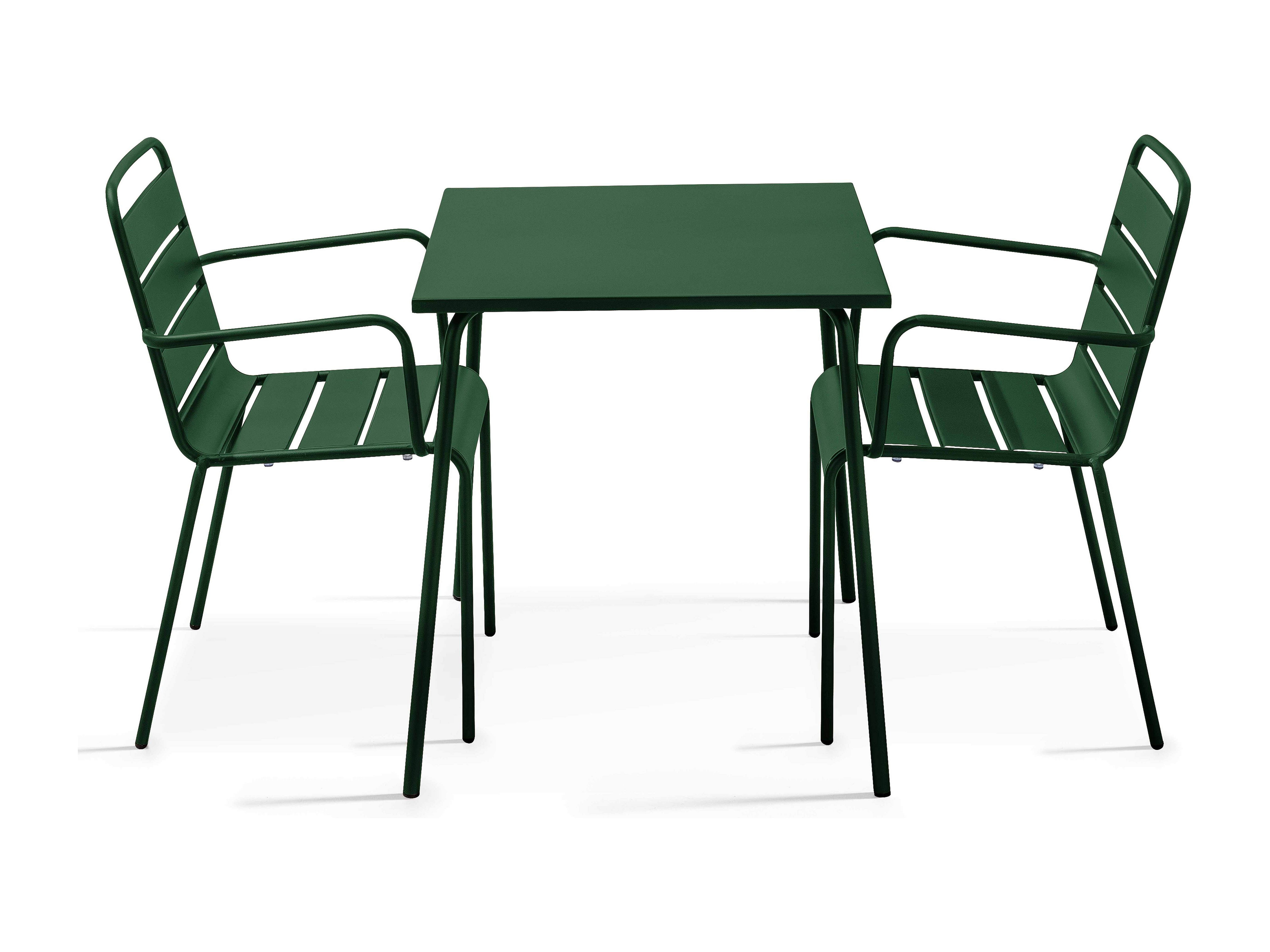 Ensemble table de jardin carrée et 2 fauteuils acier Vert forêt - Palavas