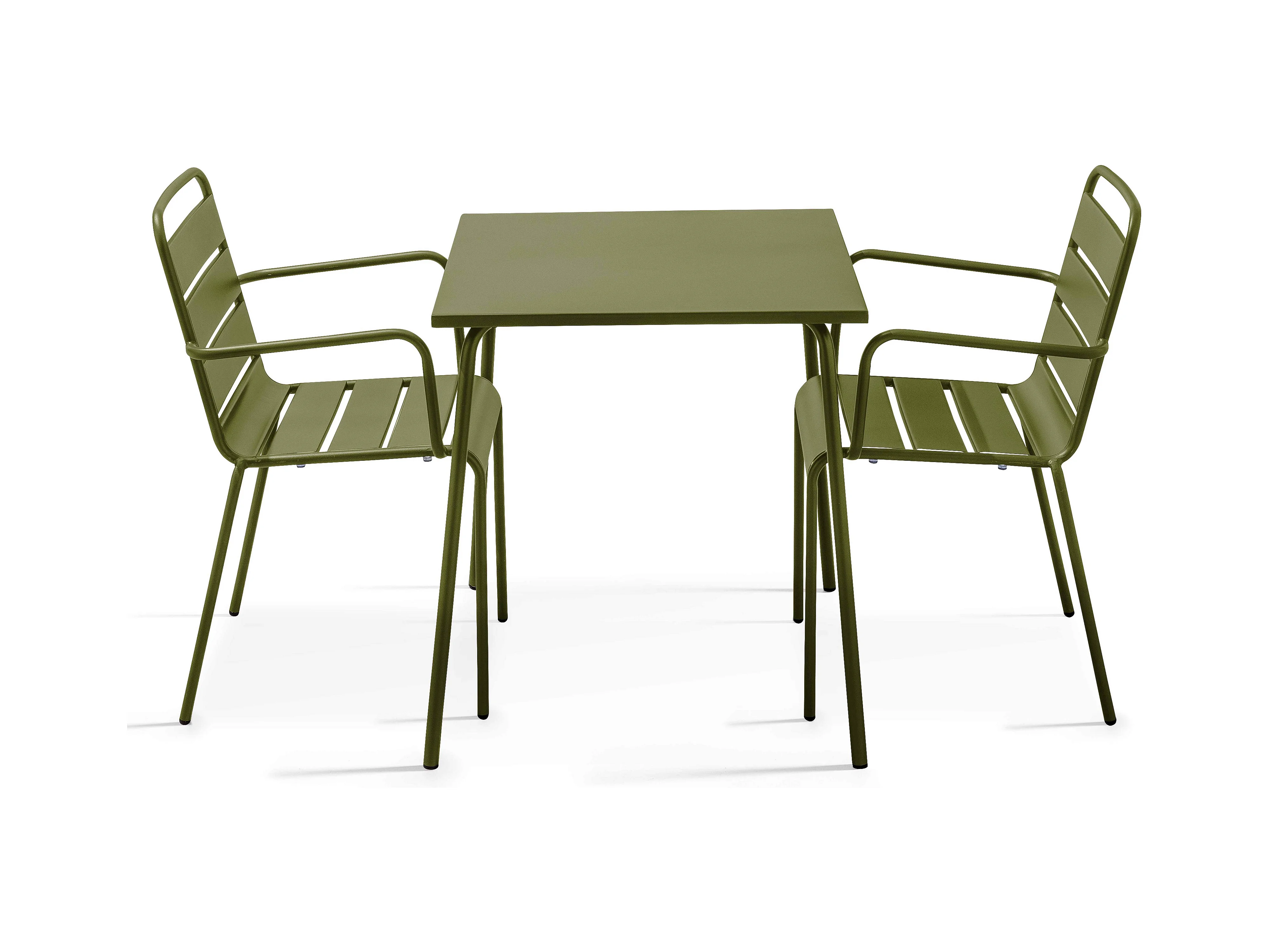 Ensemble table de jardin carrée et 2 fauteuils acier Vert Kaki - Palavas