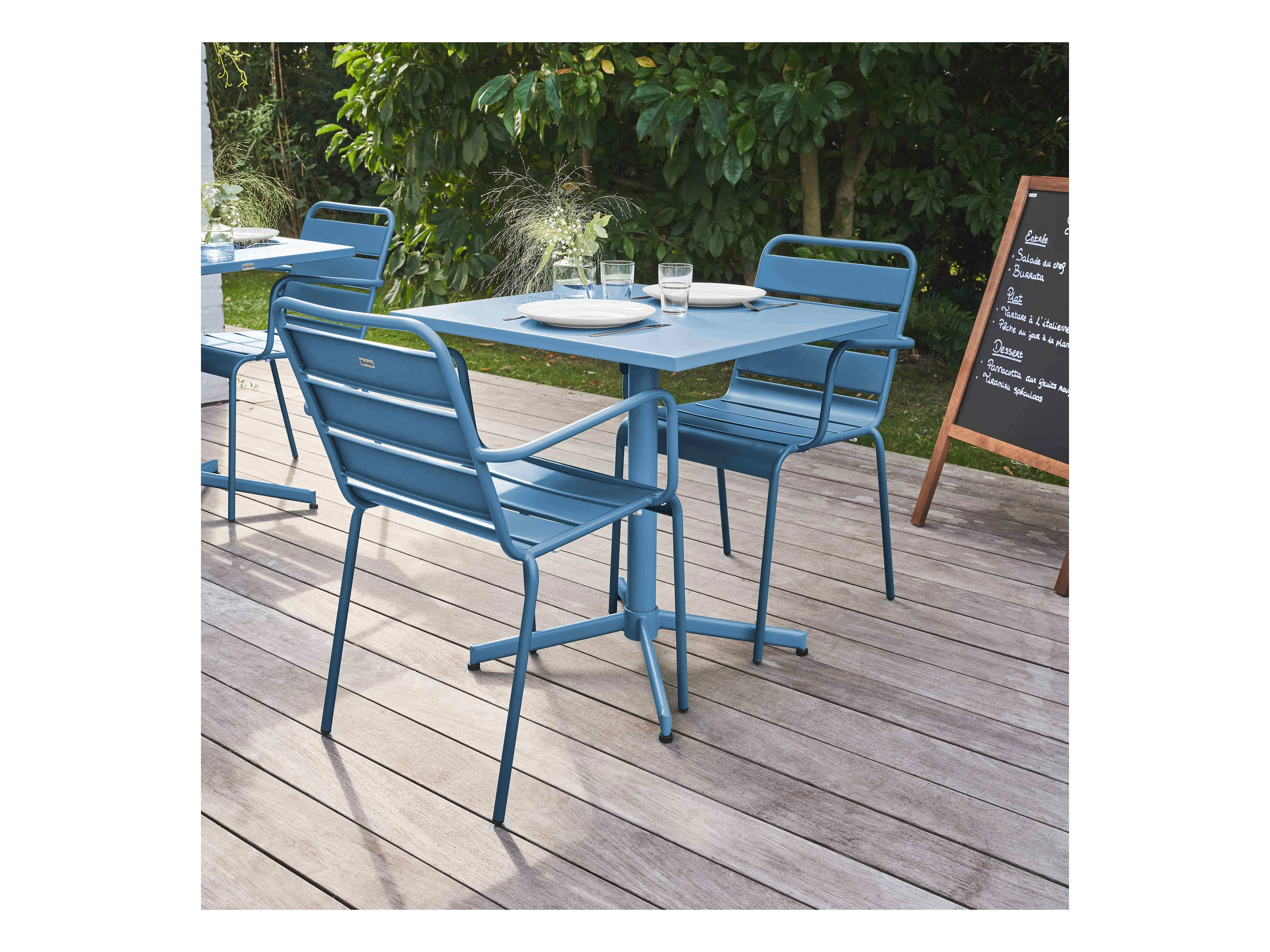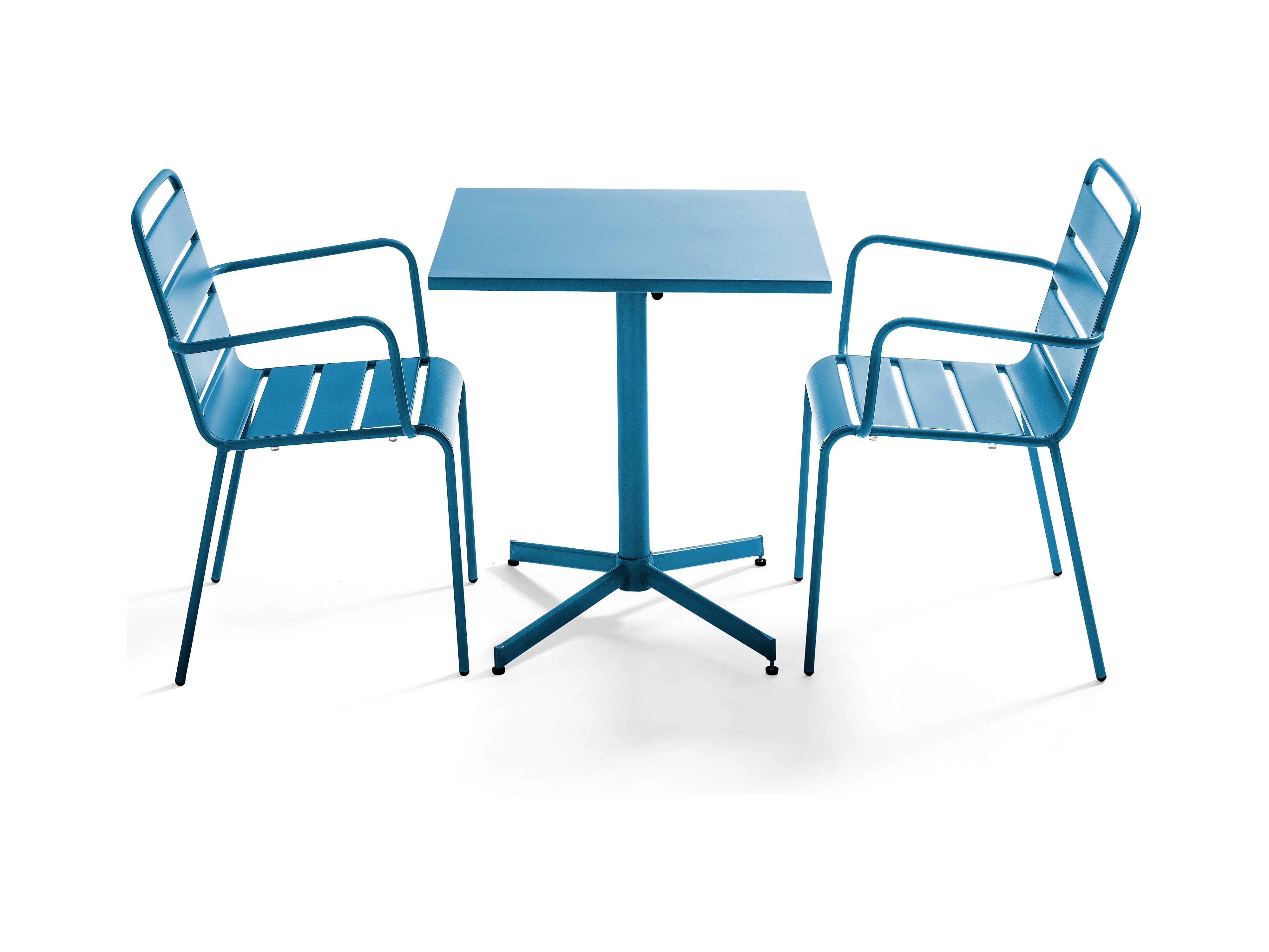 Ensemble table de jardin carrée et 2 chaises métal bleu pacific - Palavas