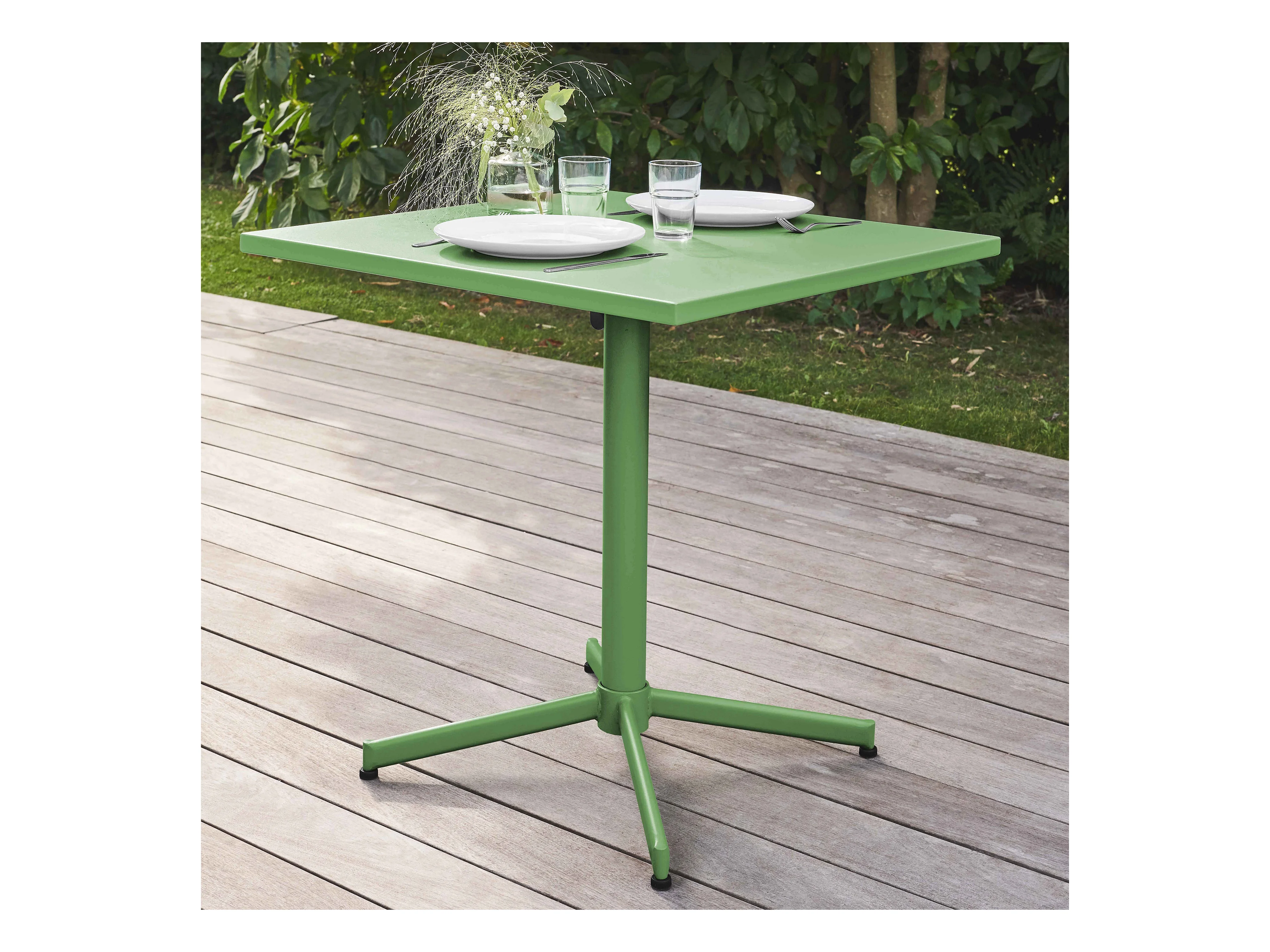Ensemble table de jardin carrée et 2 chaises métal vert cactus - Palavas