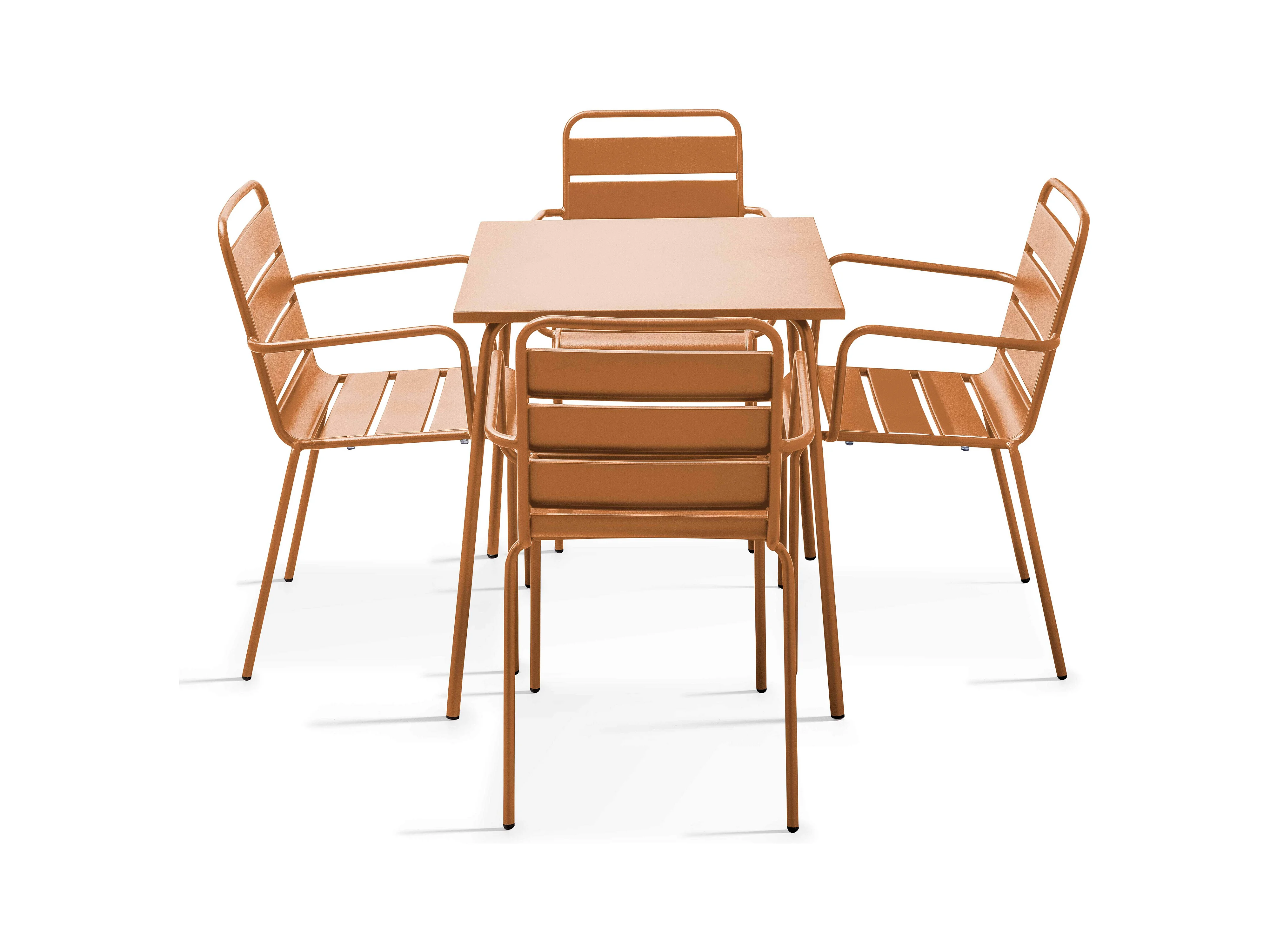 Ensemble table de jardin carrée et 4 fauteuils acier Caramel - Palavas