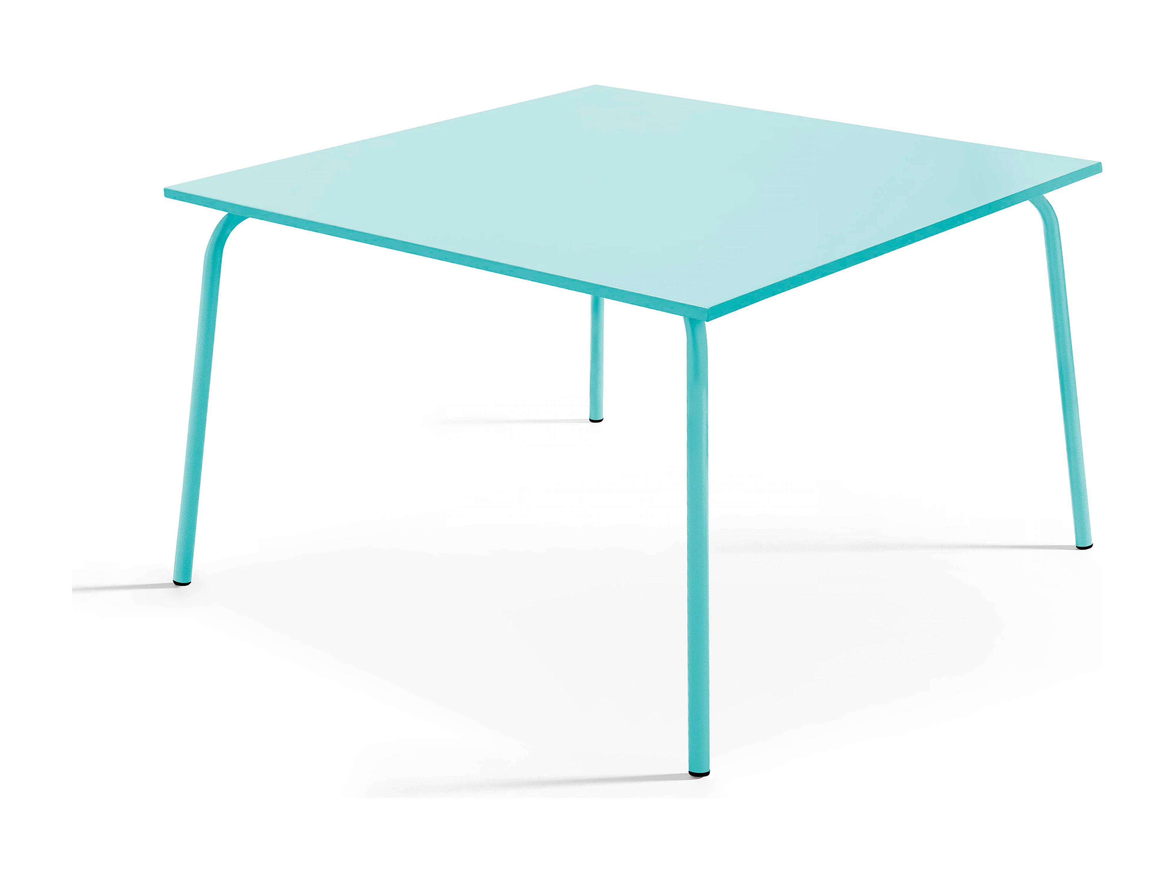Ensemble table de jardin carrée et 8 fauteuils en métal turquoise - Palavas