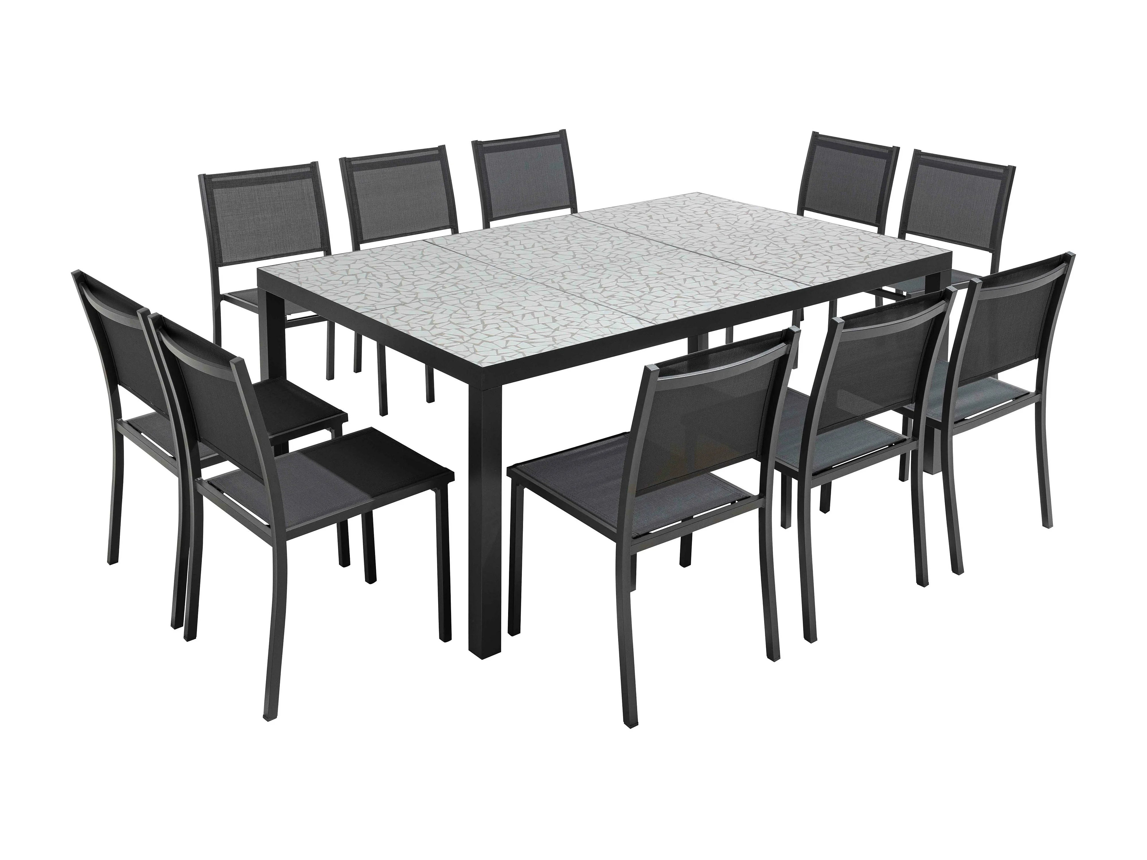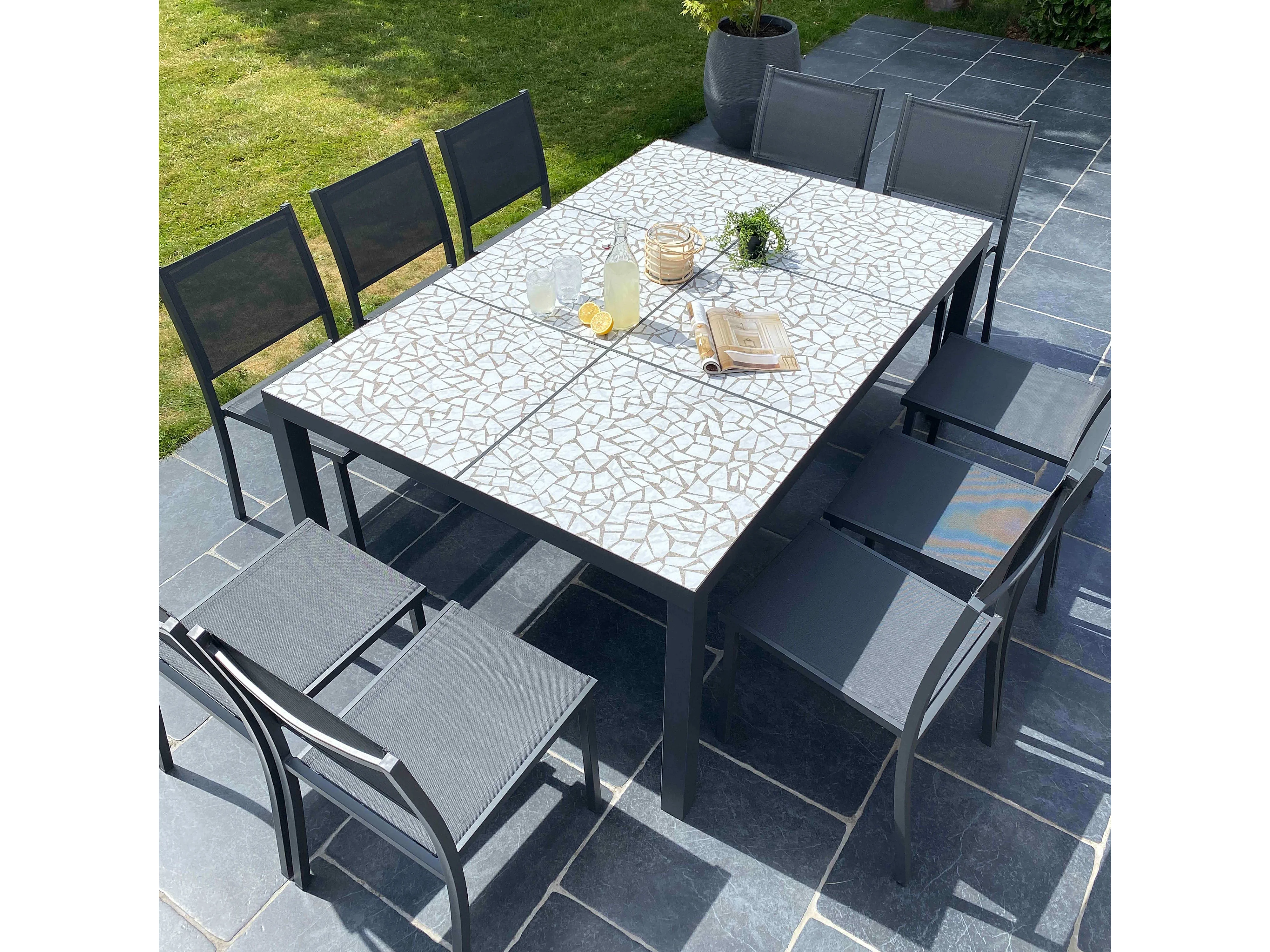 Ensemble table de jardin en céramique effet mozaic avec 10 chaises - Tivoli