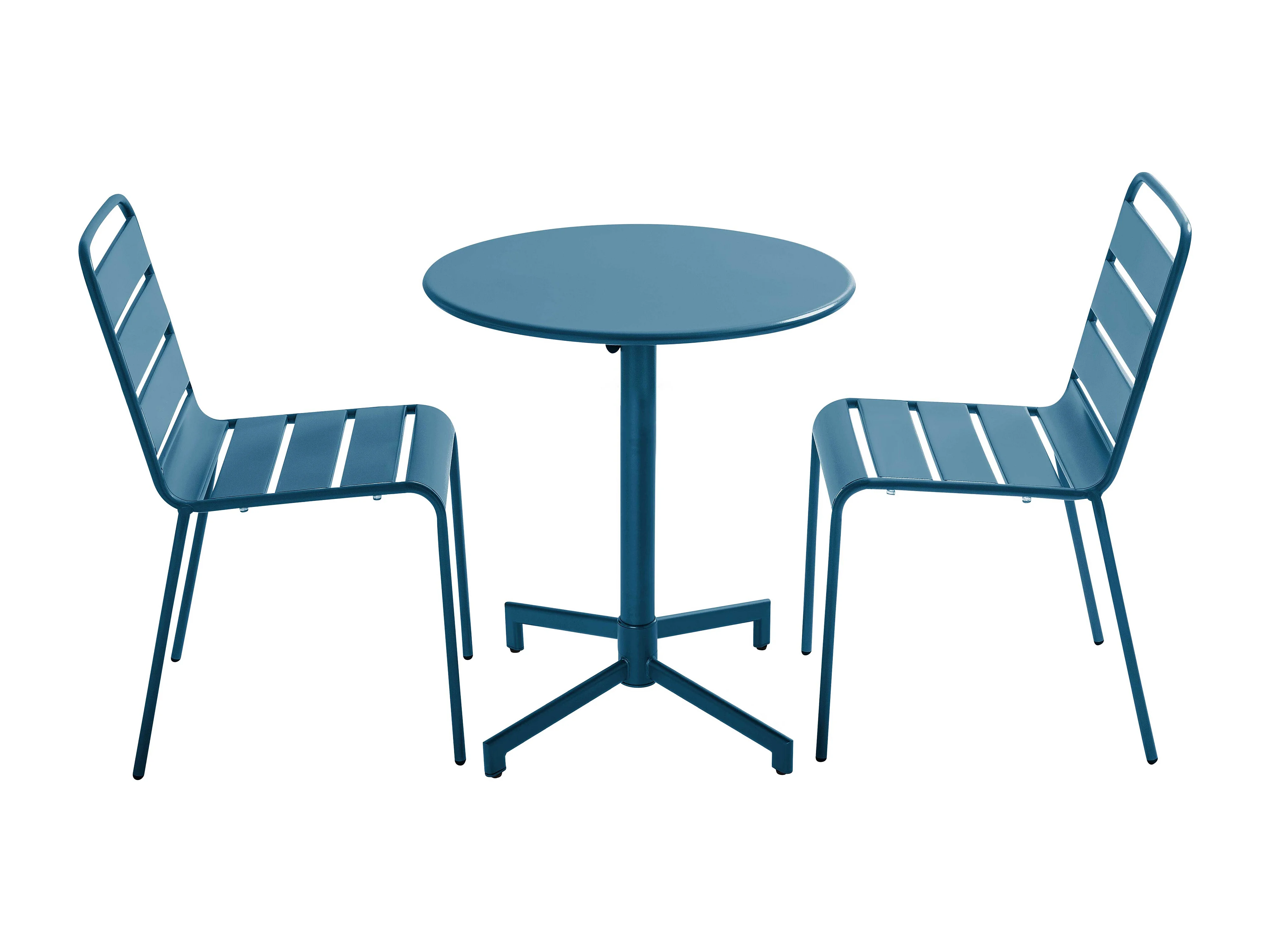 Ensemble table de jardin et 2 chaises en métal bleu pacific - Palavas