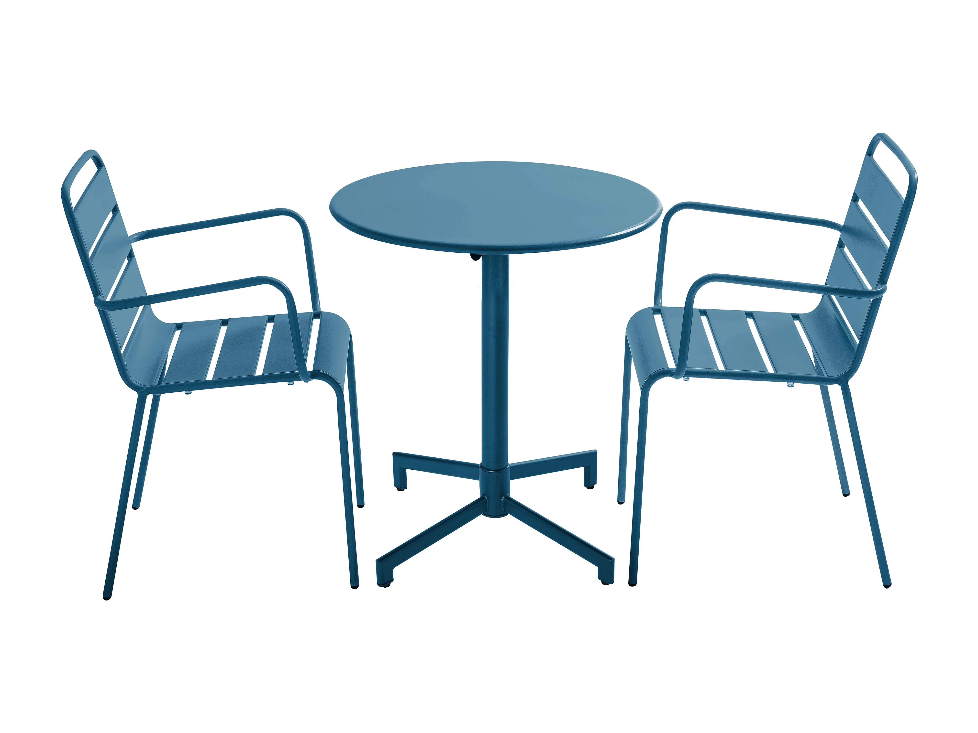Ensemble table de jardin et 2 fauteuils en métal bleu pacific - Palavas