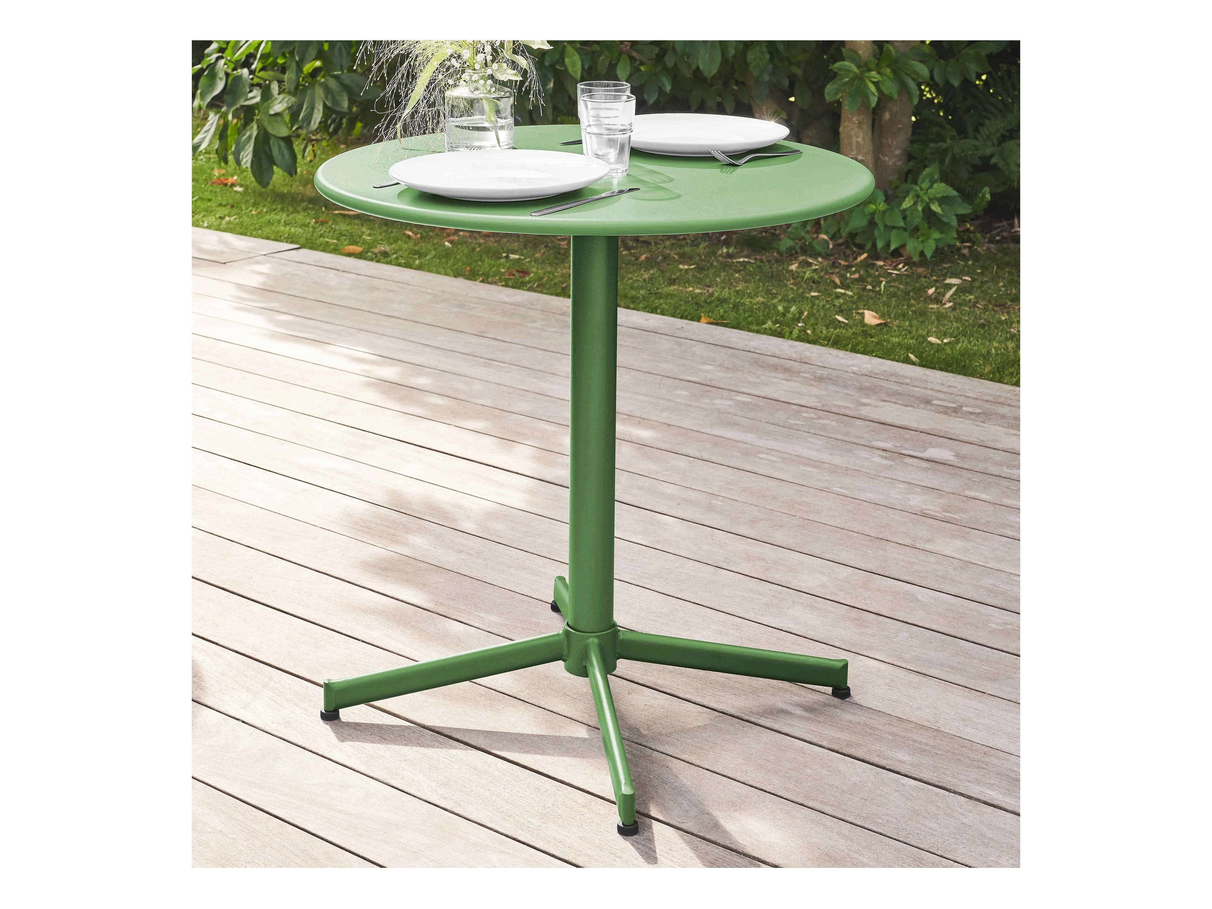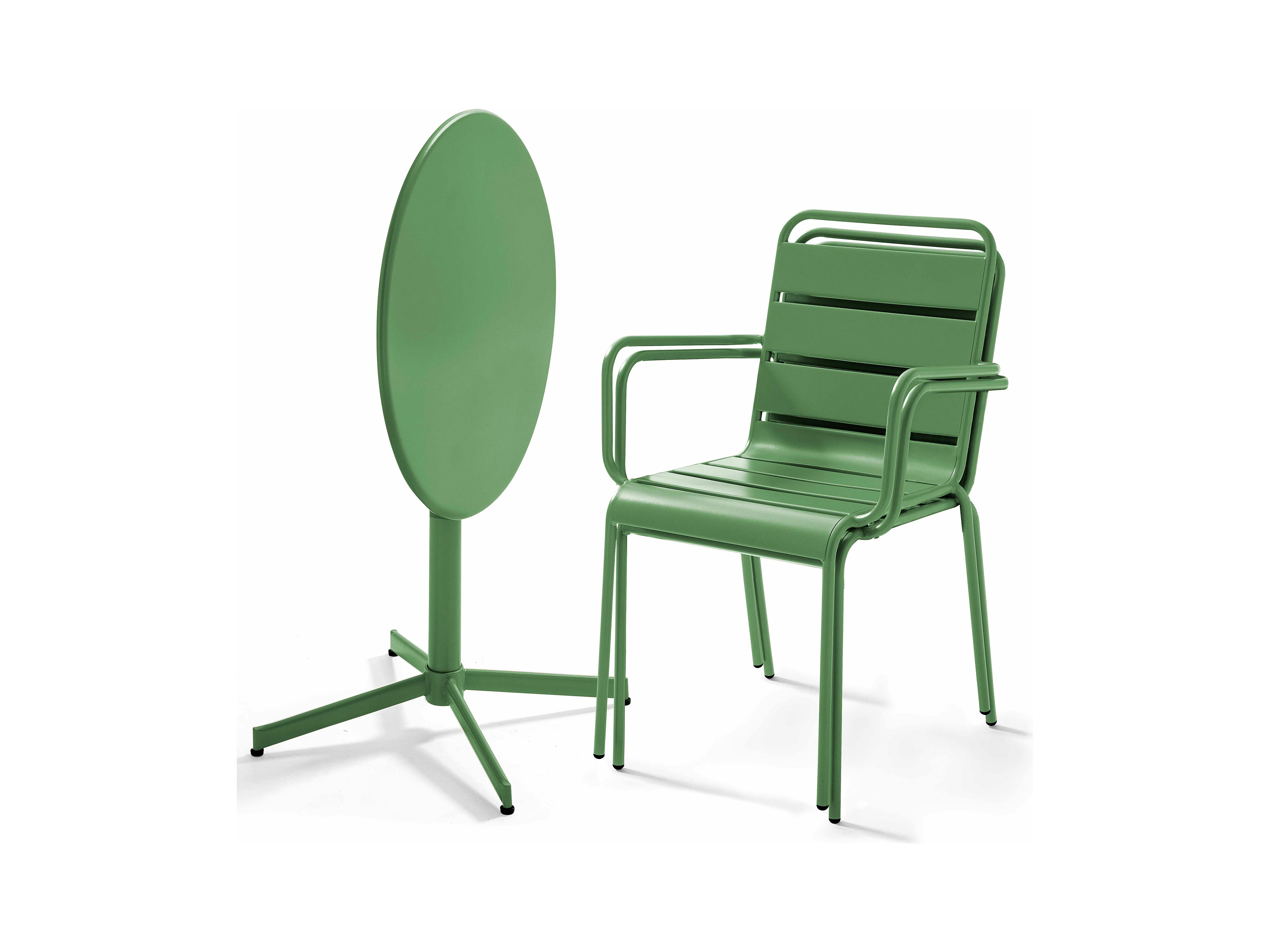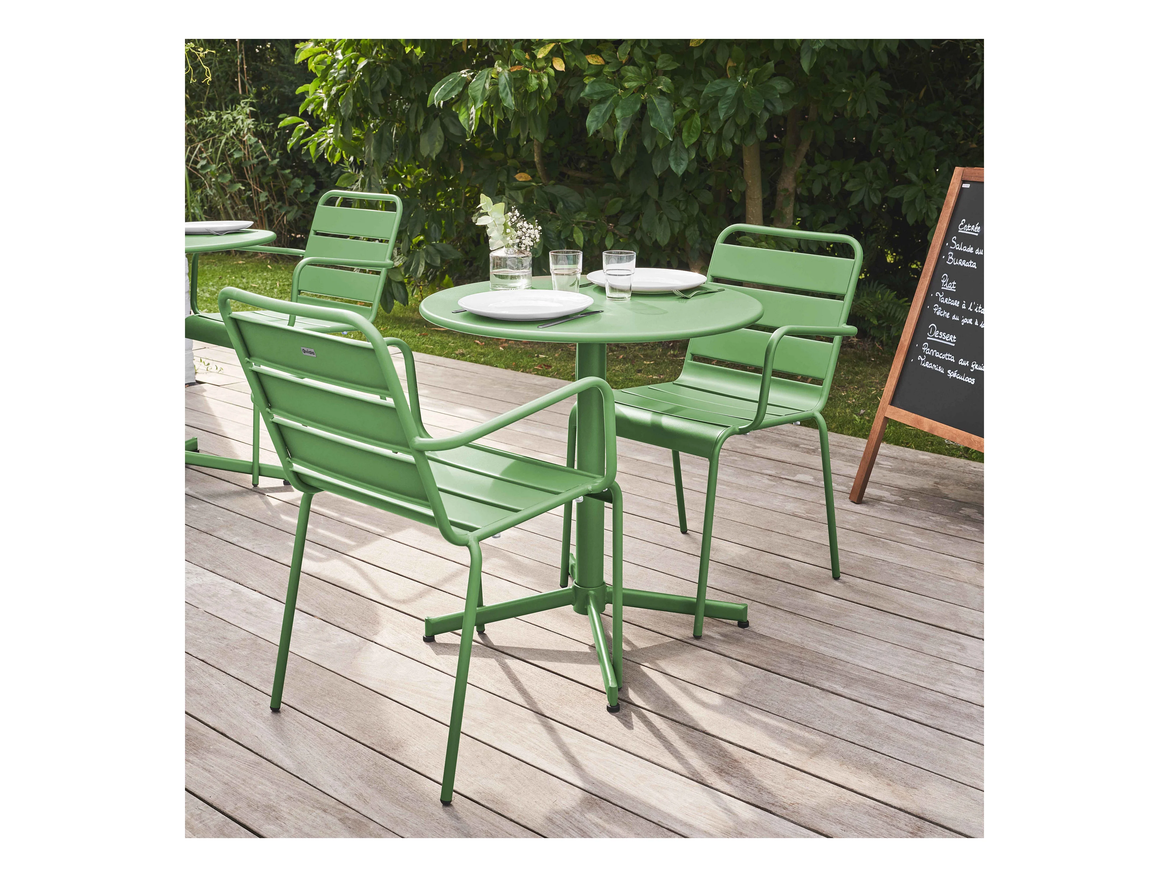 Ensemble table de jardin ronde et 2 chaises métal vert cactus - Palavas