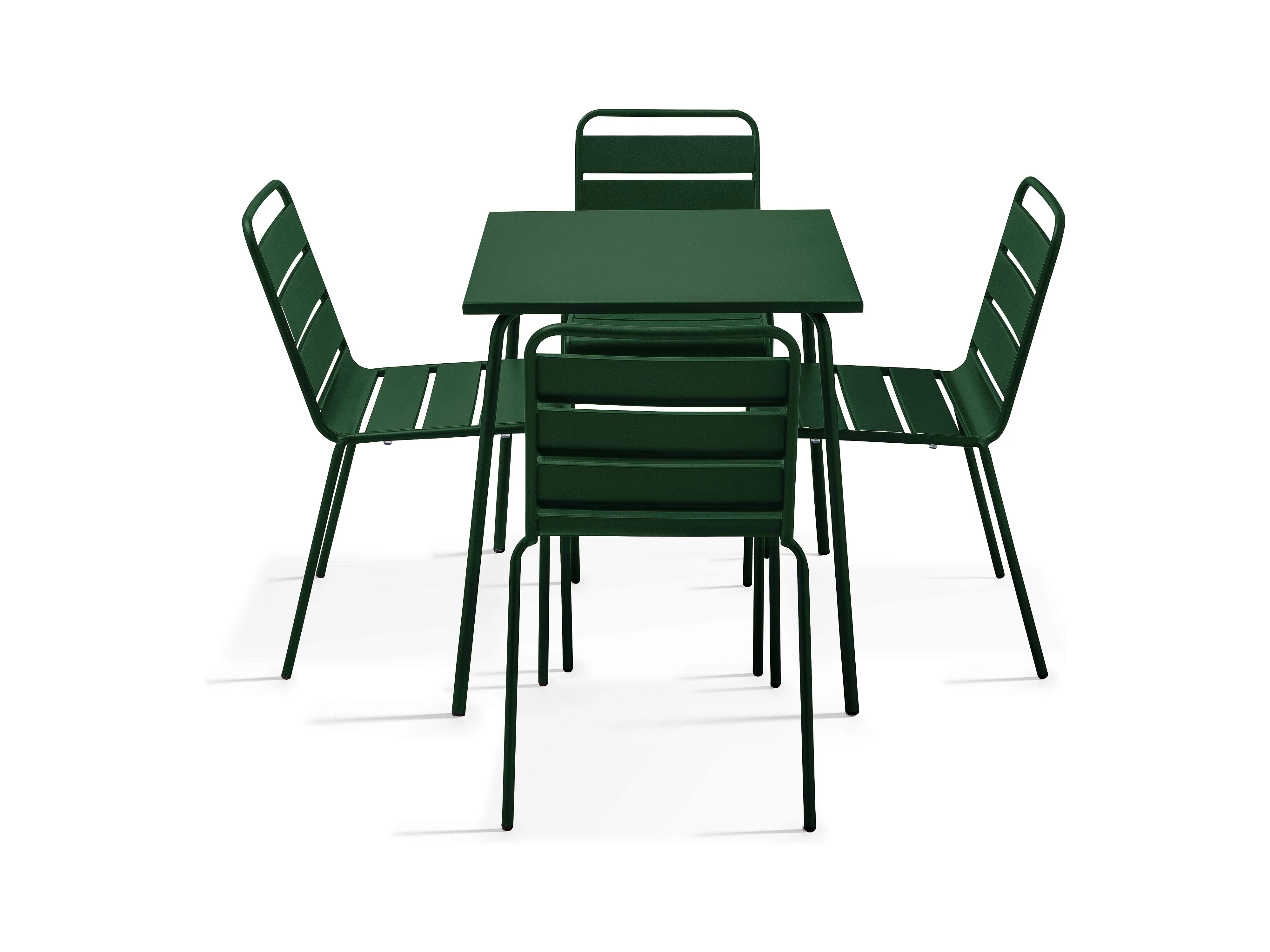 Ensemble table de jardin et 4 chaises en métal Vert forêt - Palavas