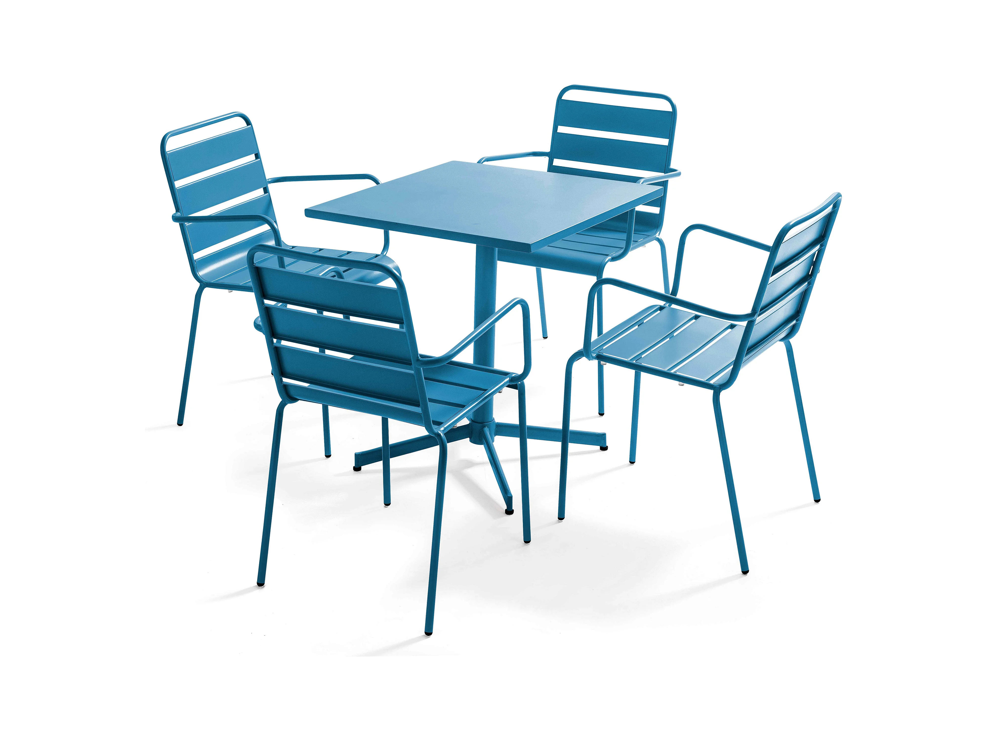 Ensemble table de jardin et 4 fauteuils en métal bleu pacific - Palavas