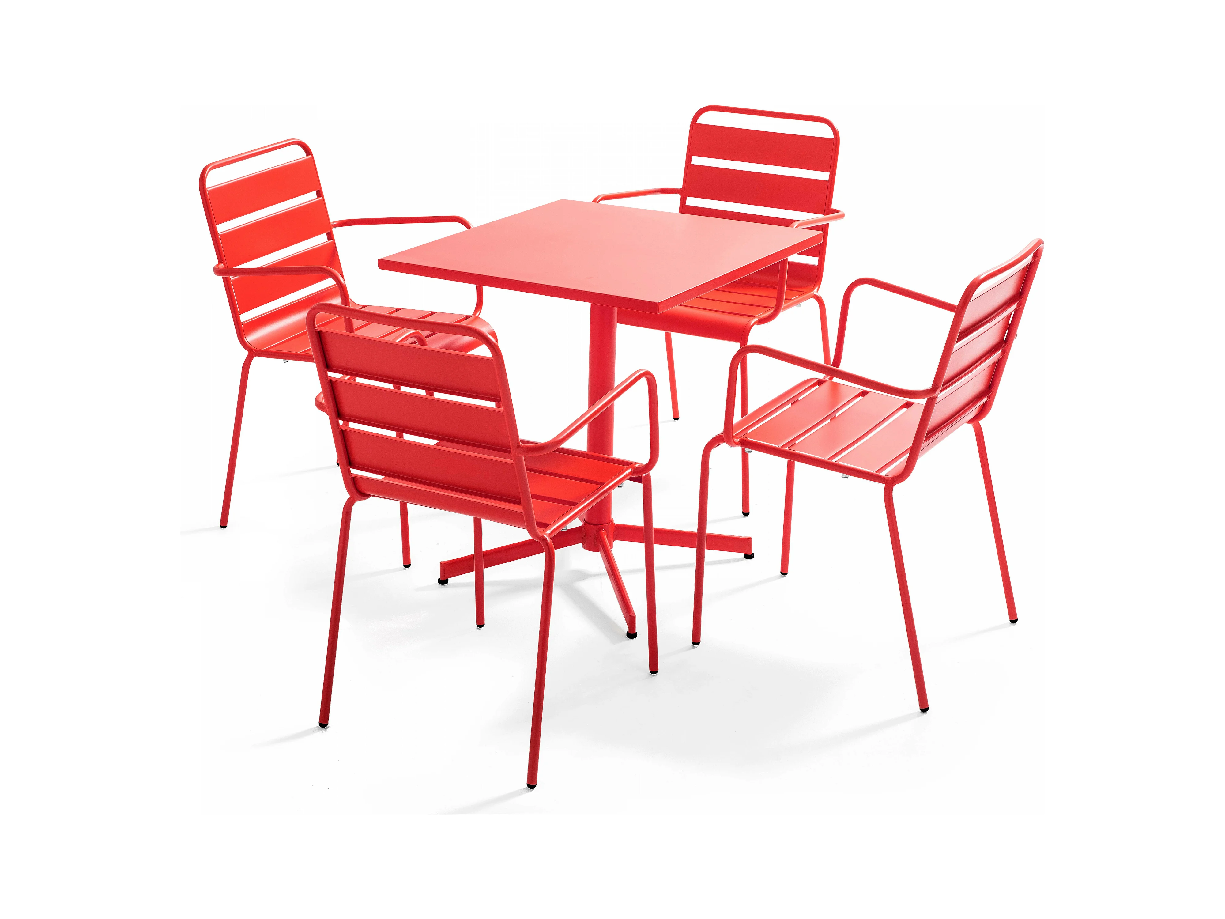 Ensemble table de jardin carrée et 4 chaises rouge - Palavas