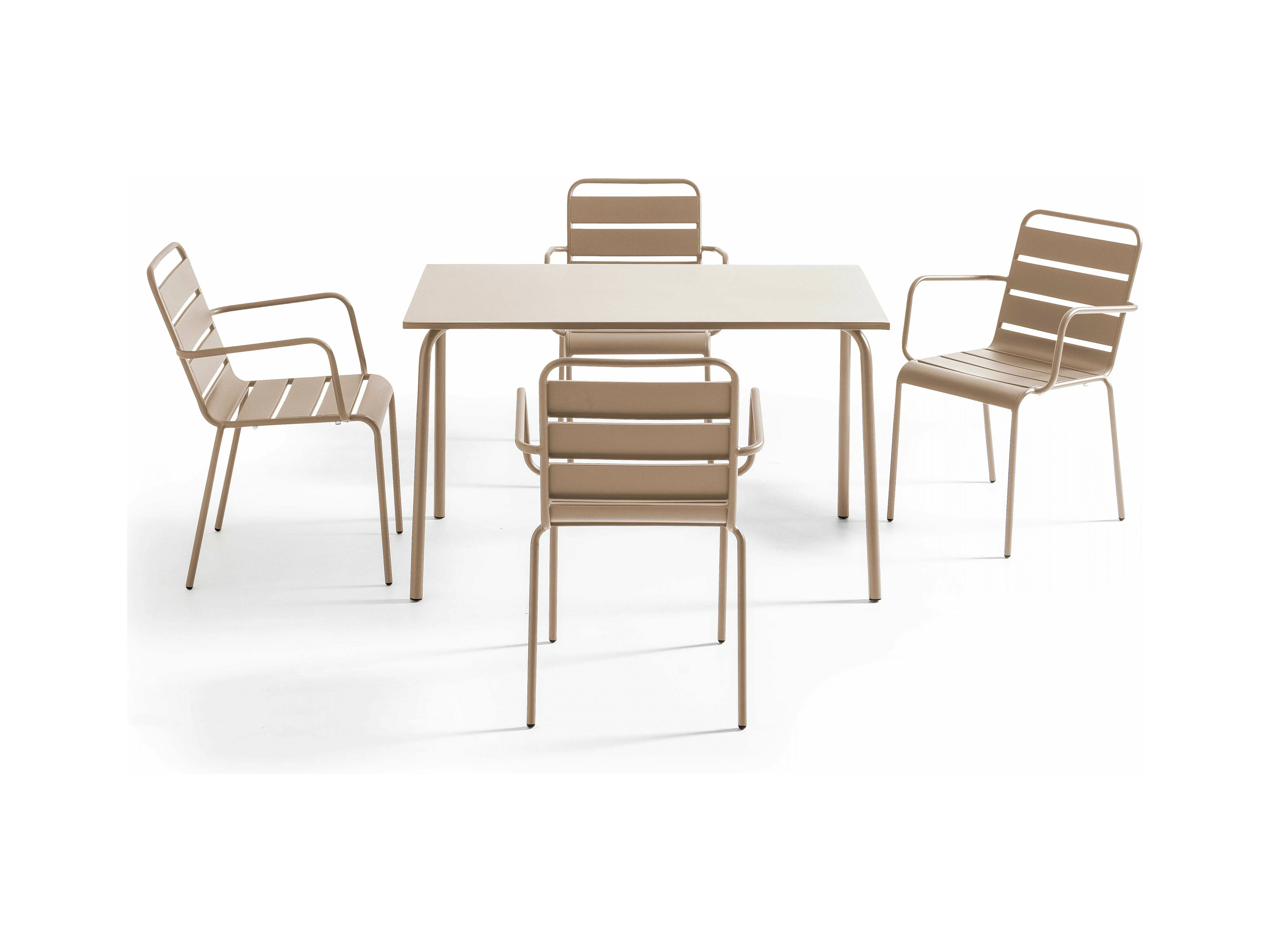Ensemble table de jardin et 4 fauteuils en métal taupe - Palavas