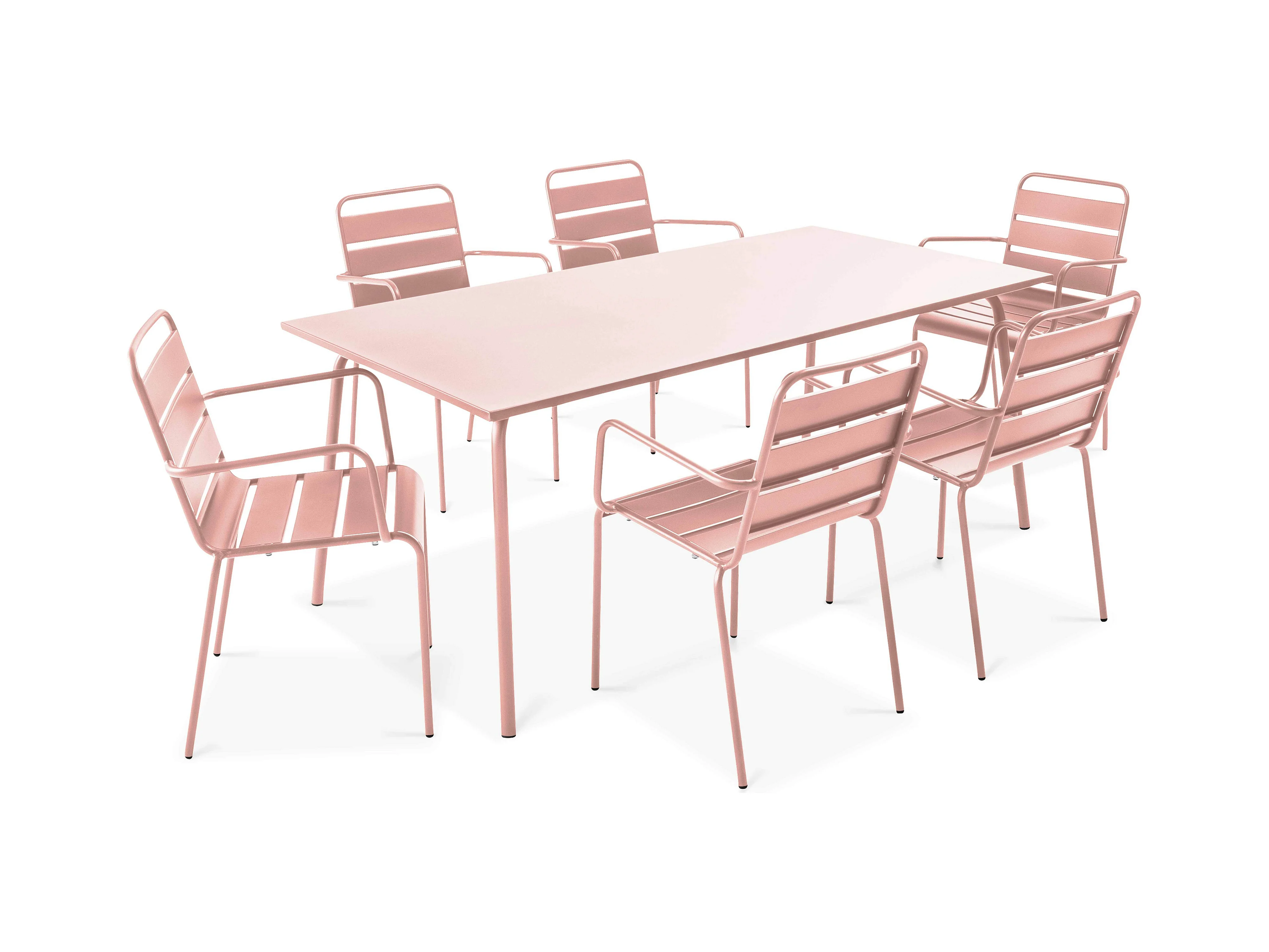 Ensemble table de jardin et 6 chaises en métal rose poudré - Palavas