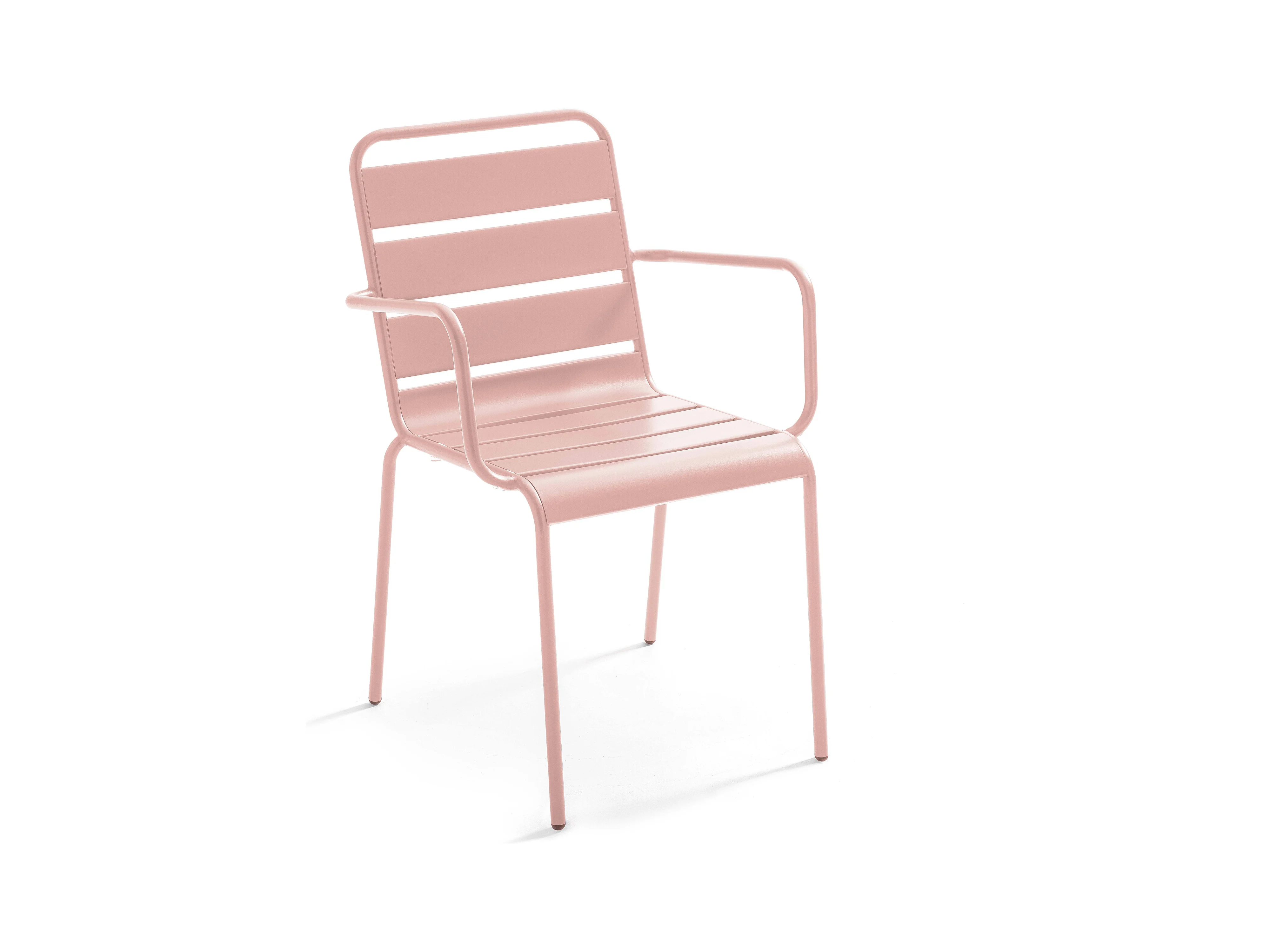 Ensemble table de jardin et 6 fauteuils en métal Rose poudré - Palavas
