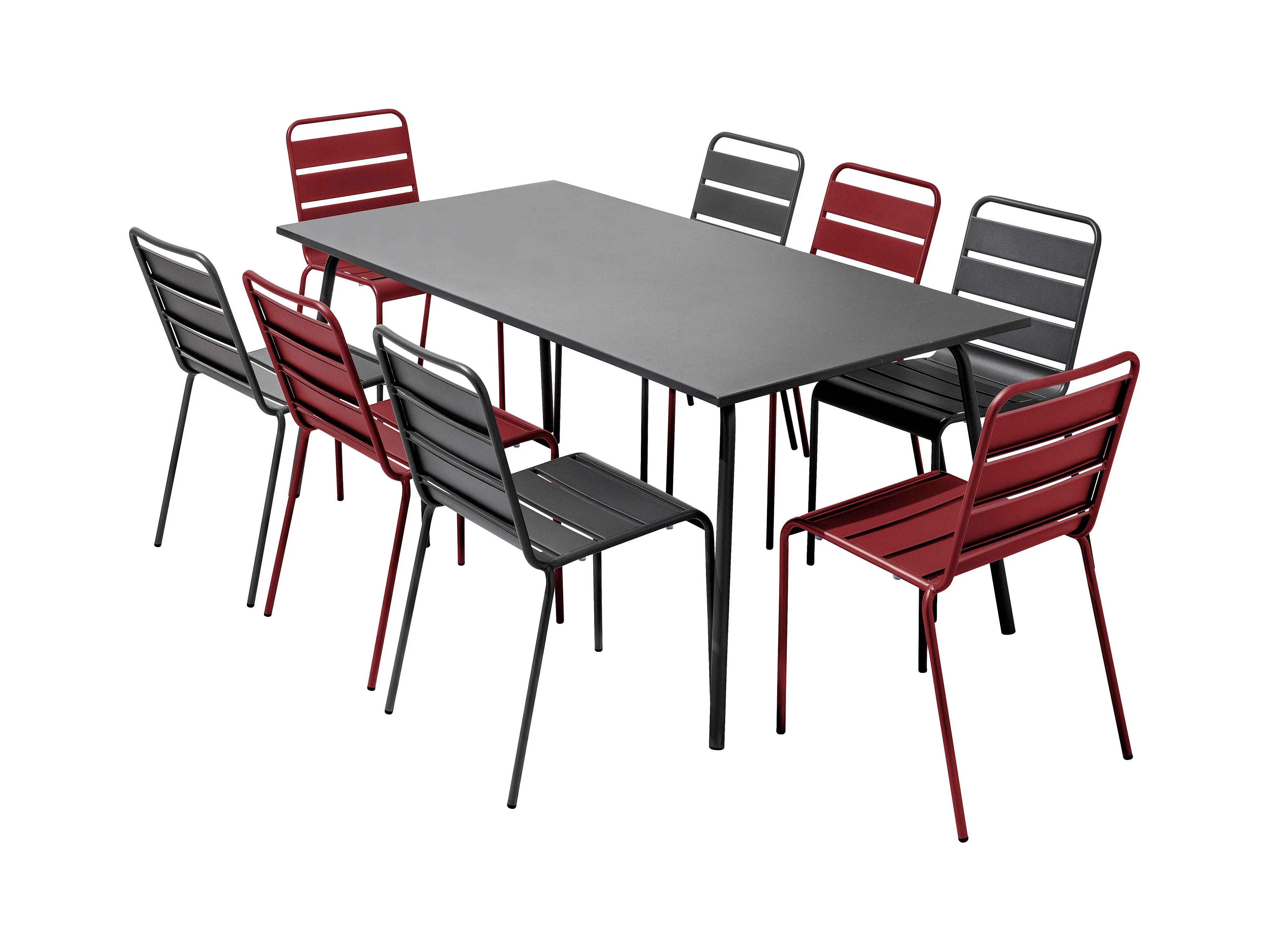 Ensemble table de jardin et 8 chaises en métal rouge - Palavas
