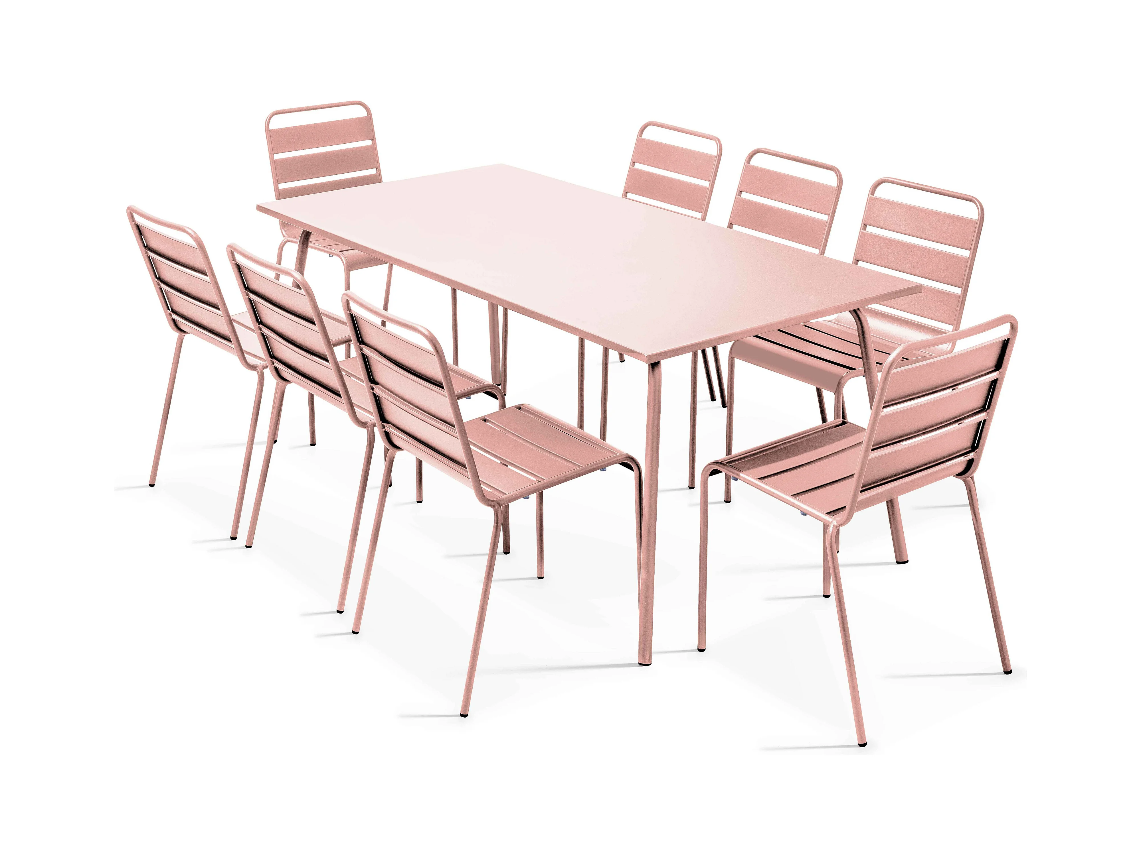 Ensemble table de jardin et 8 chaises en métal Rose poudré - Palavas