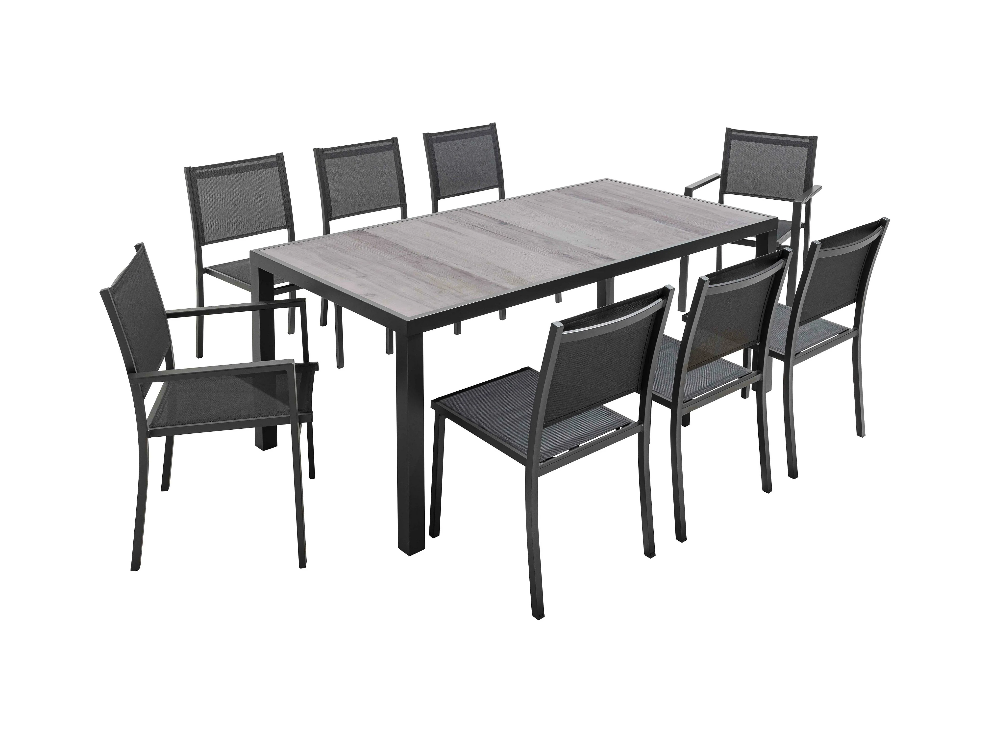 Ensemble table de jardin et 8 fauteuils effet bois grisé - Tivoli