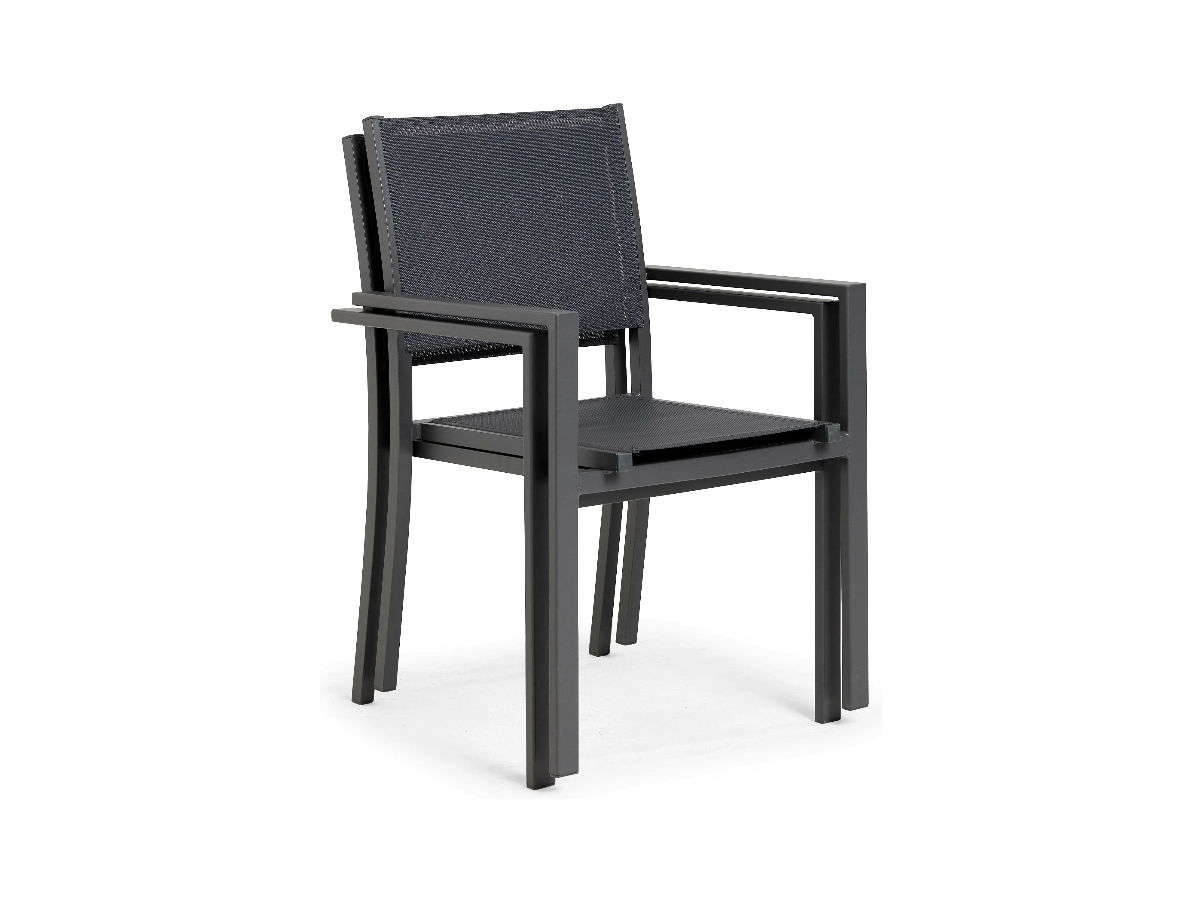 Salon de jardin BARI en textilène noir 8 places - aluminium gris - HAPPY GARDEN