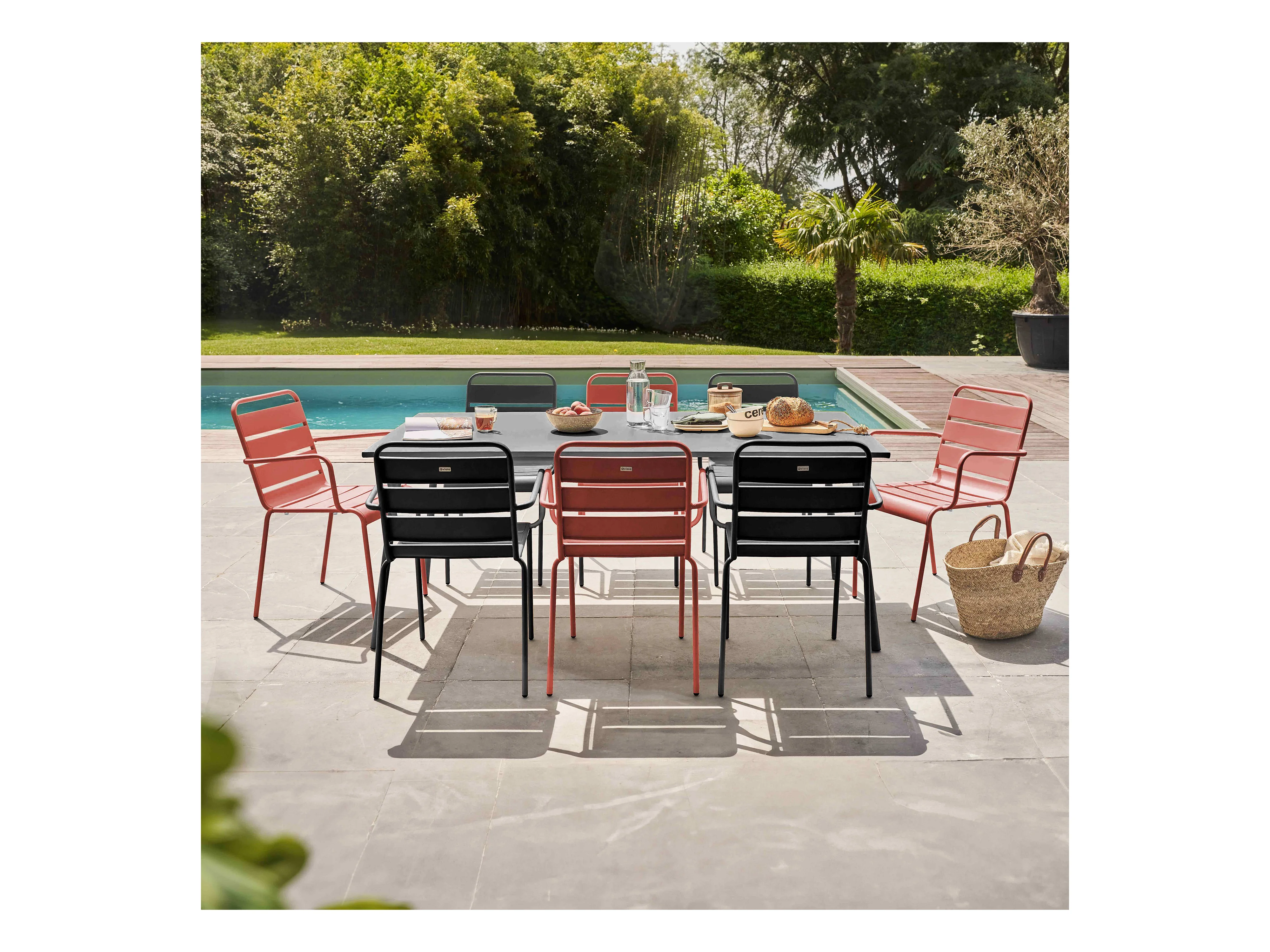 Ensemble table de jardin et 8 chaises en métal gris et argile - Palavas