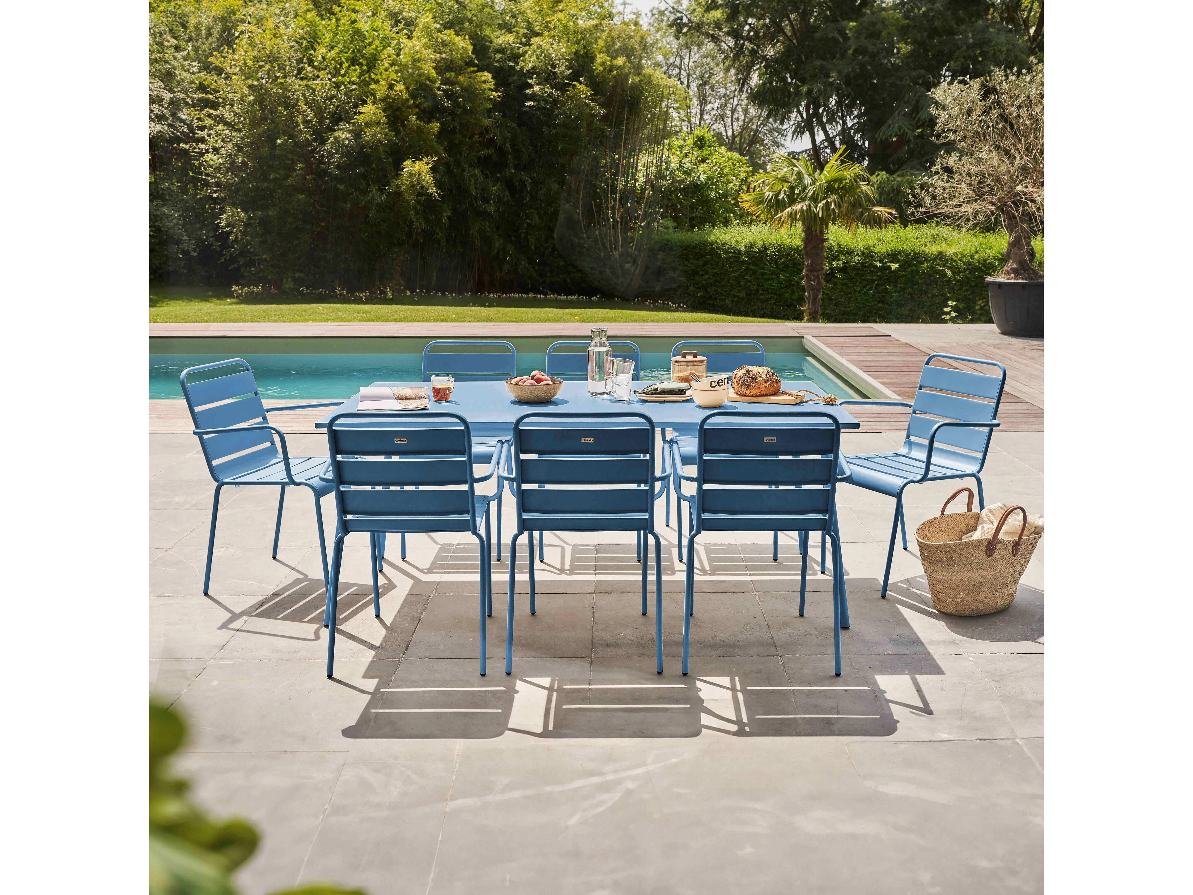 Ensemble table de jardin et 8 fauteuils en métal bleu pacific - Palavas