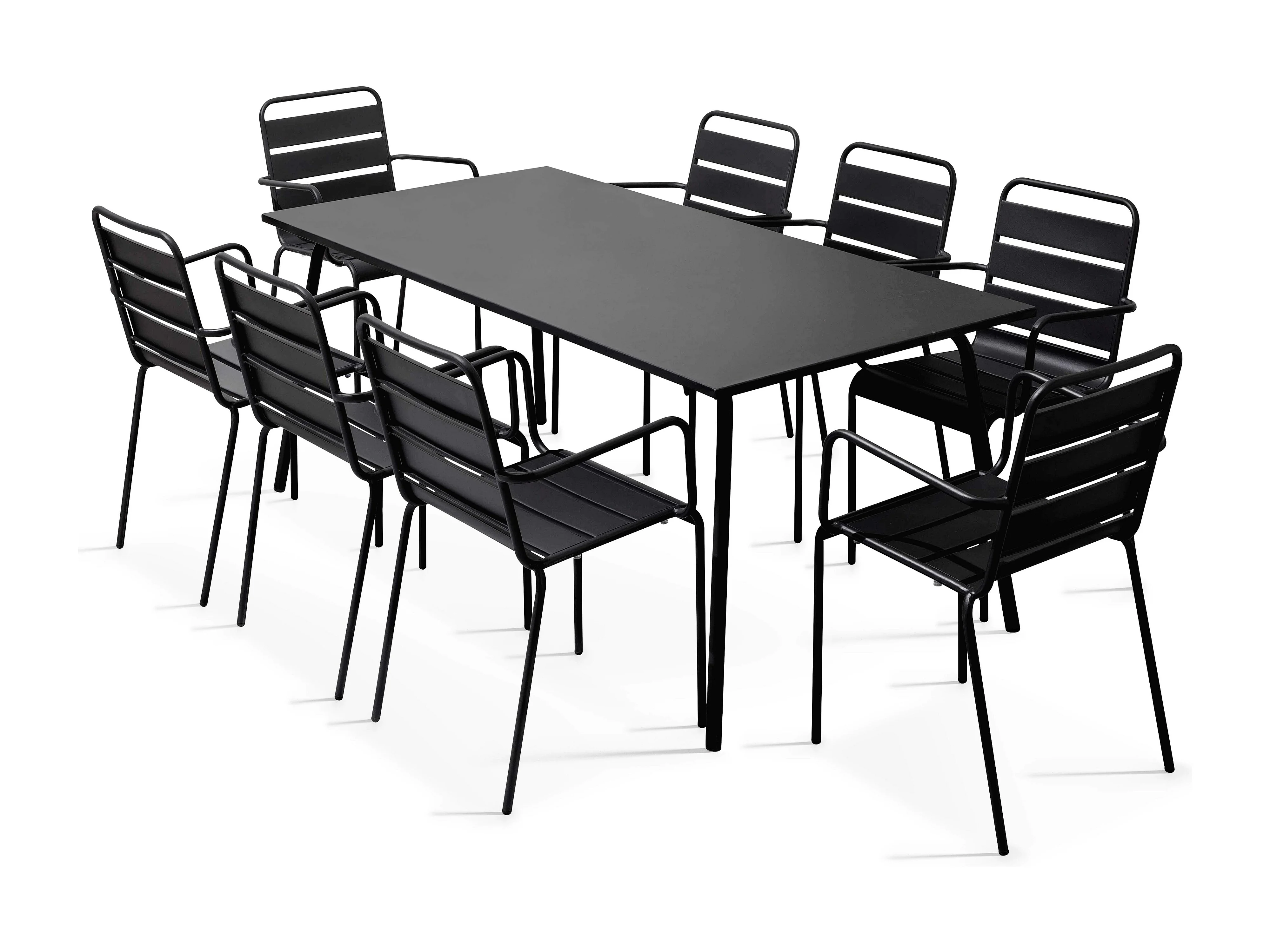 Ensemble table de Jardin et 8 fauteuils en métal noir - Palavas
