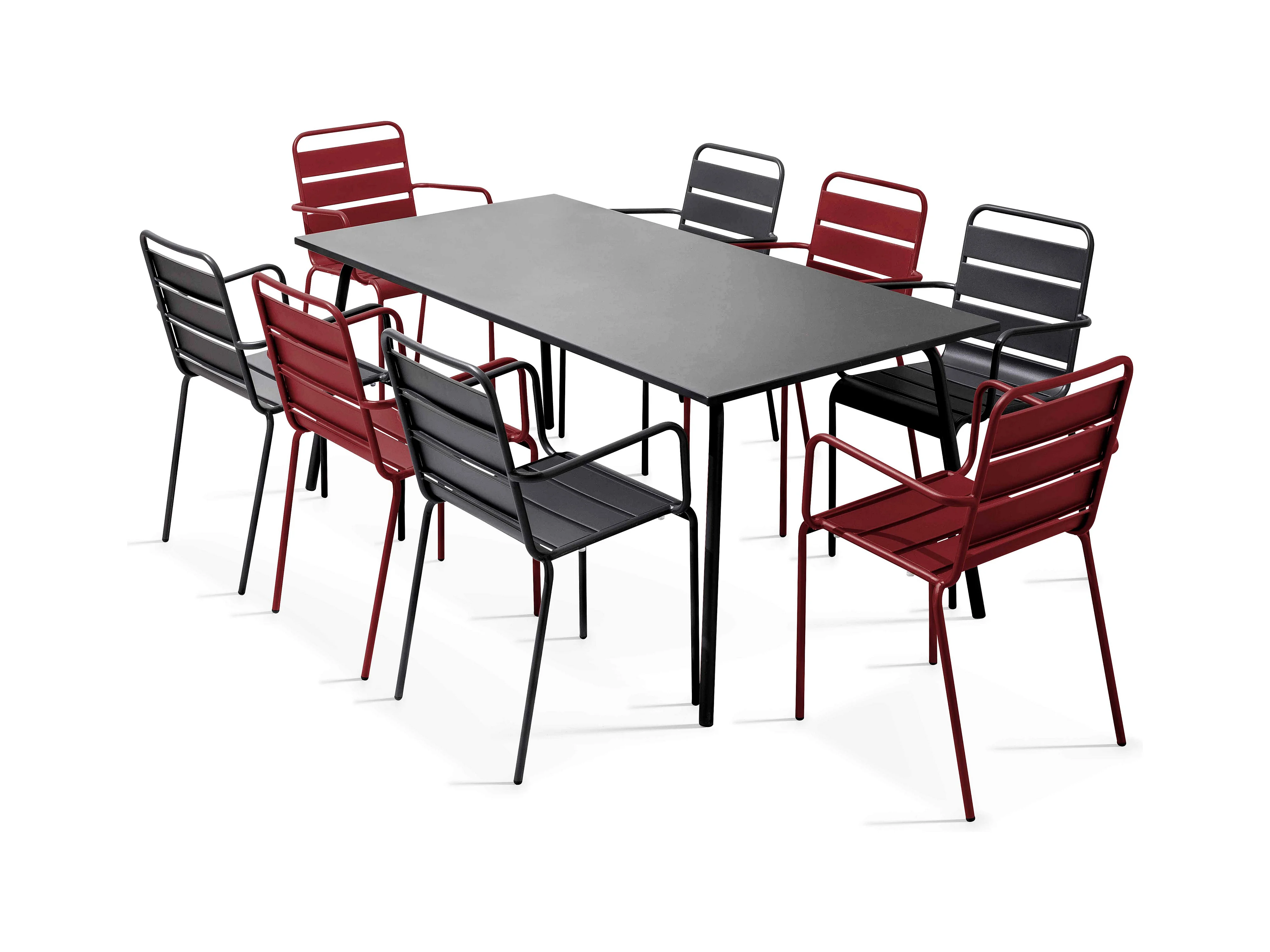 Ensemble table de jardin et 8 chaises en métal gris et rouge - Palavas