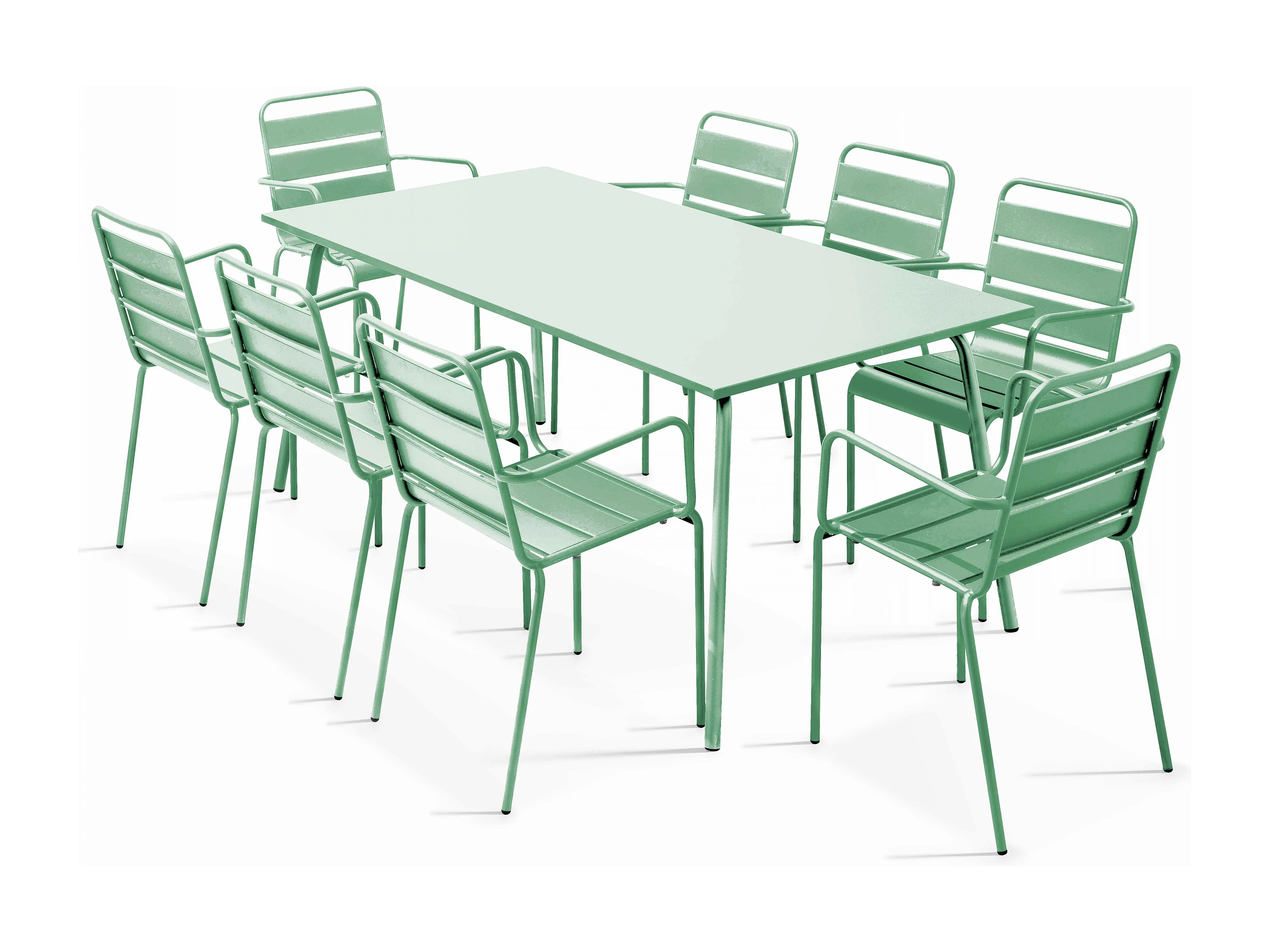 Ensemble table de jardin et 8 fauteuils en métal vert sauge - Palavas