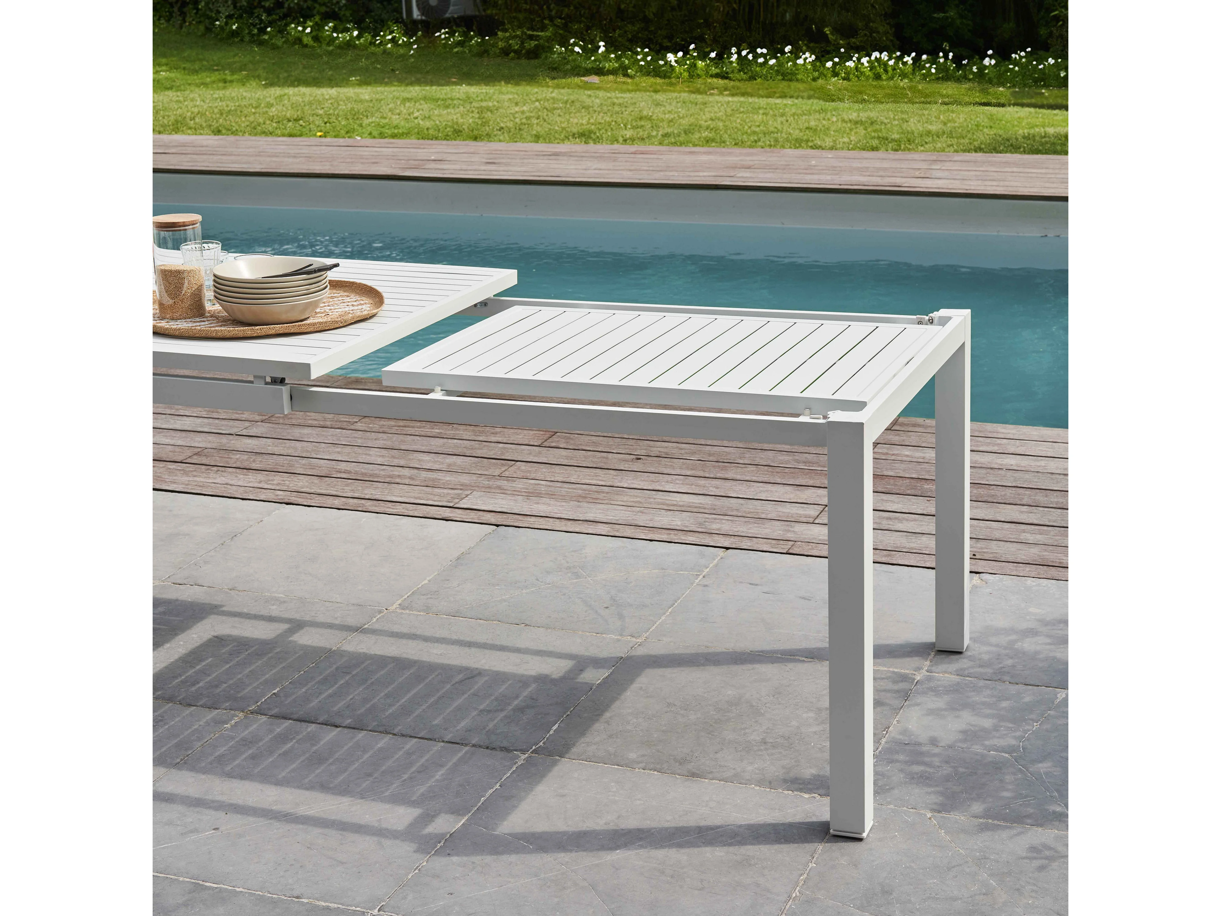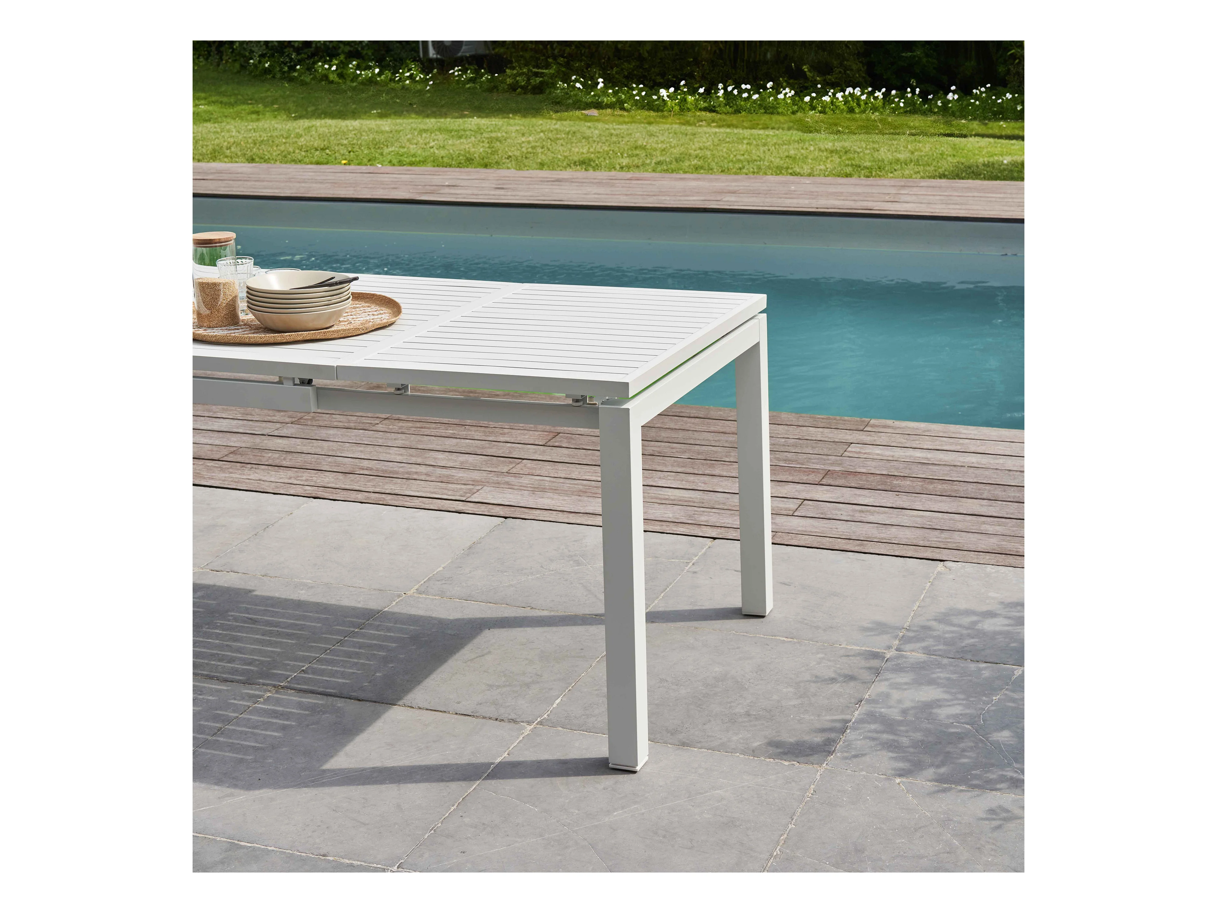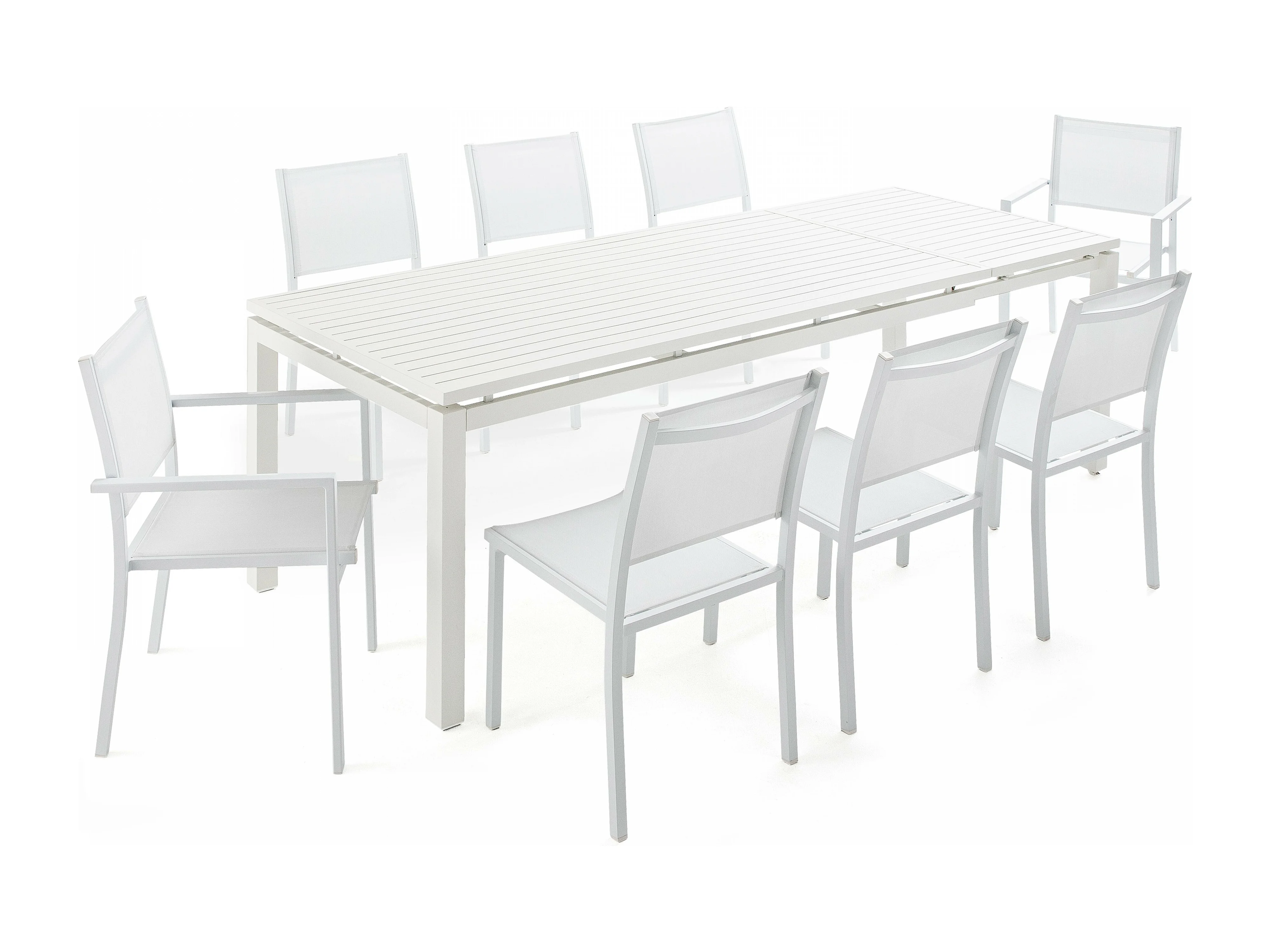 Ensemble table de jardin extensible en aluminium et 8 assises blanc