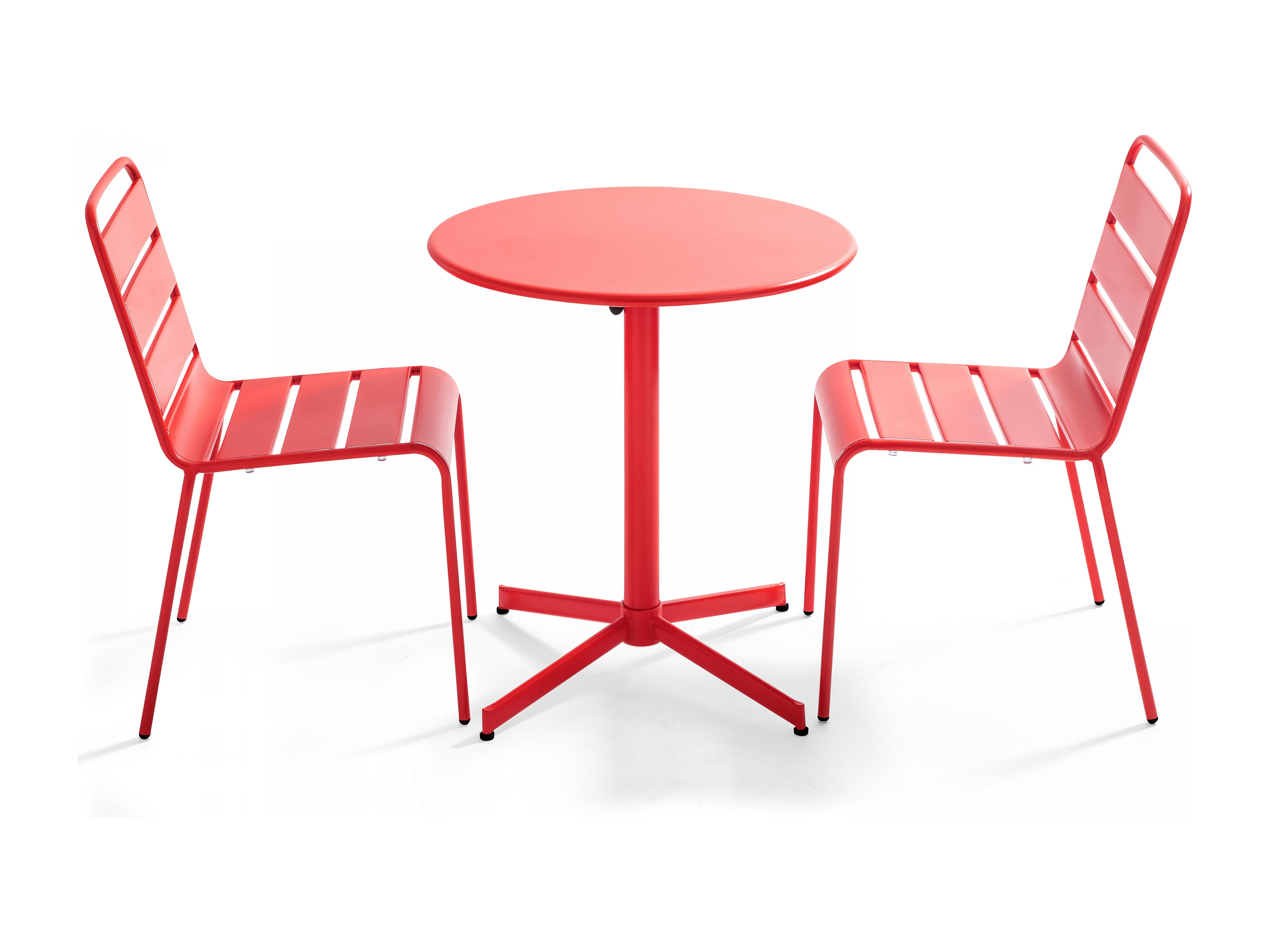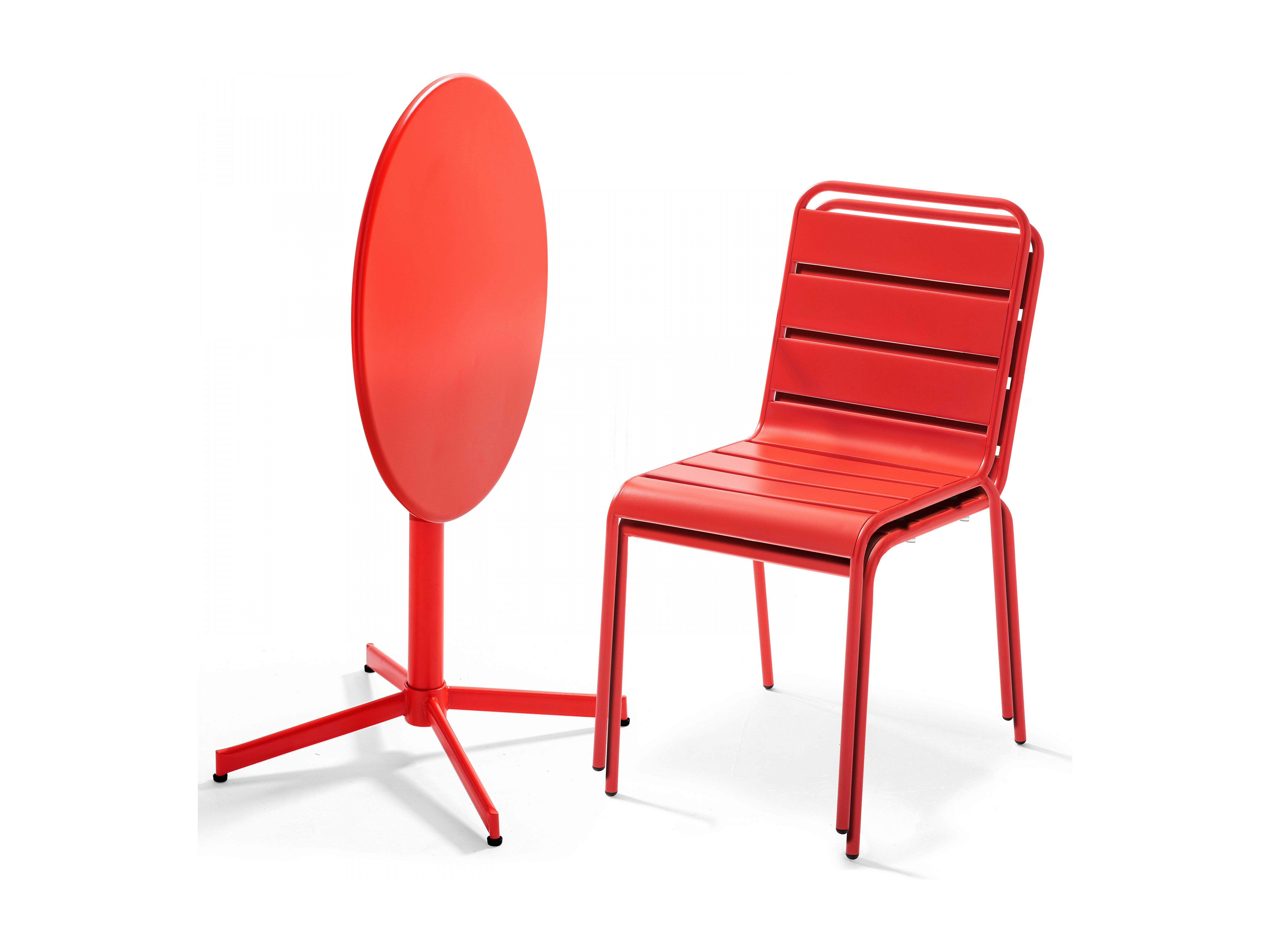 Ensemble table de jardin ronde et 2 chaises métal rouge - Palavas