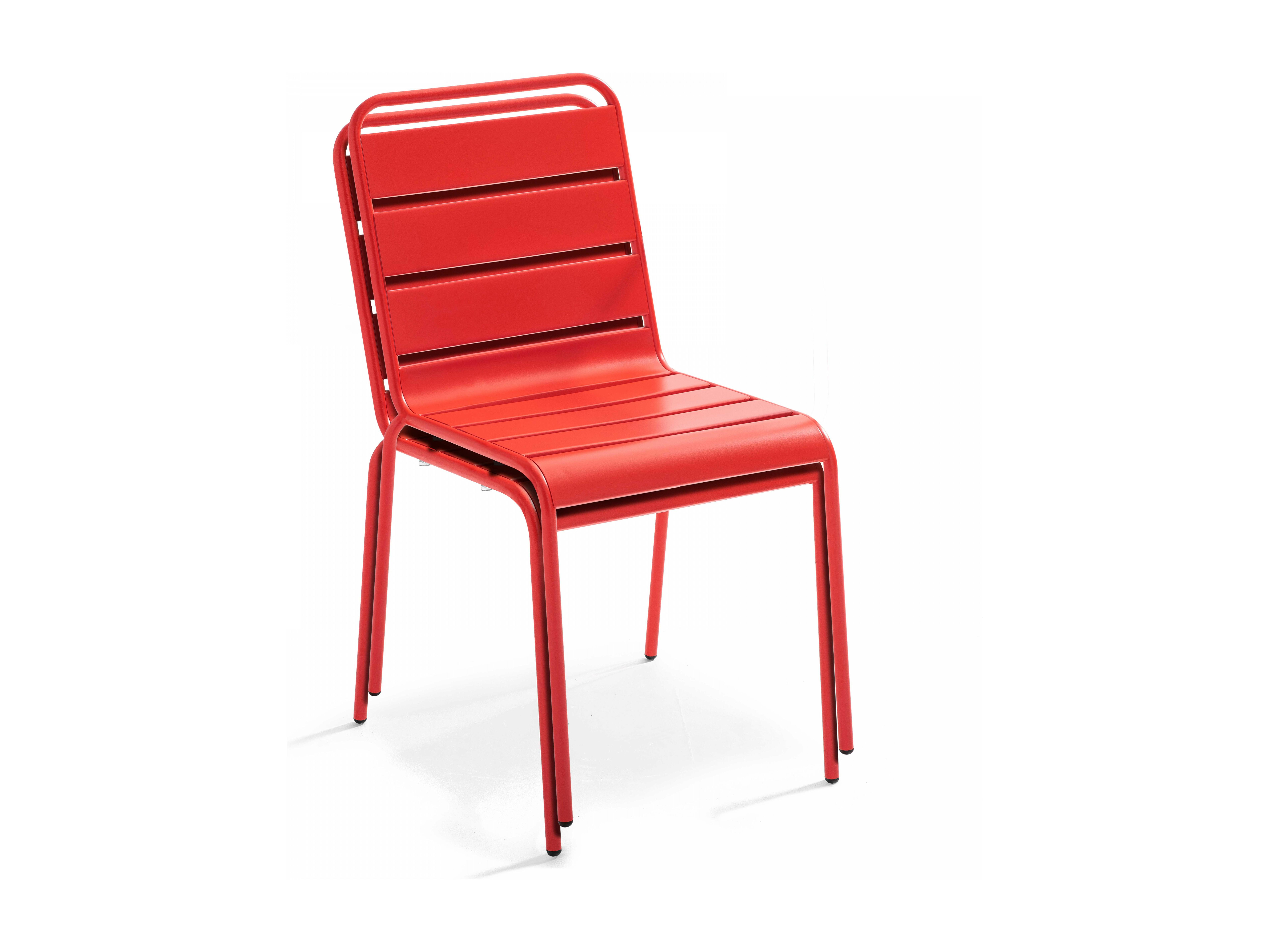 Ensemble table de jardin ronde et 4 chaises rouge - Palavas