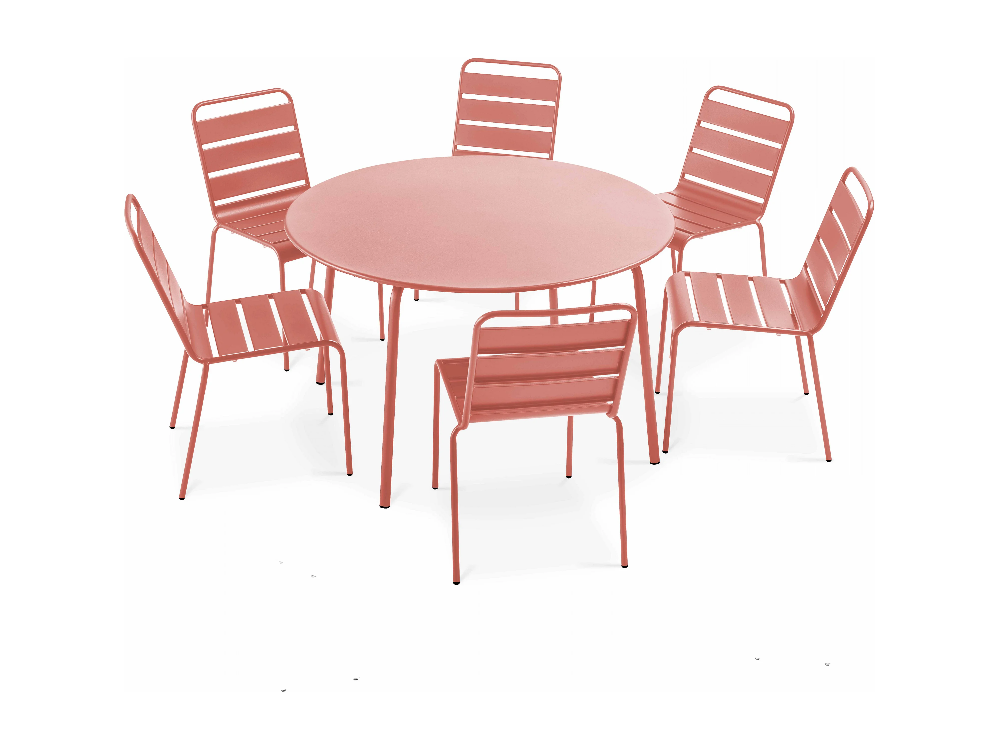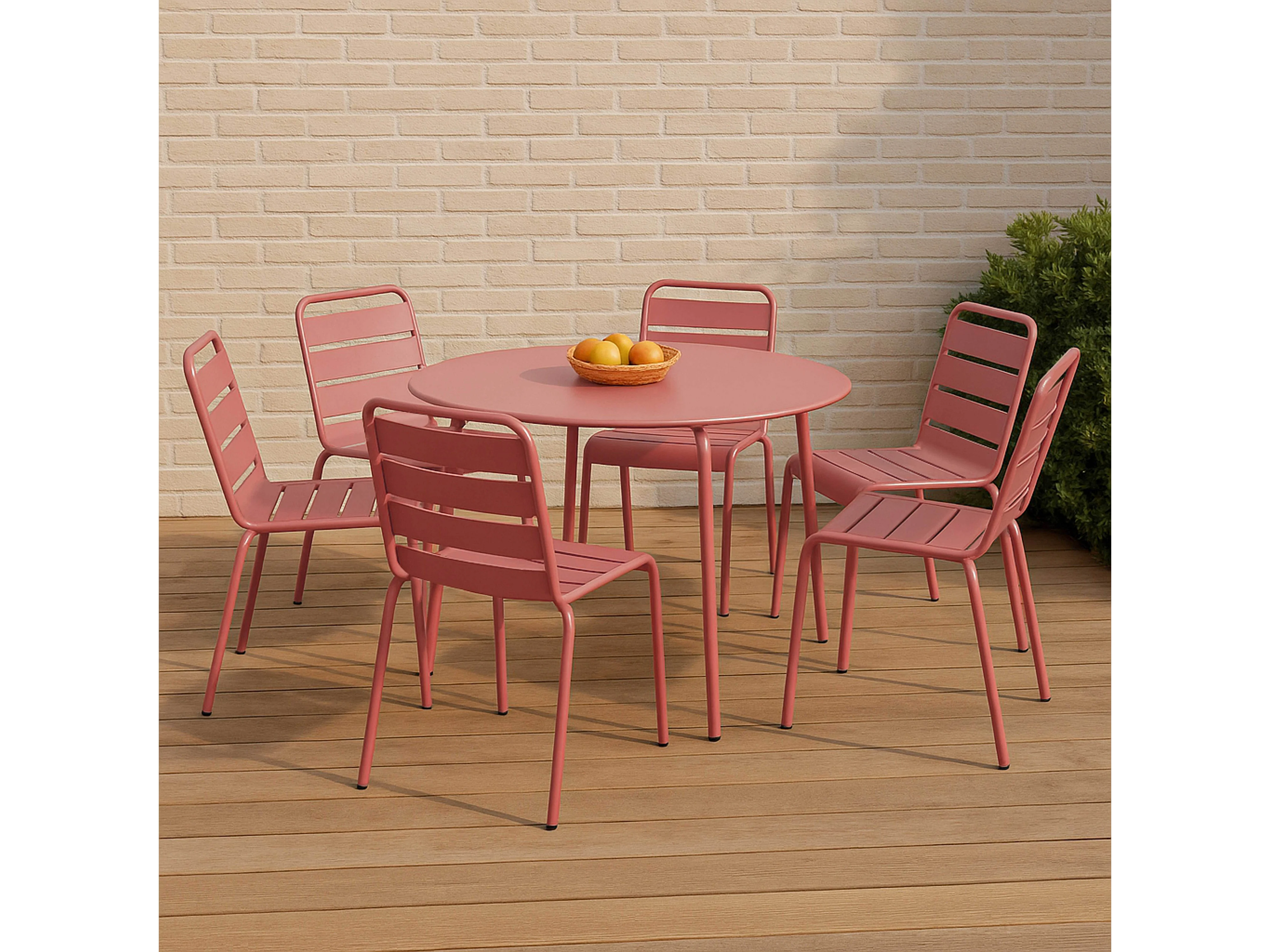 Ensemble table de jardin ronde et 6 chaises en métal argile - Palavas