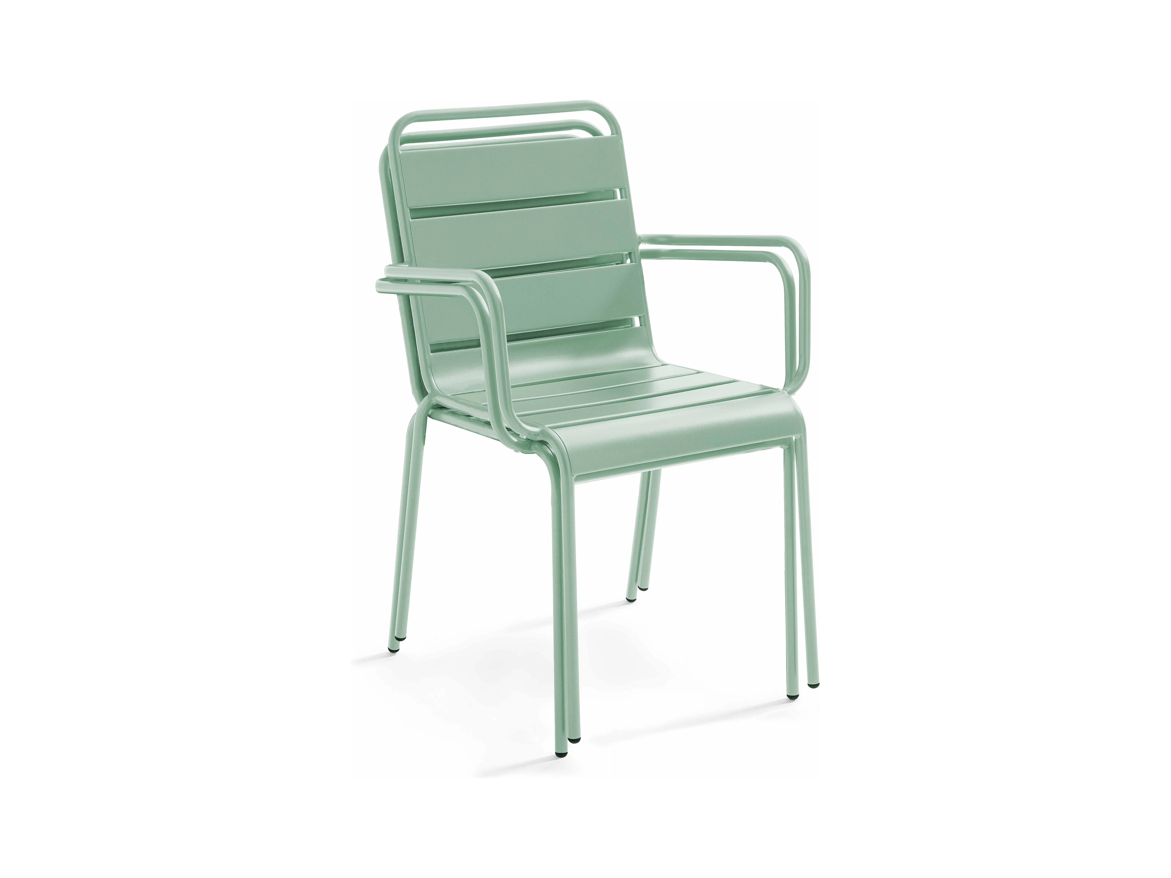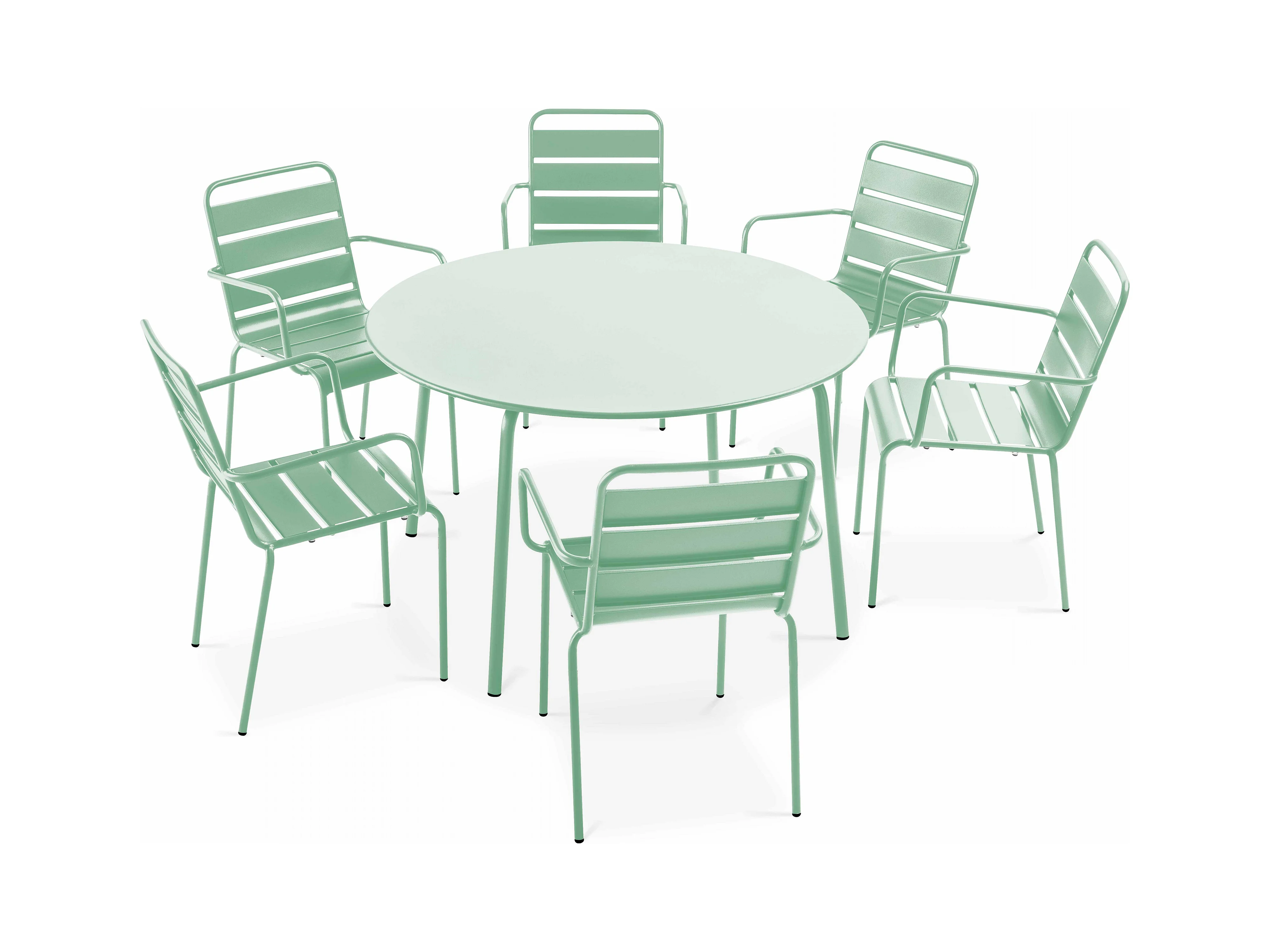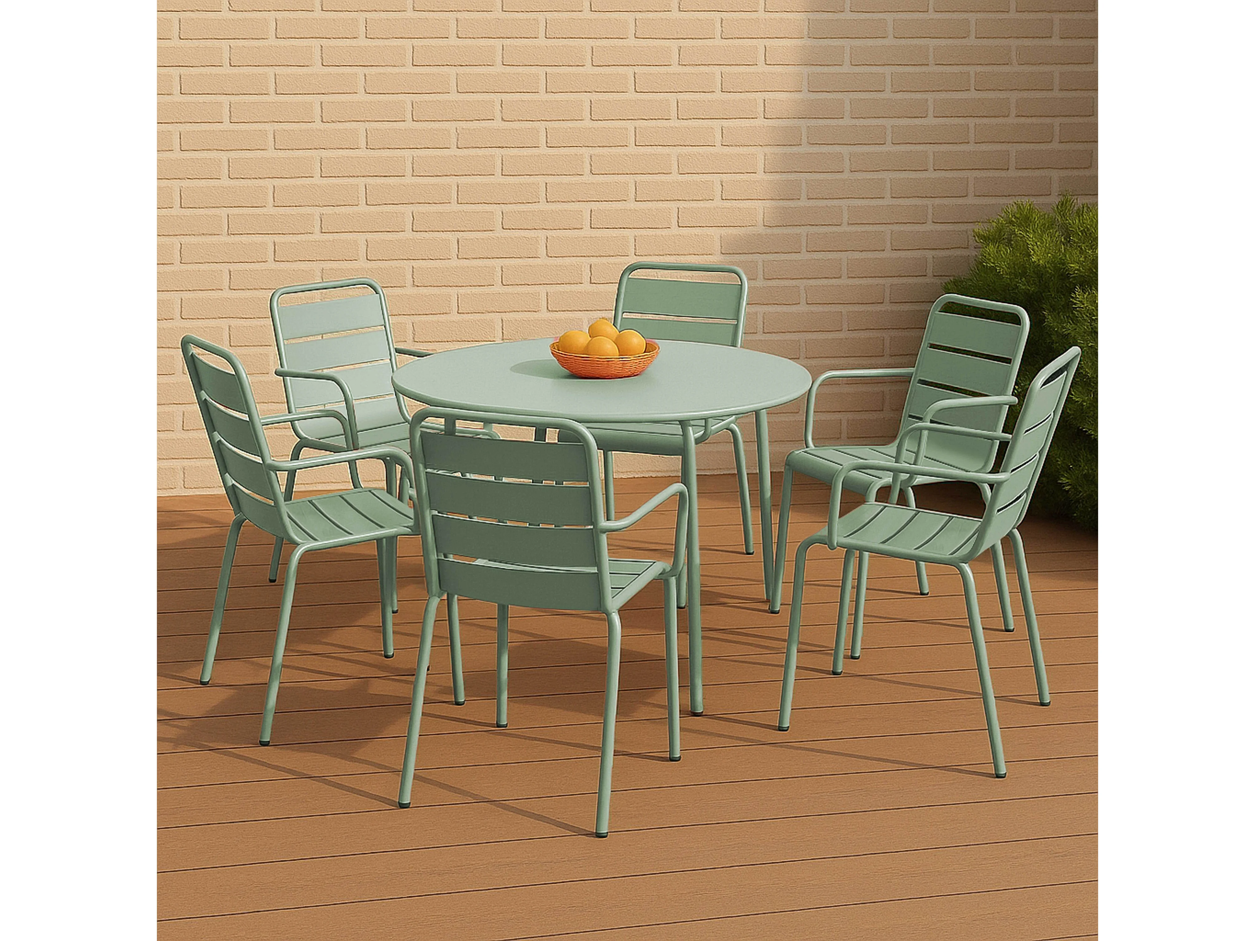 Ensemble table de jardin ronde et 6 fauteuils acier vert sauge - Palavas